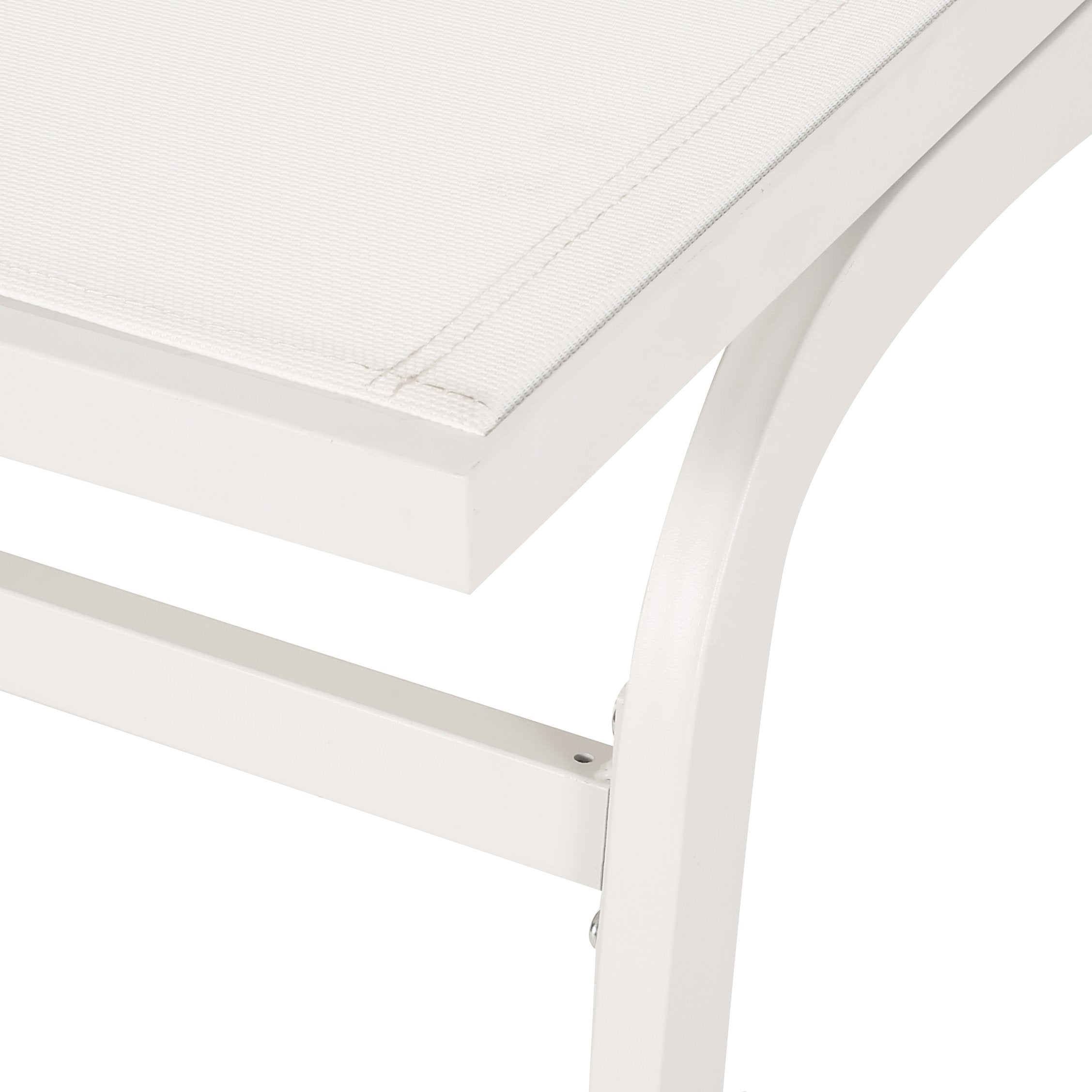 Relax in modern comfort with the FINN chaise lounge set—designed for outdoor living with breathable mesh, lightweight aluminum frames, and a clean white finish. Ideal for poolside, patio, or sunroom use, this pair combines durable materials with handcrafted detailing for long-lasting style and easy upkeep.