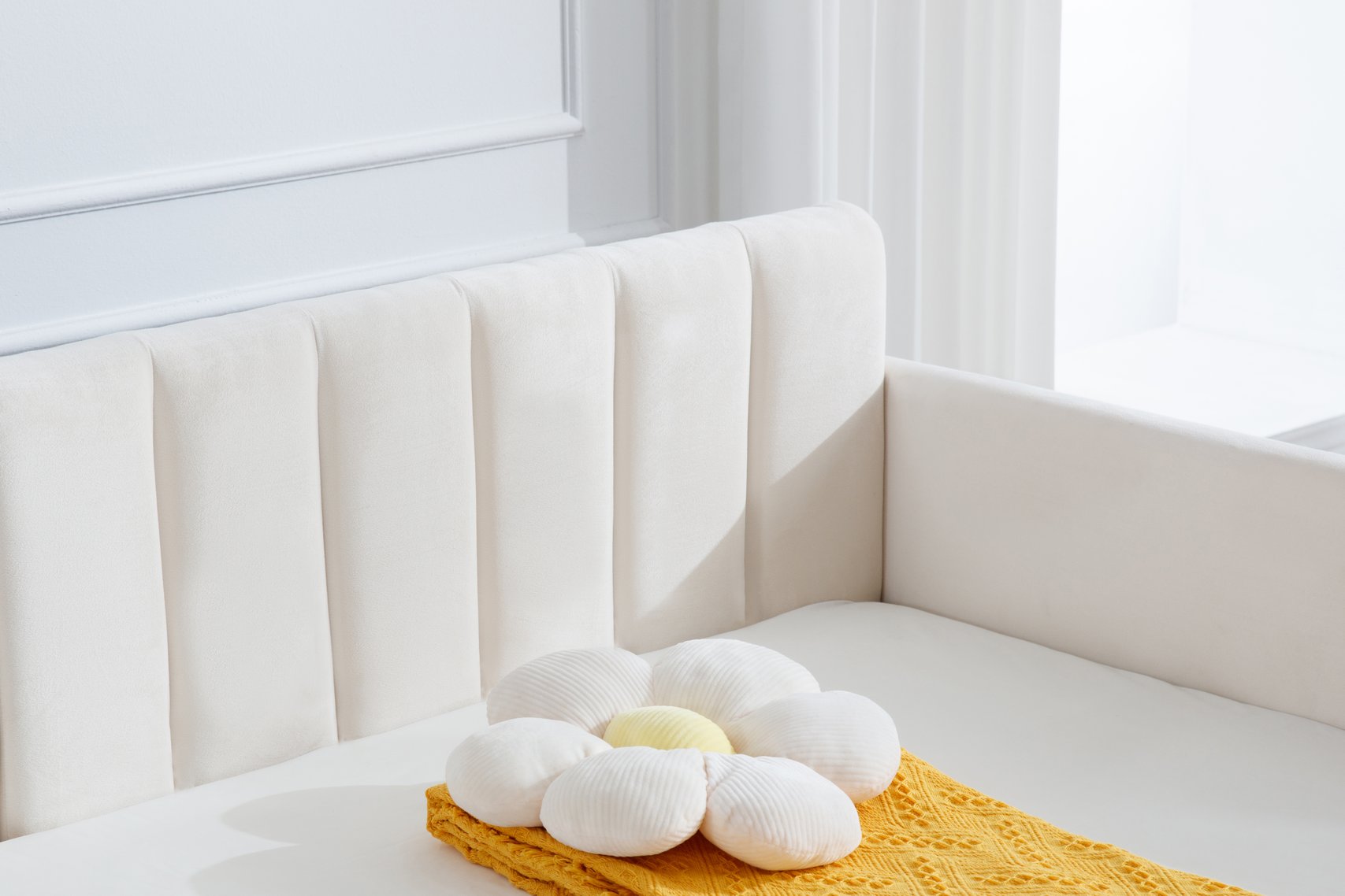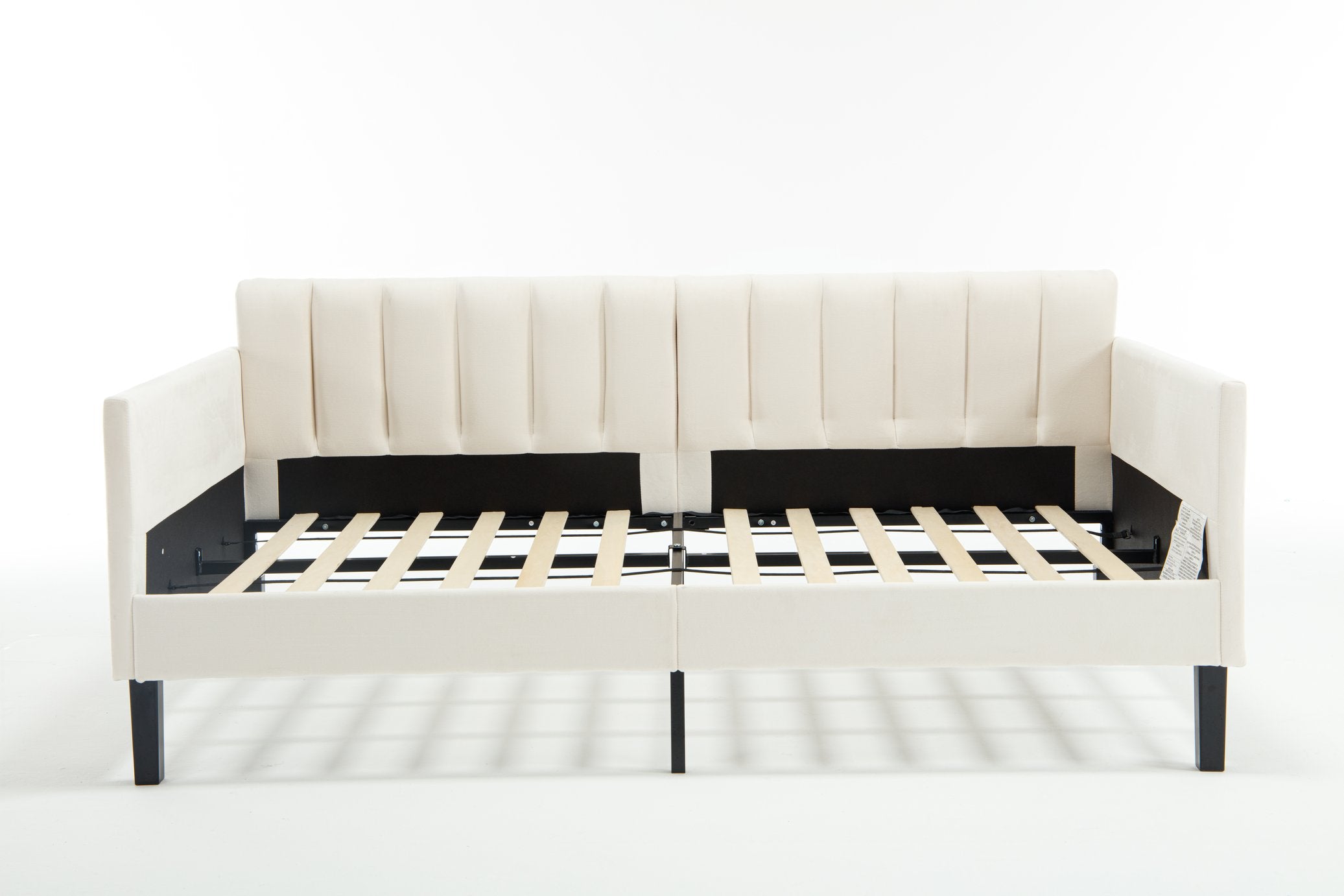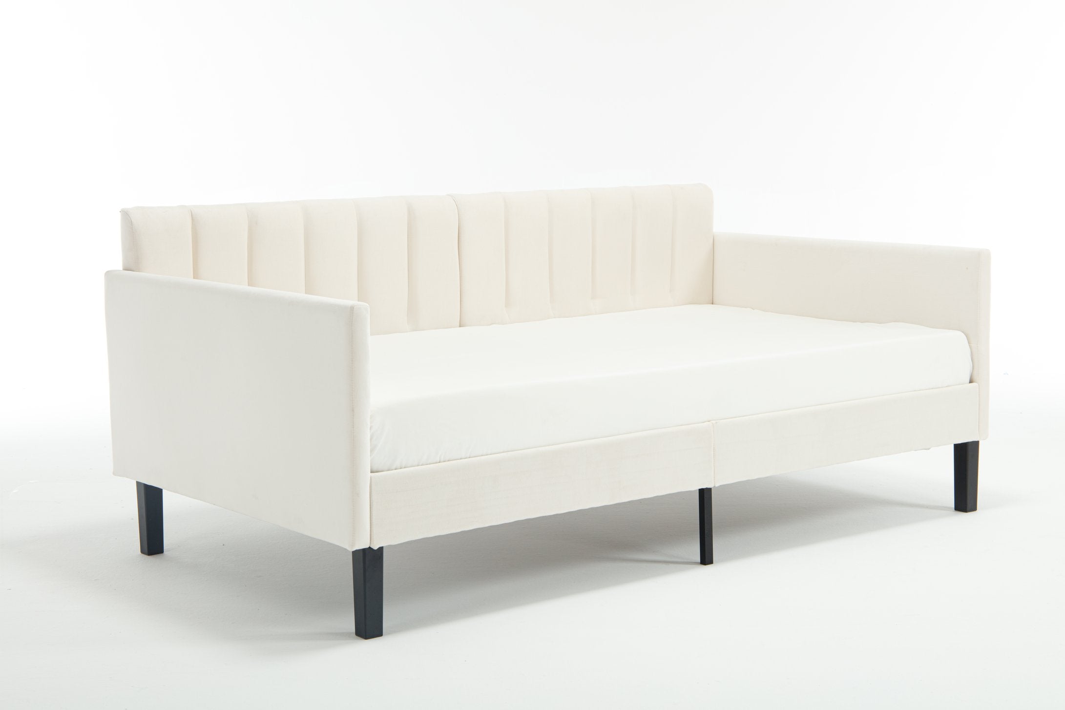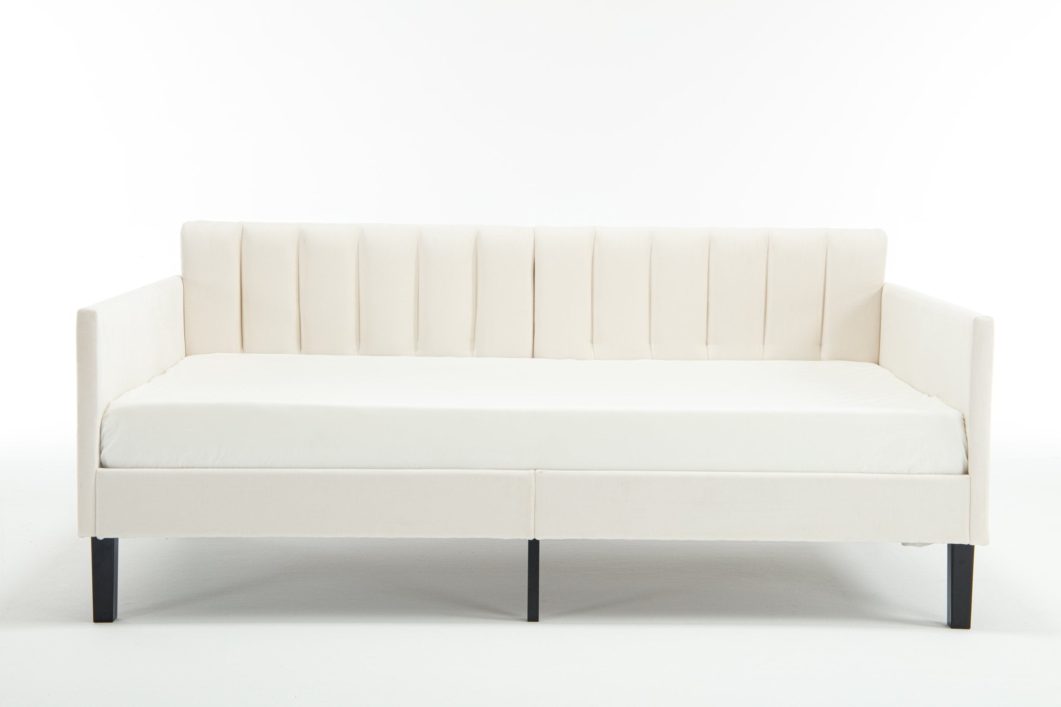 Bring refined comfort to your living space with the Elena Twin Size Velvet Upholstered Daybed. Wrapped in plush beige (ivory) velvet and featuring a ribbed tufted backrest, this daybed blends modern elegance with everyday practicality—ideal as a stylish seating option by day and a comfortable sleeper for guests by night. Thoughtfully engineered components and a durable frame deliver lasting performance while the chic silhouette complements contemporary and transitional interiors.
