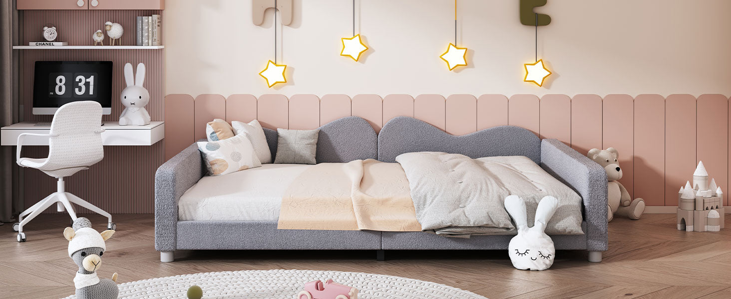 - [Elegant design] This daybed has one backrest and two armrests, the backrest is designed with cloud shape, elegant and cute, not only suitable for any home decoration, but also loved by children.