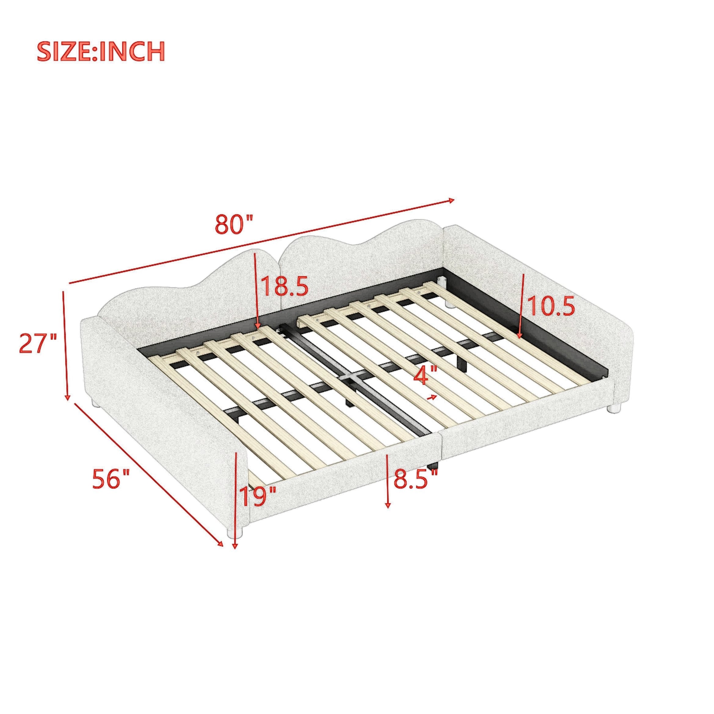 Bright and cozy, this sherpa-upholstered full-size daybed blends playful design with practical comfort. The cloud-shaped backrest and plush sherpa fabric create a warm, inviting spot for lounging or sleeping, while the sturdy frame supports everyday use without the need for a box spring. Ideal for guest rooms, kids’ rooms, or studio apartments, it pairs whimsical style with reliable function.
