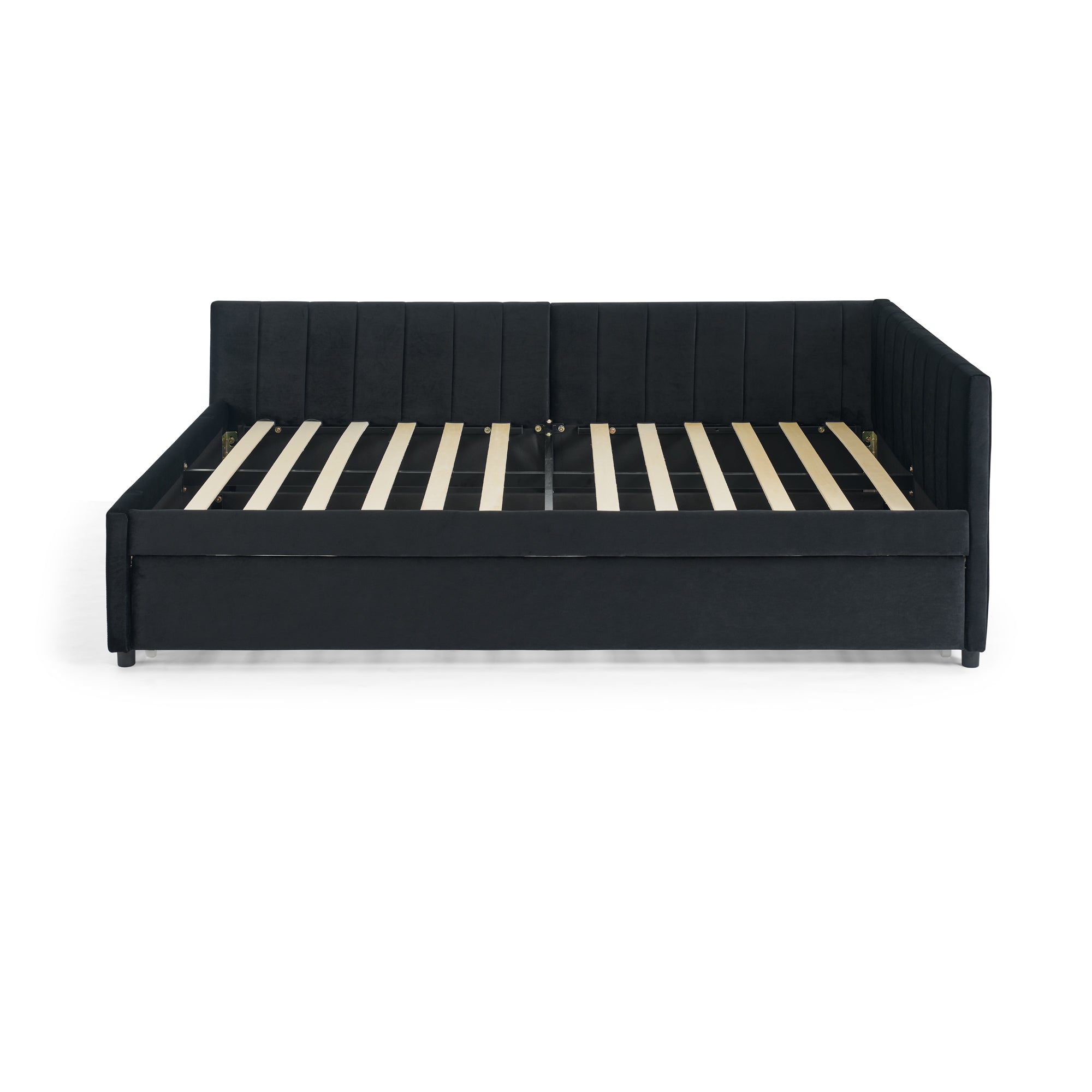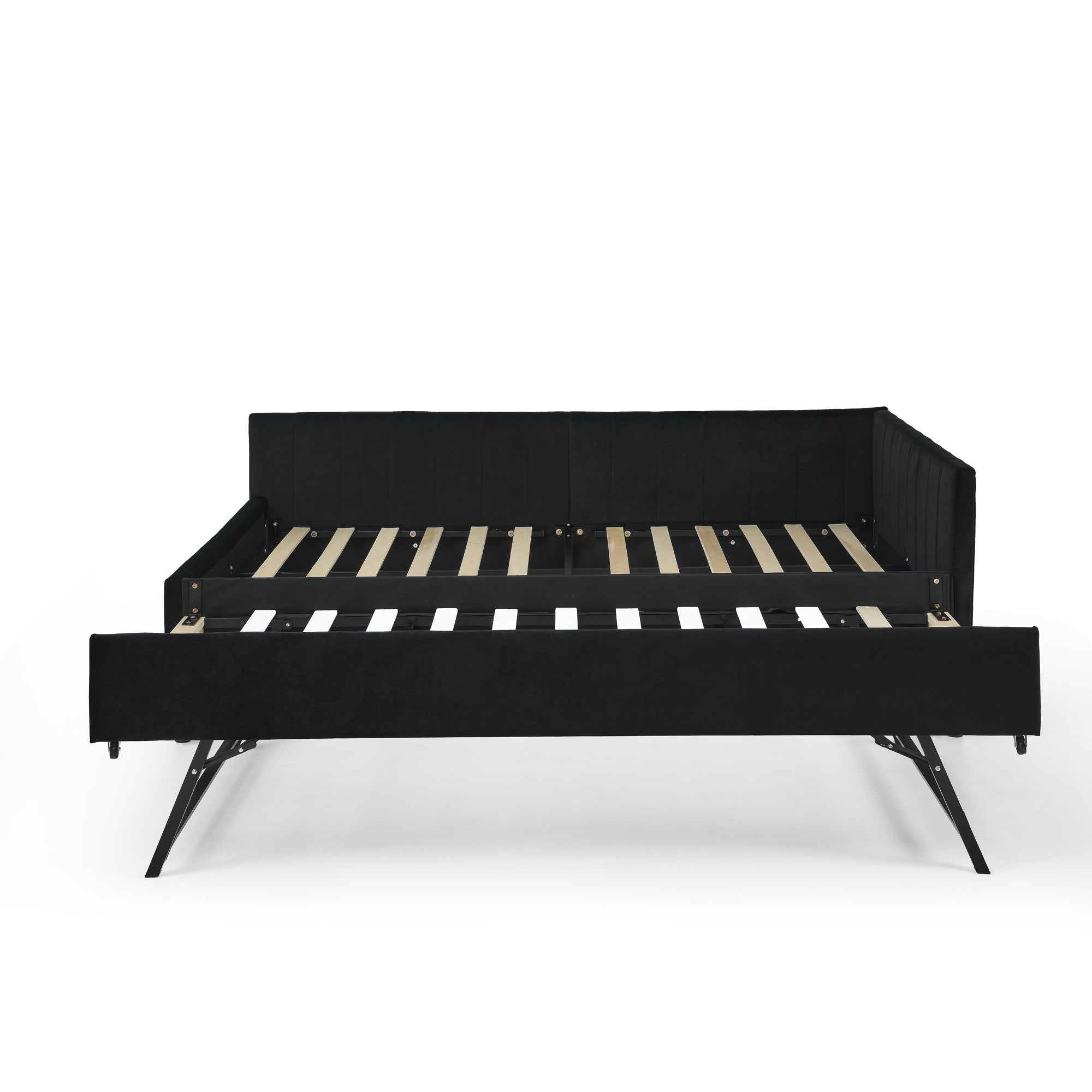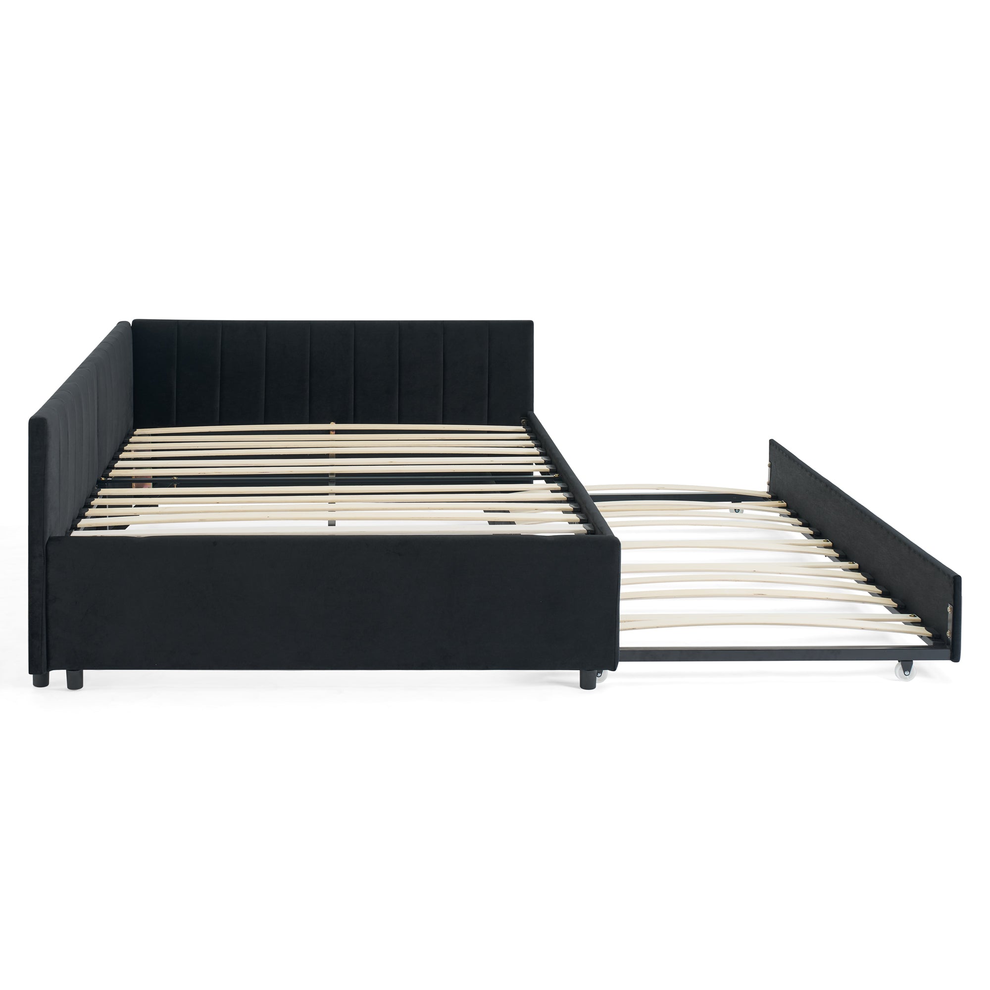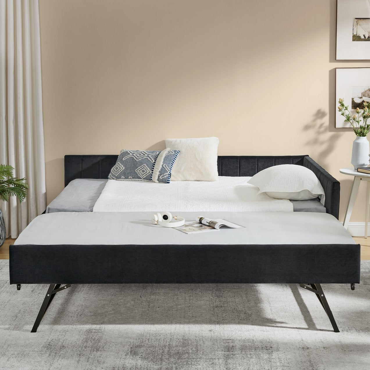Transform any room into a stylish, space-saving retreat with this tufted velvet daybed and trundle. Designed for everyday lounging or overnight guests, it combines classic upholstery details, a supportive backrest and armrests, and a convenient pull-out trundle to maximize sleeping capacity without sacrificing comfort or style.