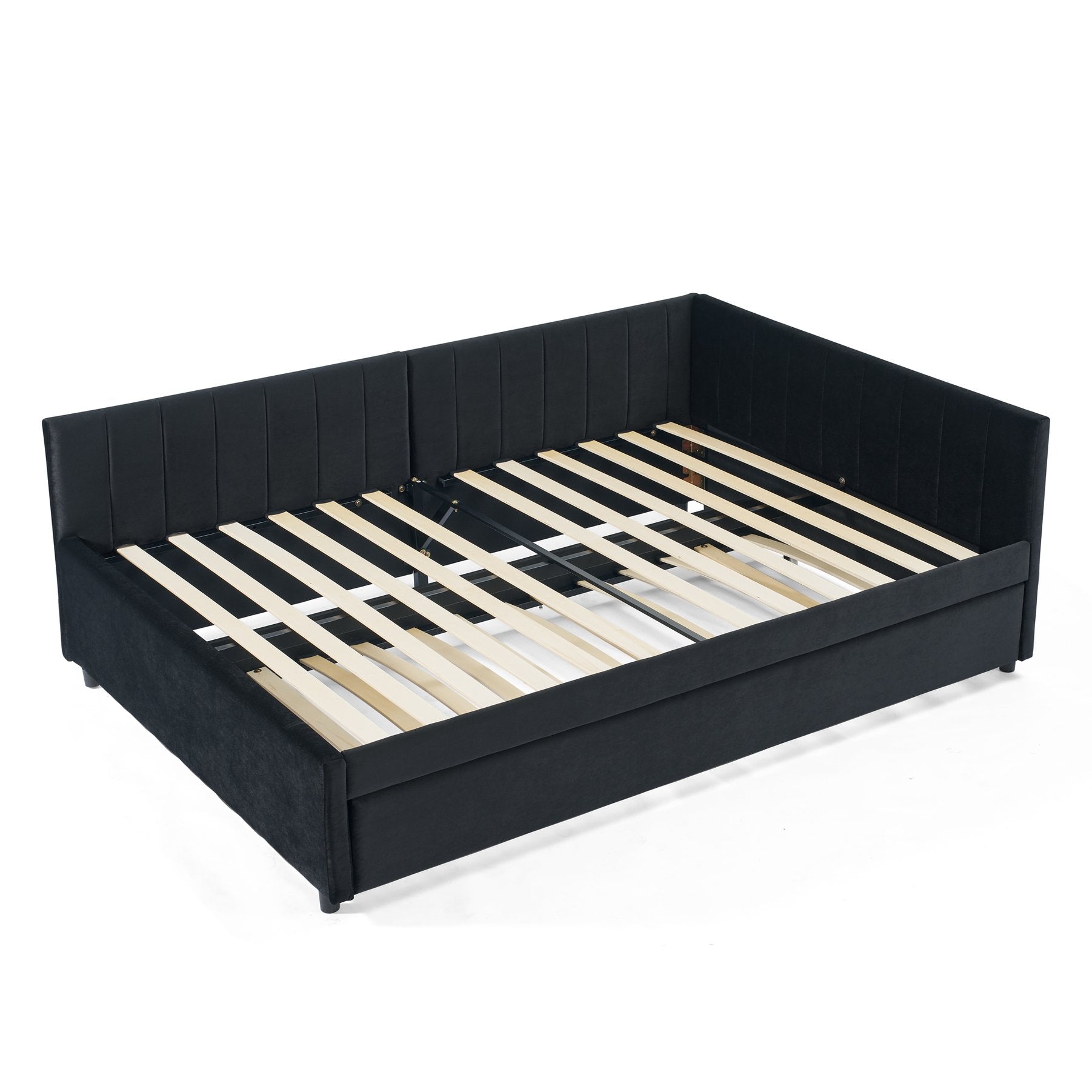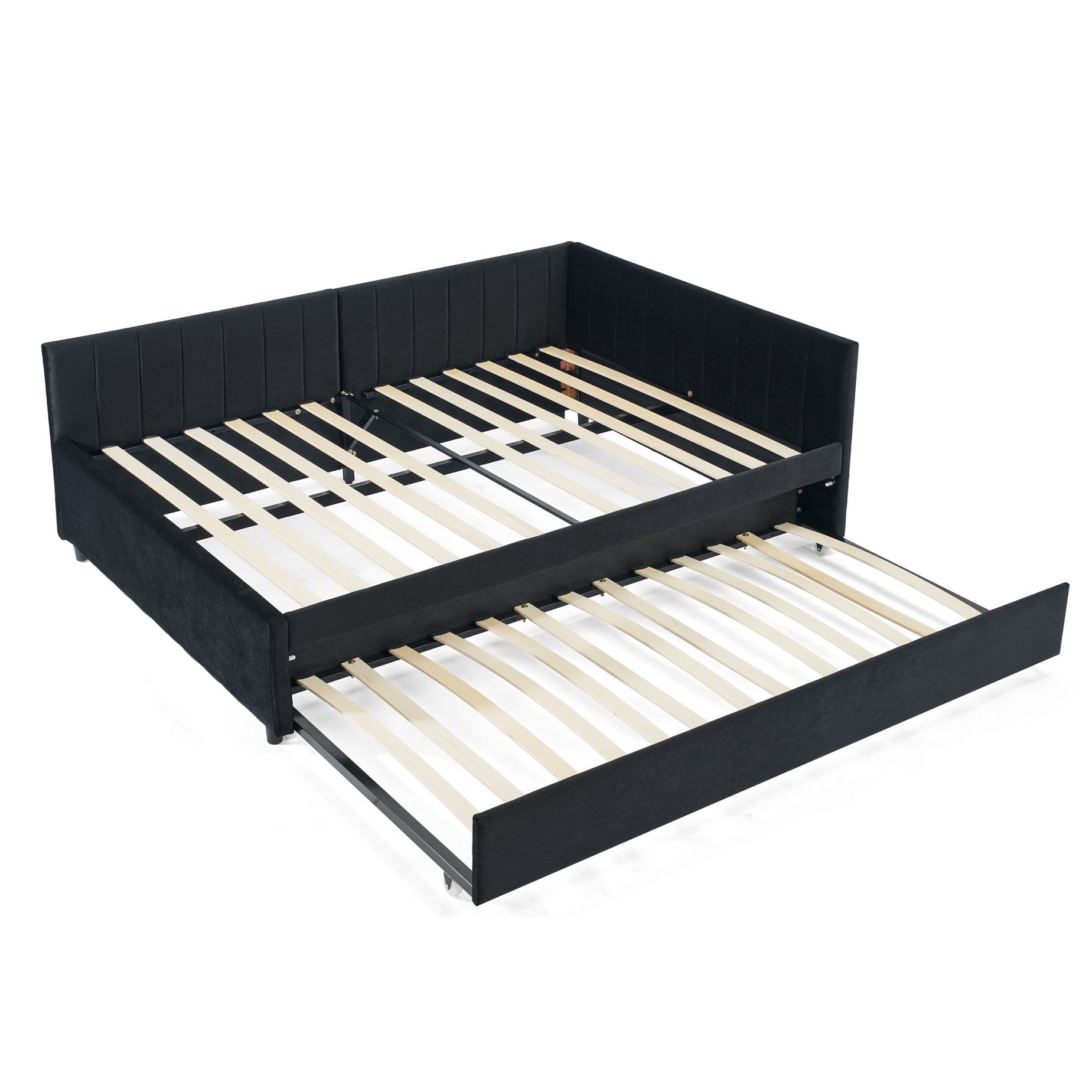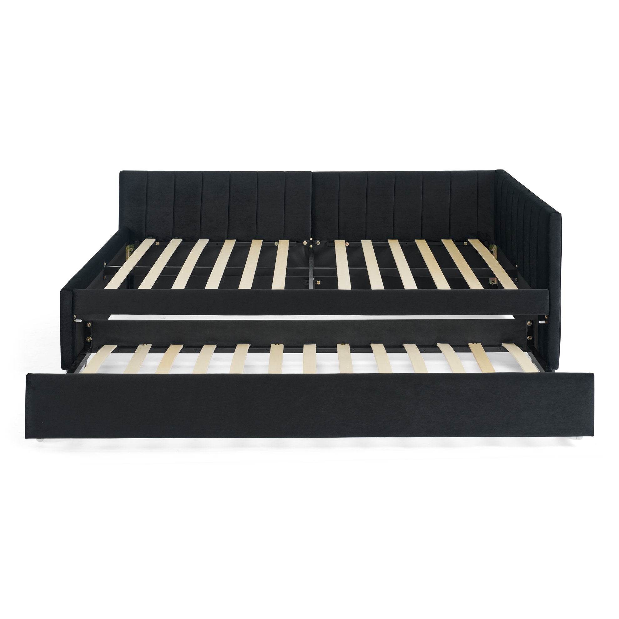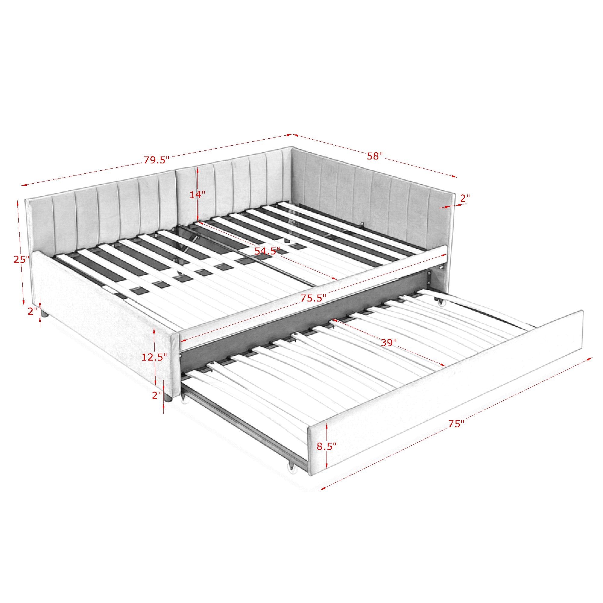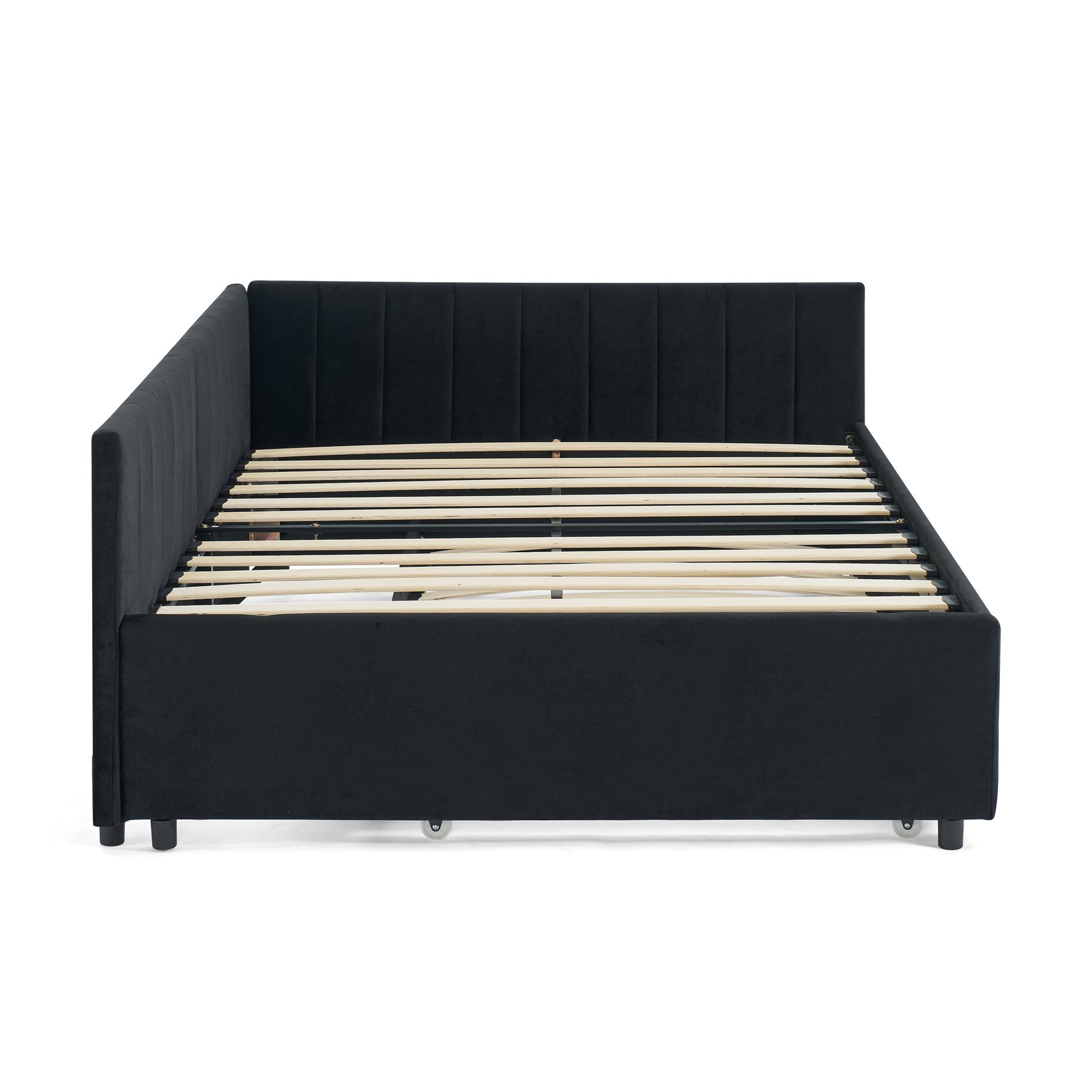 Transform any room into a stylish, space-saving retreat with this tufted velvet daybed and trundle. Designed for everyday lounging or overnight guests, it combines classic upholstery details, a supportive backrest and armrests, and a convenient pull-out trundle to maximize sleeping capacity without sacrificing comfort or style.