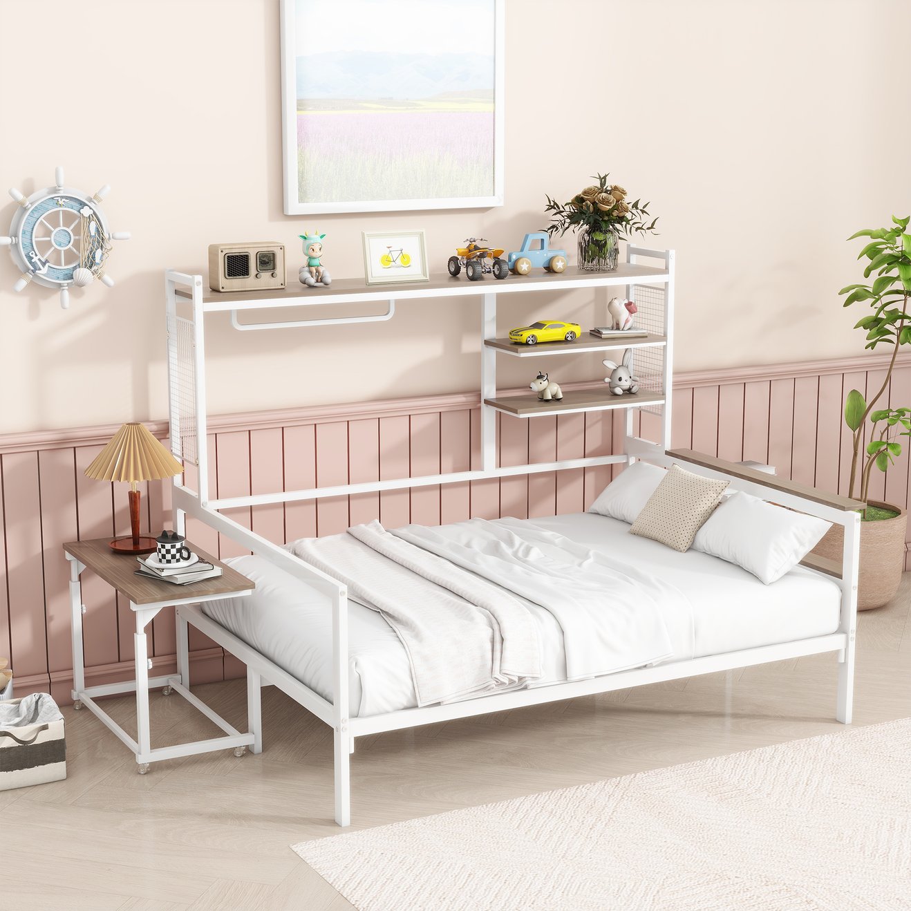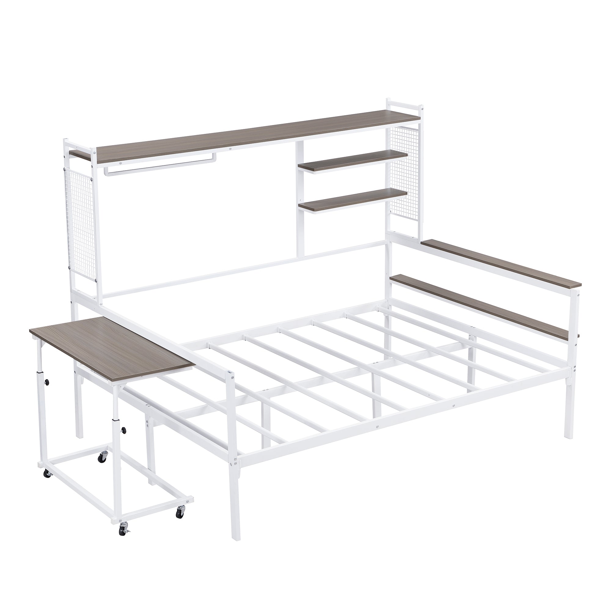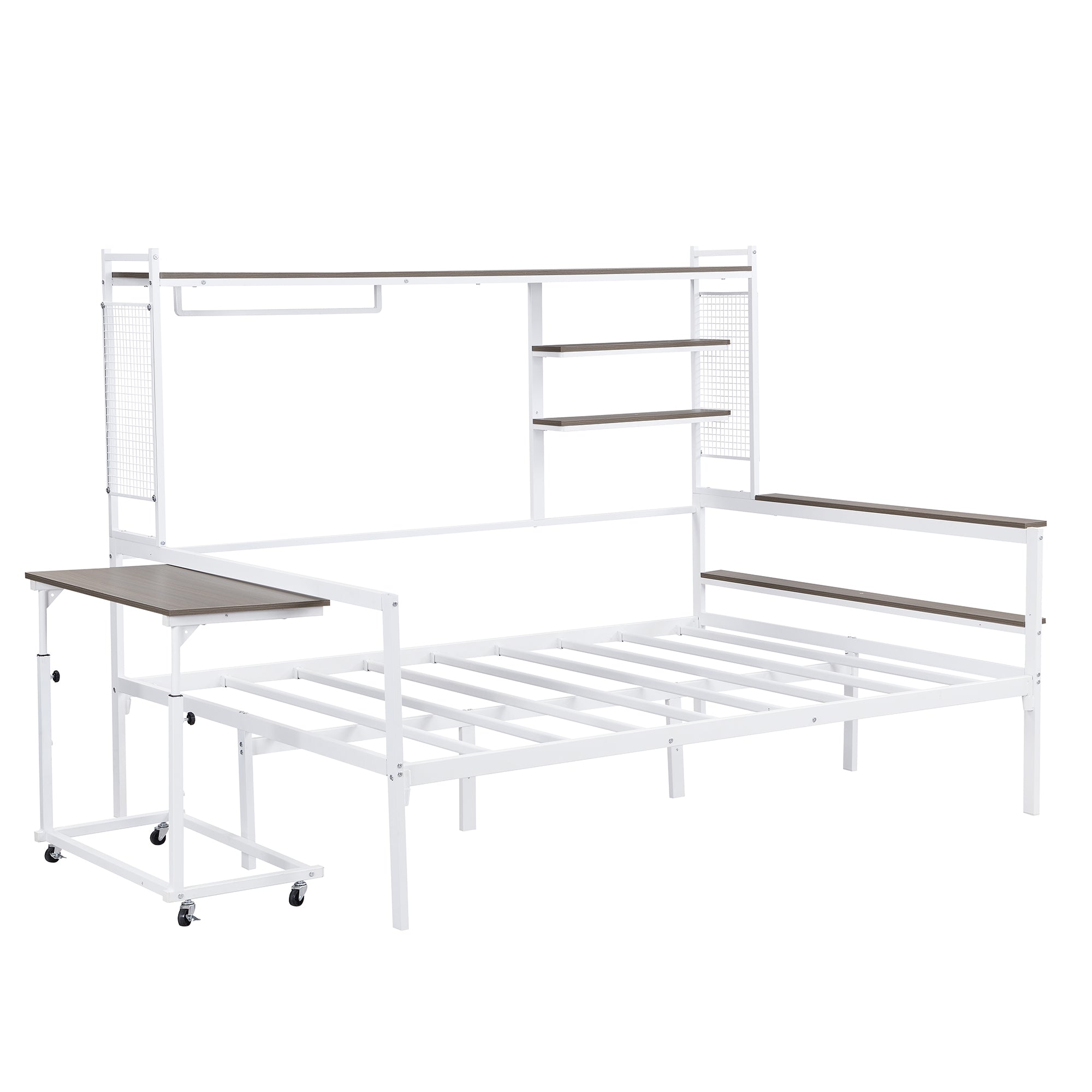 - [Removable Movable Desk] Equipped with a flexible, movable desk, this daybed allows you to work, study, or enjoy meals with ease, and can be adjusted or removed to suit your needs.