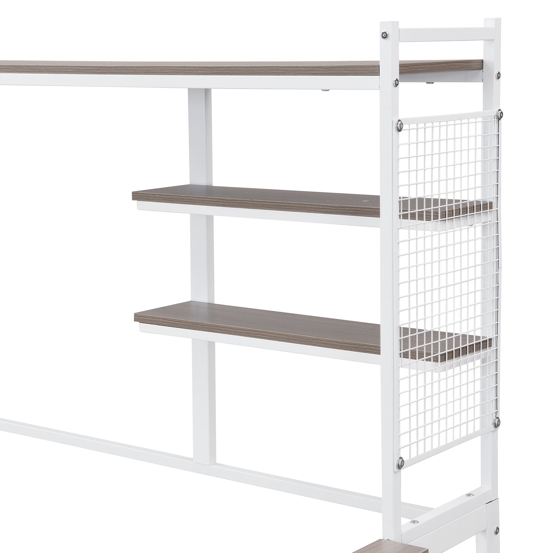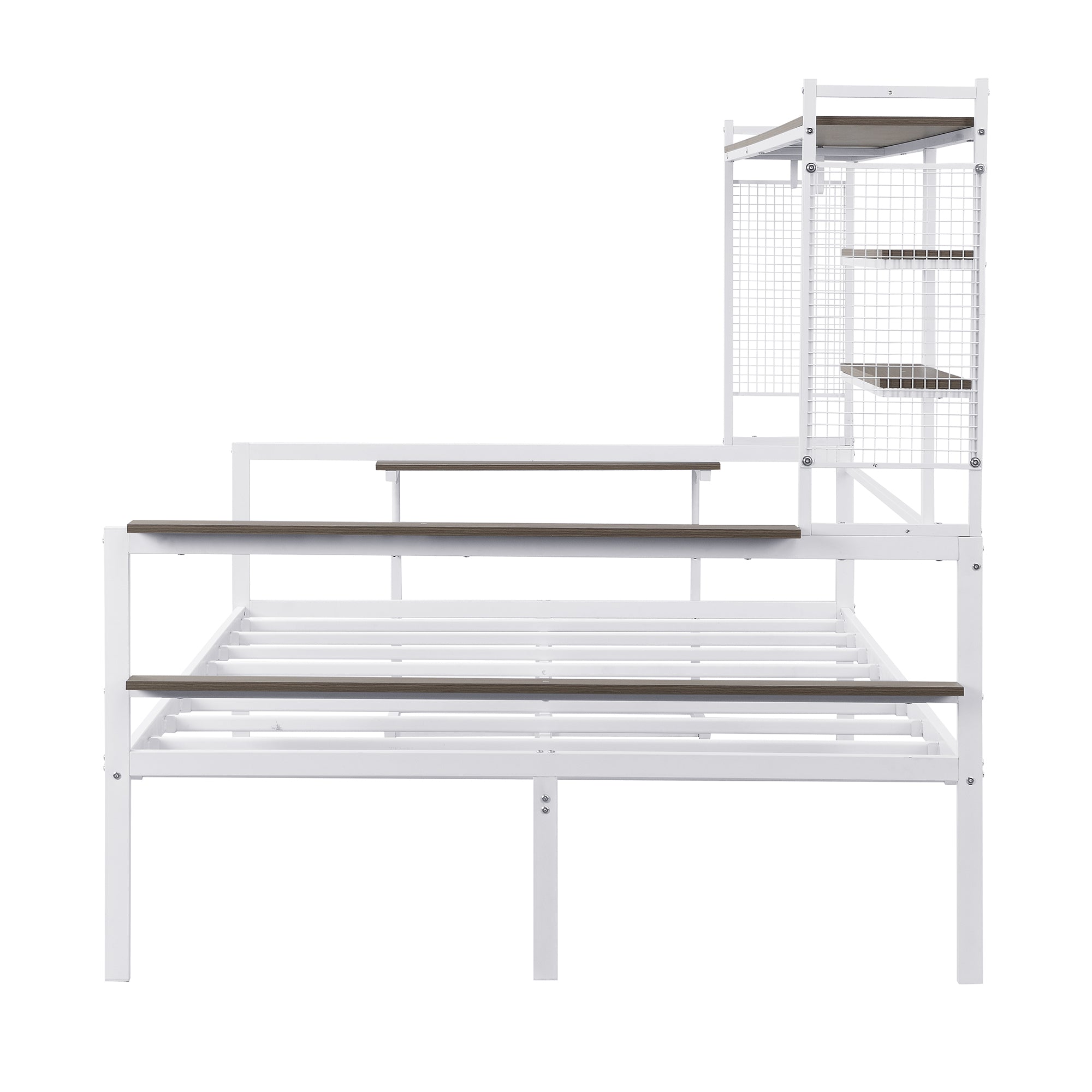 - [Built-in Shelves and Grids] This metal bed making full use of space, coming with multiple shelves. The most special thing is that it contains two metal grids, which can hang some decorations, photos, etc.