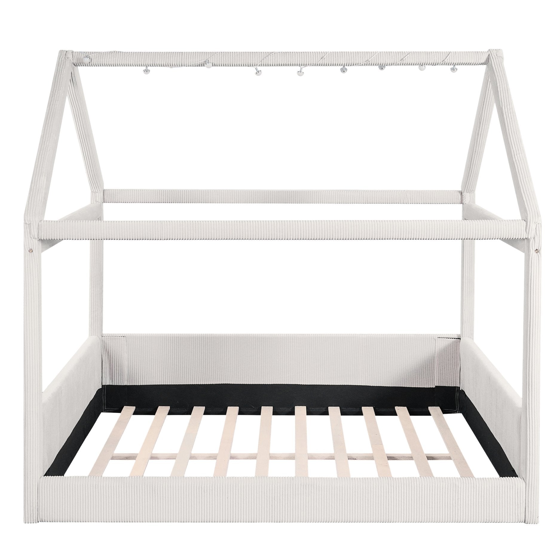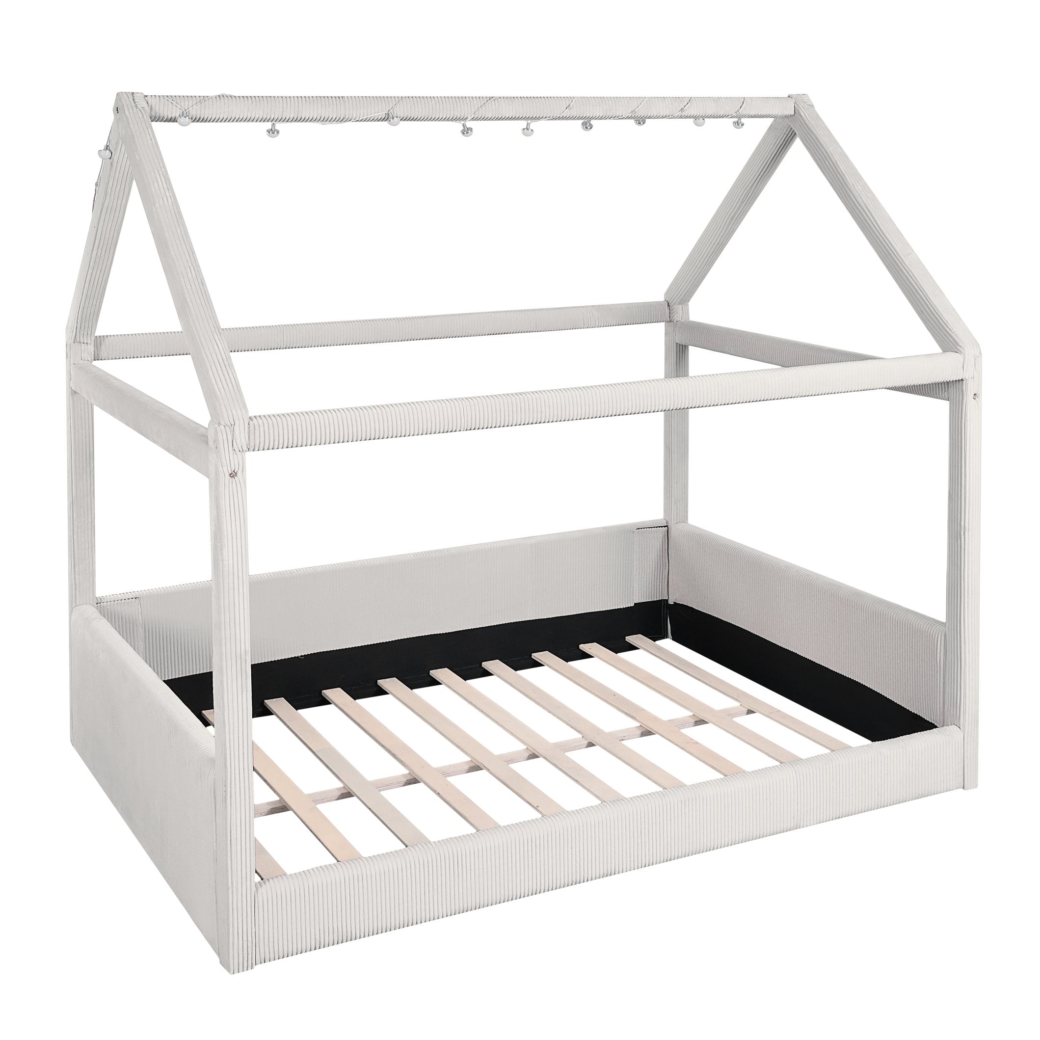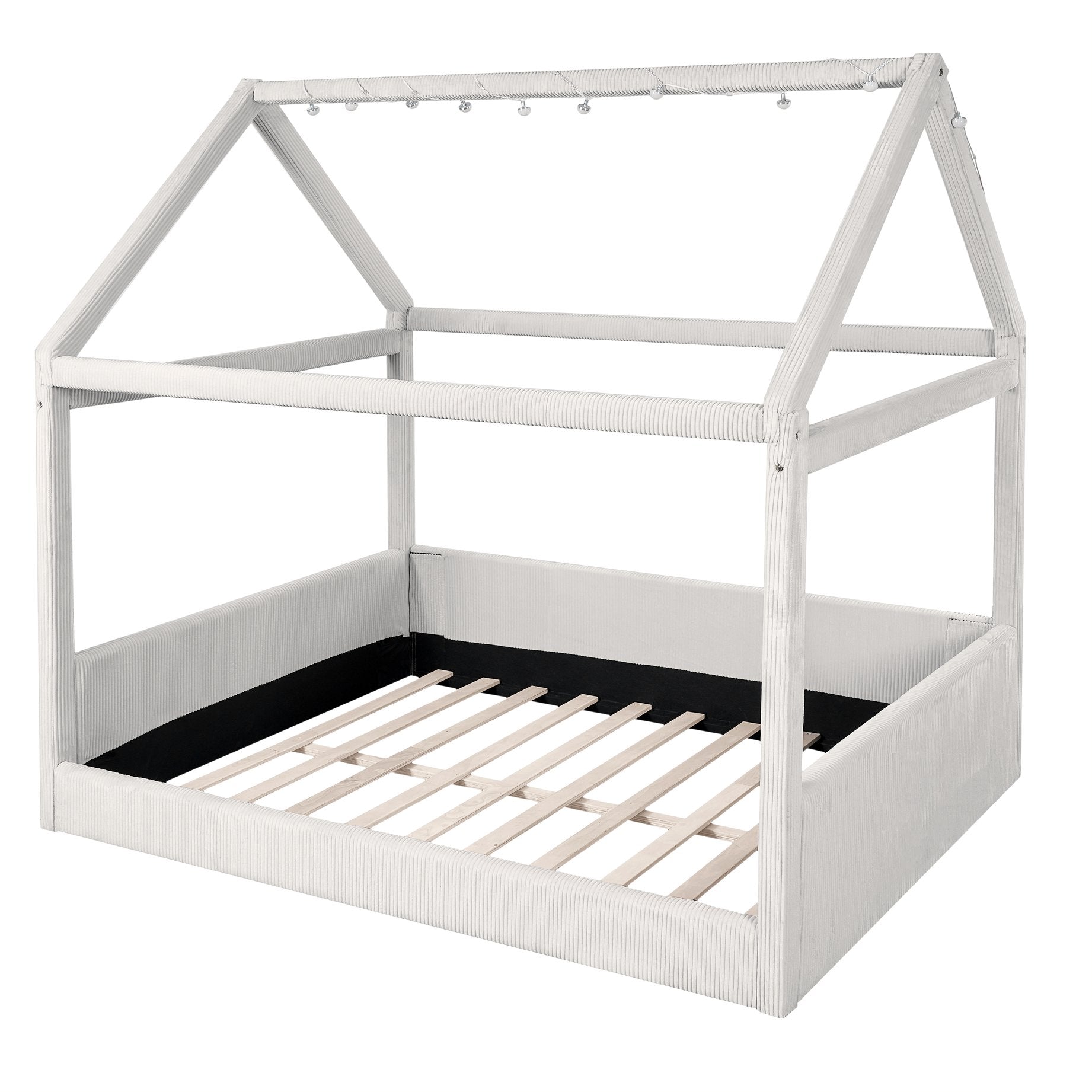 Turn any bedroom into a cozy, imaginative retreat with this full-size upholstered house daybed. The charming house-shaped frame and corduroy-upholstered panels create a playful yet refined centerpiece, while built-in LED light strips provide customizable ambient lighting for reading or relaxing. Crafted from solid pinewood and engineered MDF, the bed blends sturdy construction with a soft, luxe finish—ideal for kids’ rooms, guest spaces, or stylish studio living.