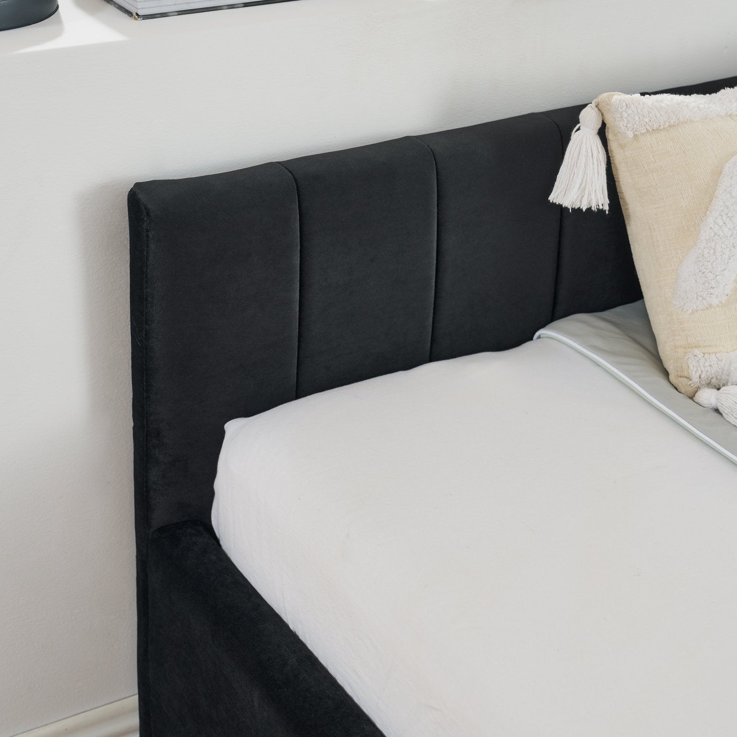 - Upholstery & Finish: Luxurious black velvet fabric that’s soft to the touch and adds a modern, elegant look.