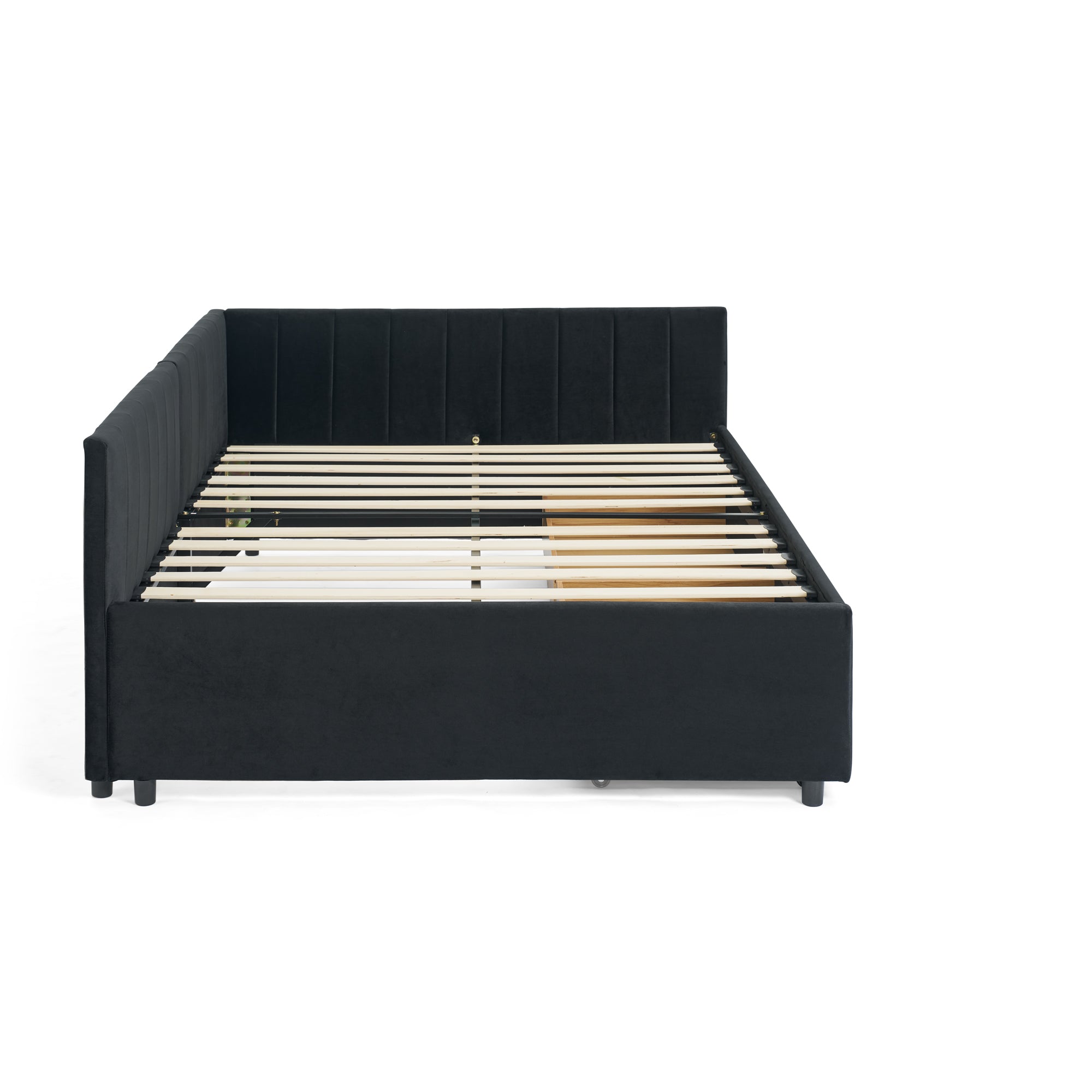 Transform any bedroom or guest space with this stylish and versatile upholstered daybed—designed for comfort, storage, and everyday use. Plush velvet upholstery, a supportive tufted backrest with armrests, and two built-in drawers make it an ideal solution for lounging by day and sleeping by night. Its sturdy plywood/MDF frame and foam cushioning deliver lasting support while the compact footprint fits well in apartments and guest rooms.