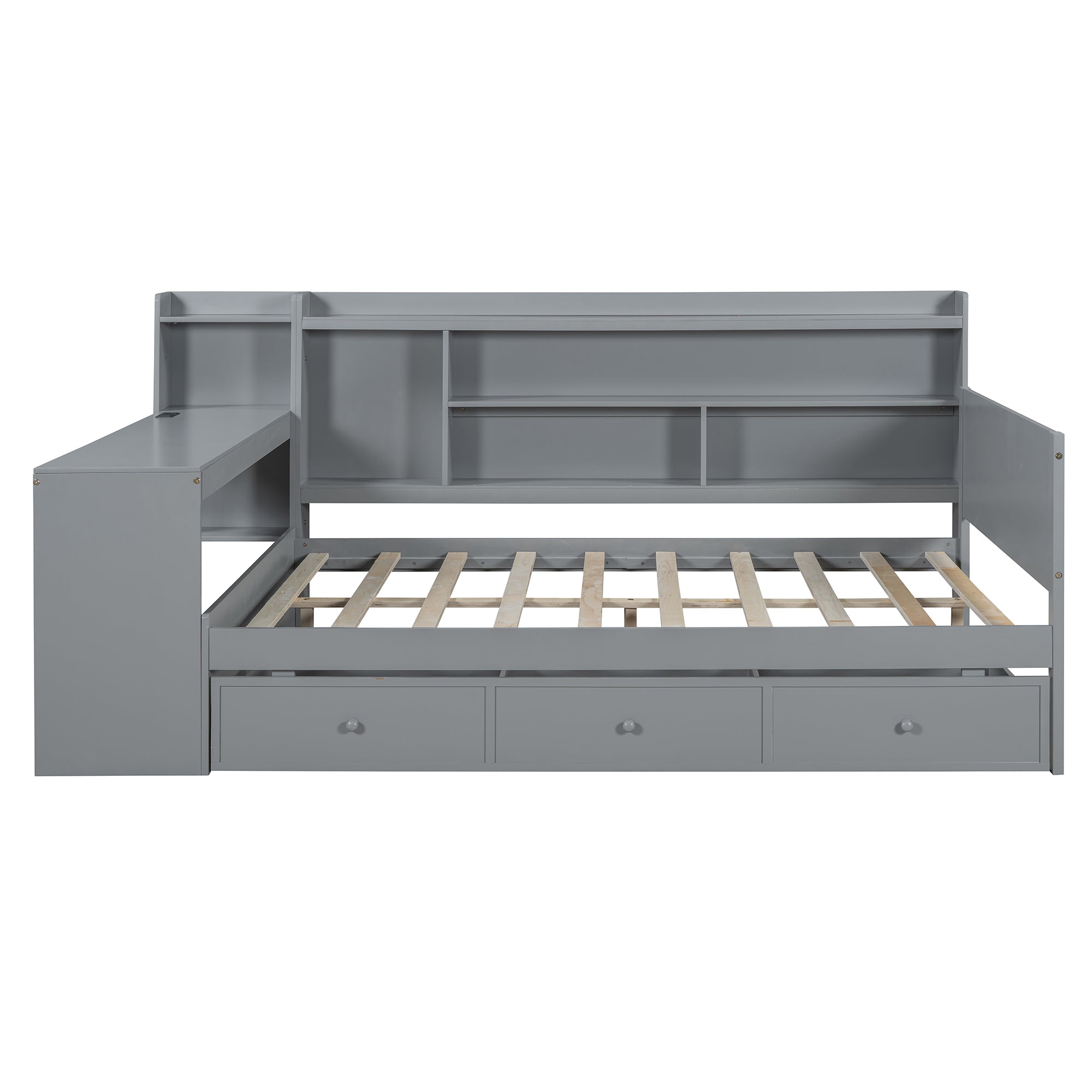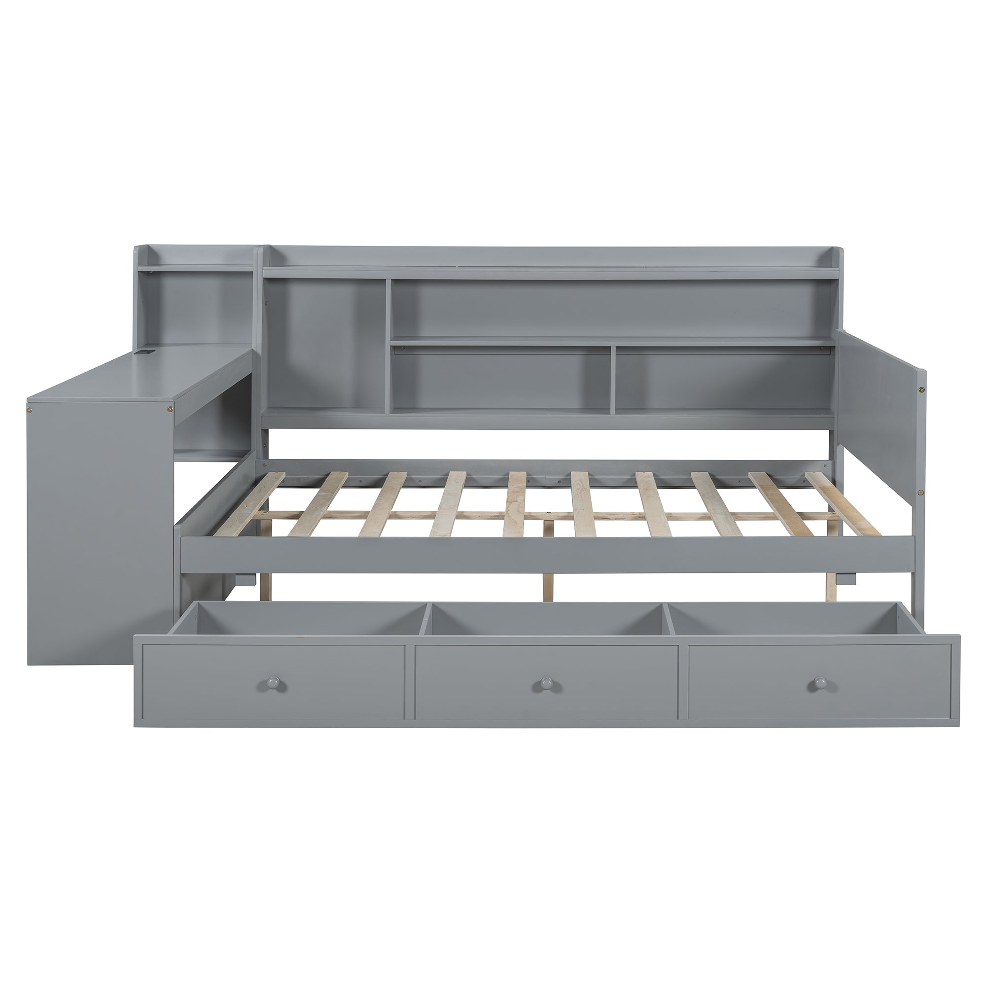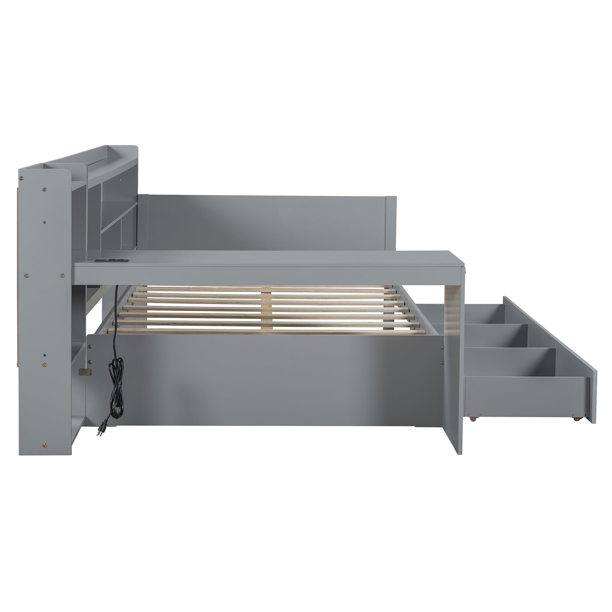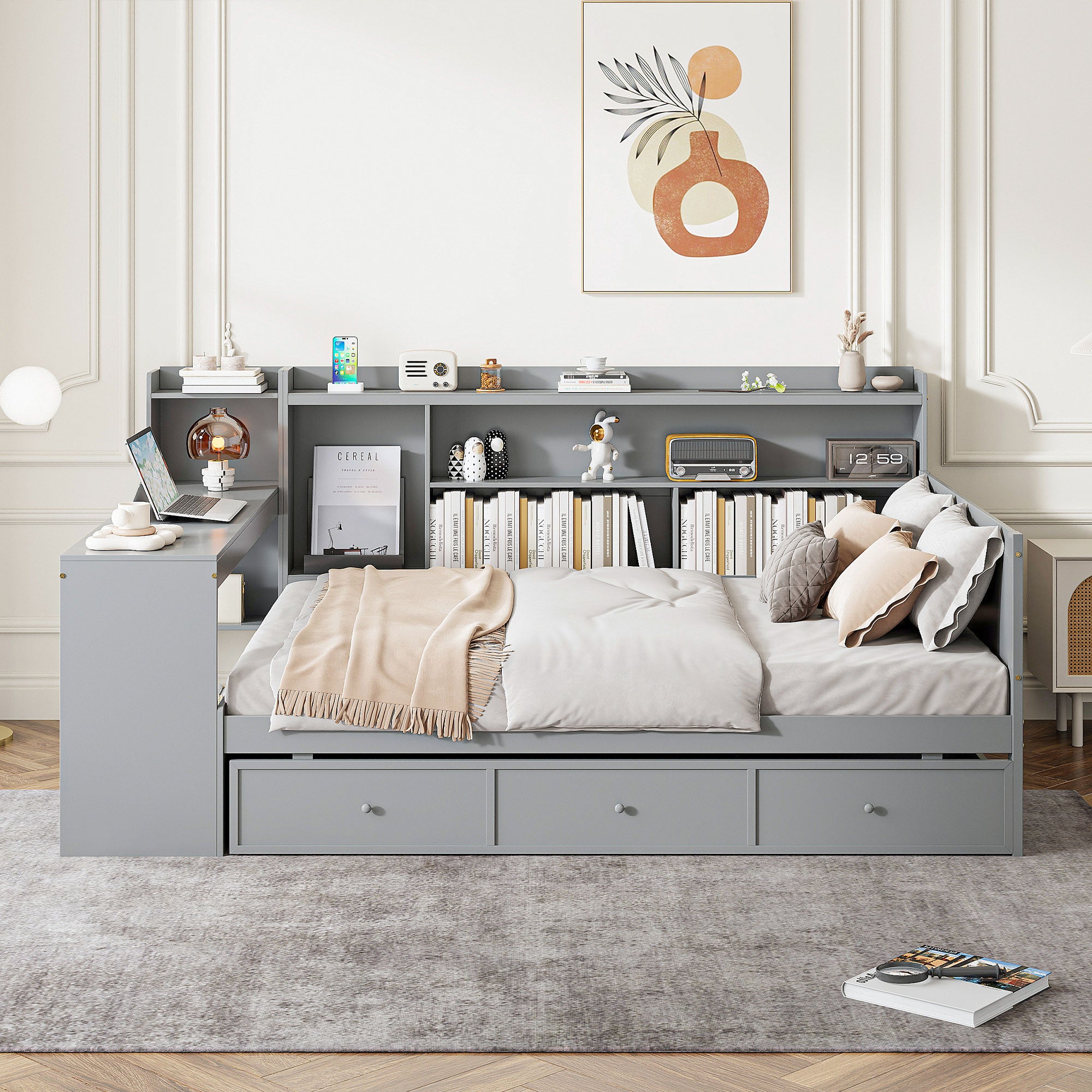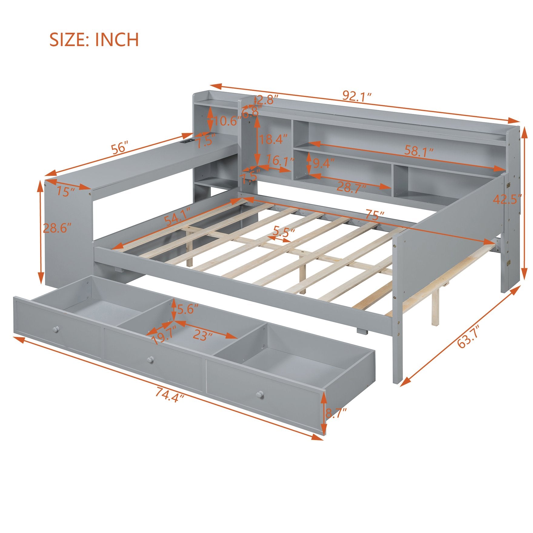 Bring smart, space-saving design to your bedroom with this sturdy full-size wooden daybed. Crafted from pine and engineered wood, it combines a comfortable sleeping surface, generous storage, and a built-in workstation with modern charging conveniences—an ideal solution for guest rooms, kids’ rooms, or compact apartments.