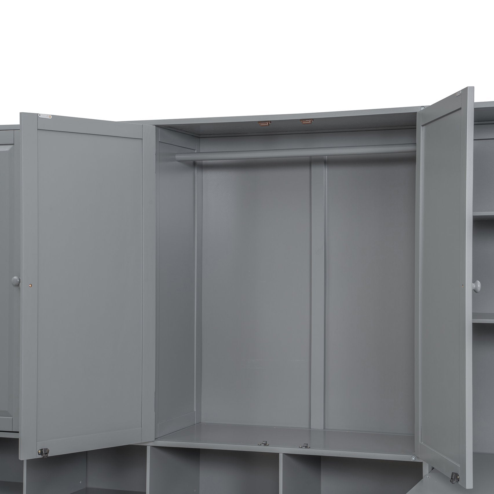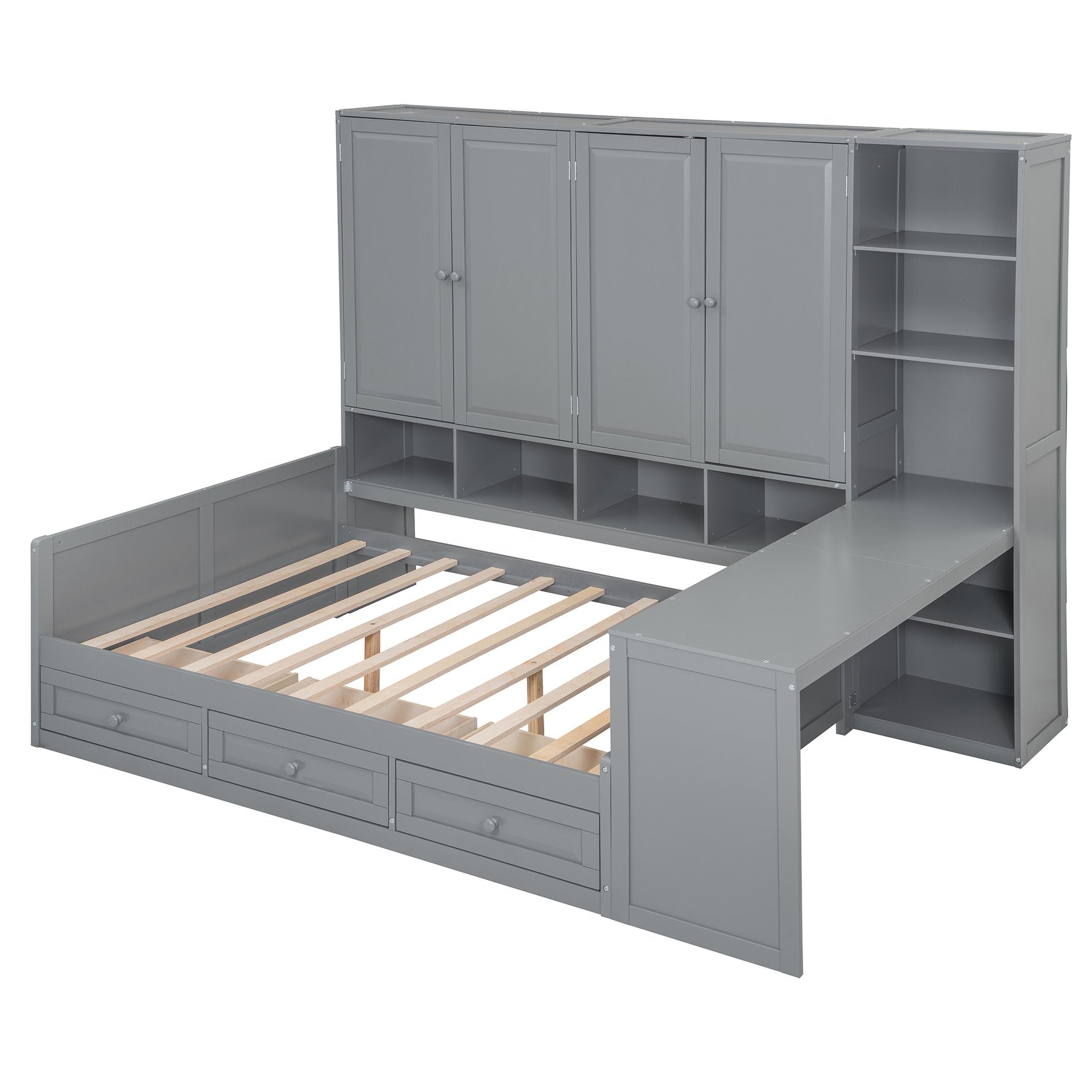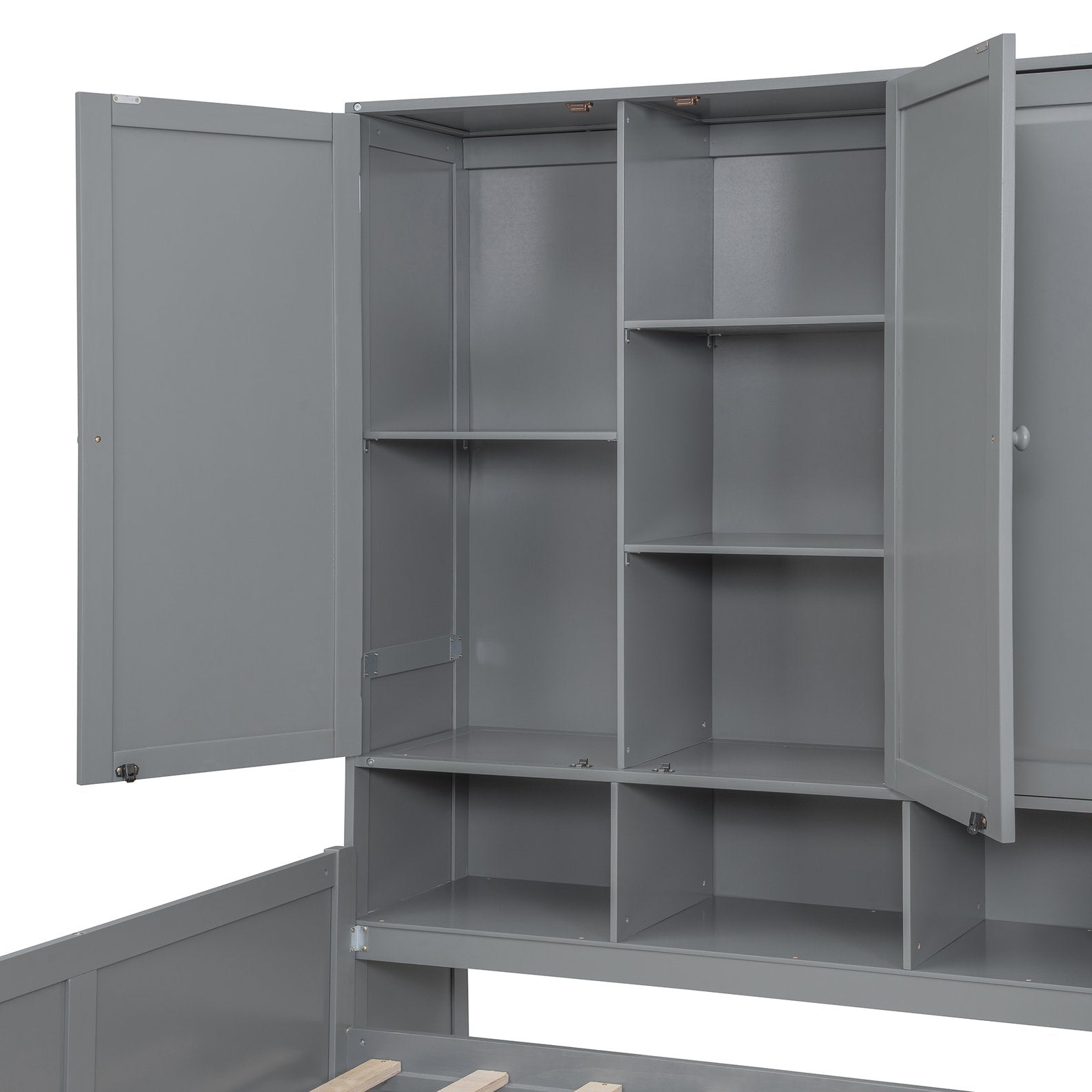 - Ample Storage Solutions: Stay organized with four open shelves and two large cabinets with doors, each featuring a variety of compartments inside. Perfect for books, files, decoration, and even longer or oddly shaped items, this bed keeps your space neat and stylishly arranged.Three generously sized drawers are tucked under the bed, offering additional hidden storage for linens, seasonal clothing, or everyday essentials.