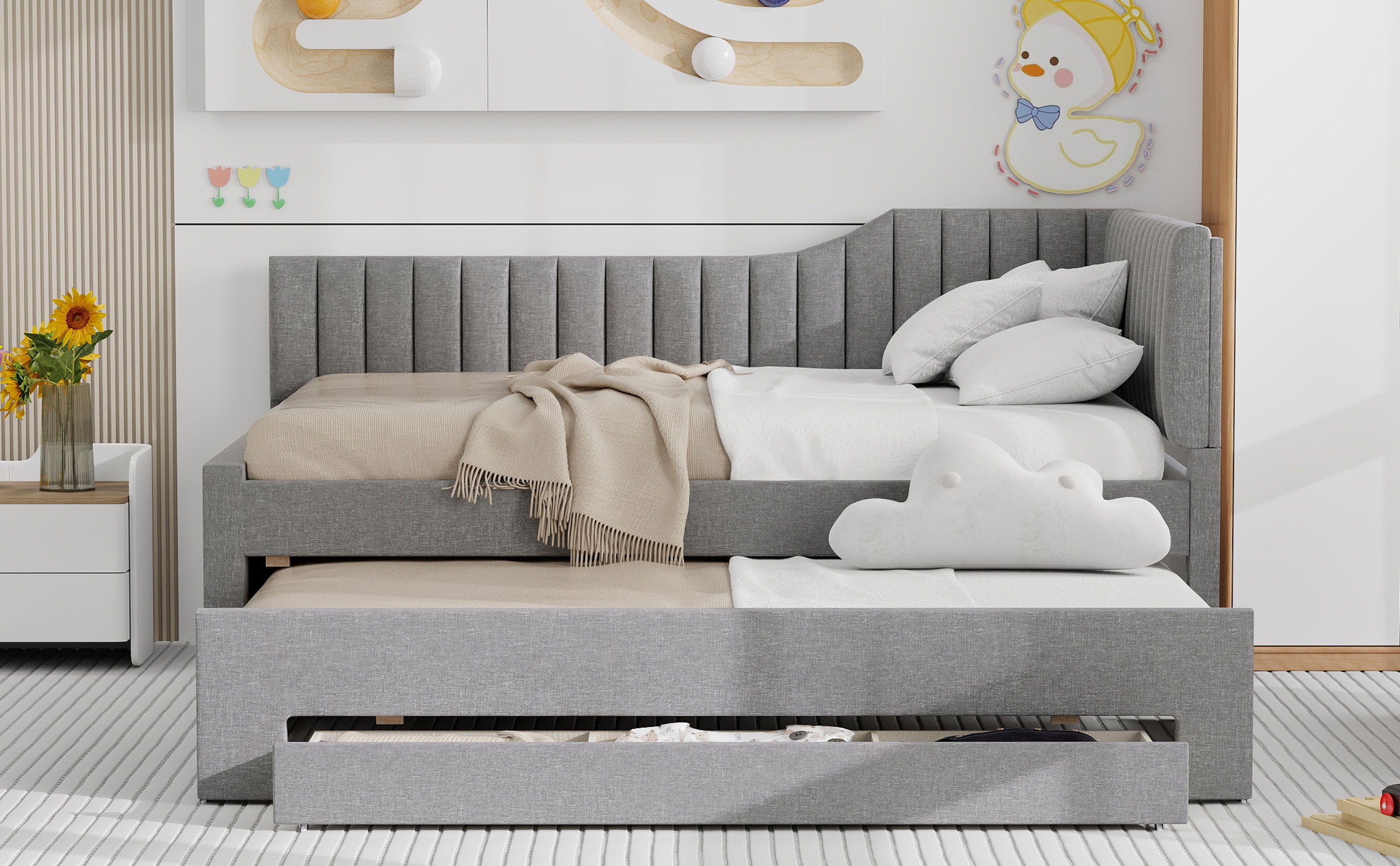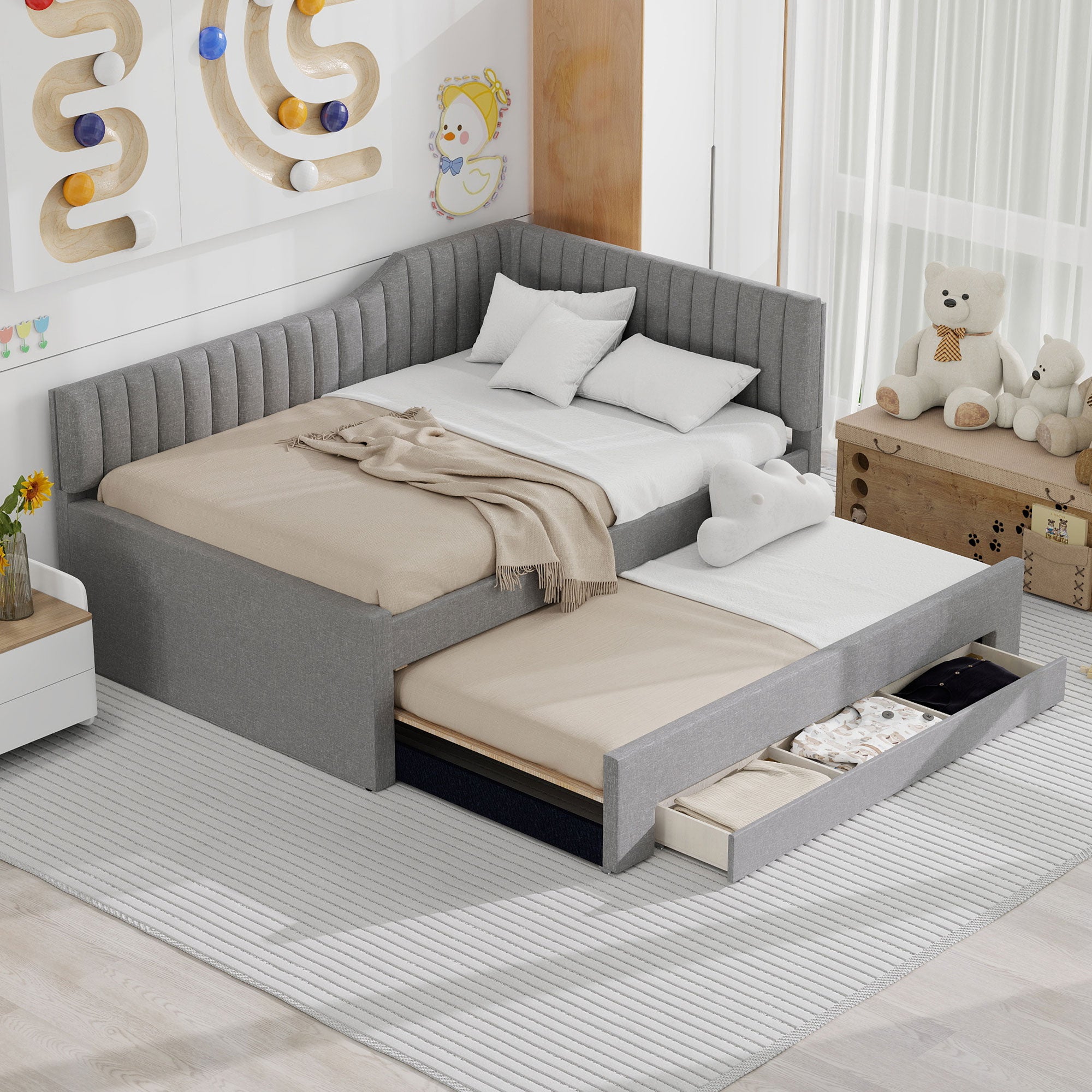- Built-in Storage: Three lower drawers provide concealed storage for linens, clothing, or games to keep the room tidy and organized.