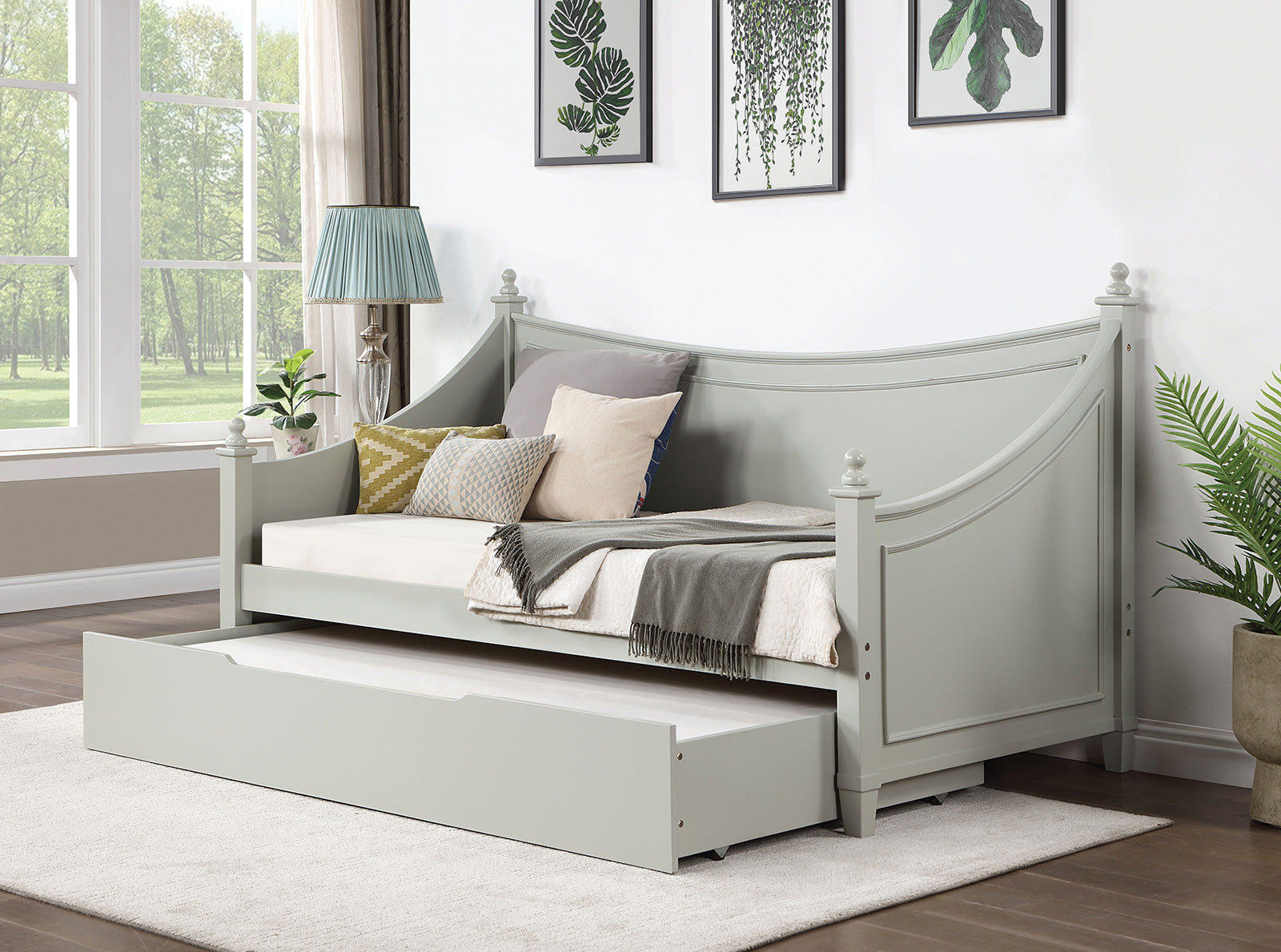 Enhance your bedroom or guest room with a versatile daybed that blends classic transitional styling and practical function. Thoughtfully designed with molding details and turned finials, this solid wood piece works beautifully as both a sofa and a bed—perfect for everyday seating, overnight guests, or a cozy reading nook. The optional trundle (sold separately) converts to drawers for hidden storage of linens and pillows, keeping your space tidy and organized.