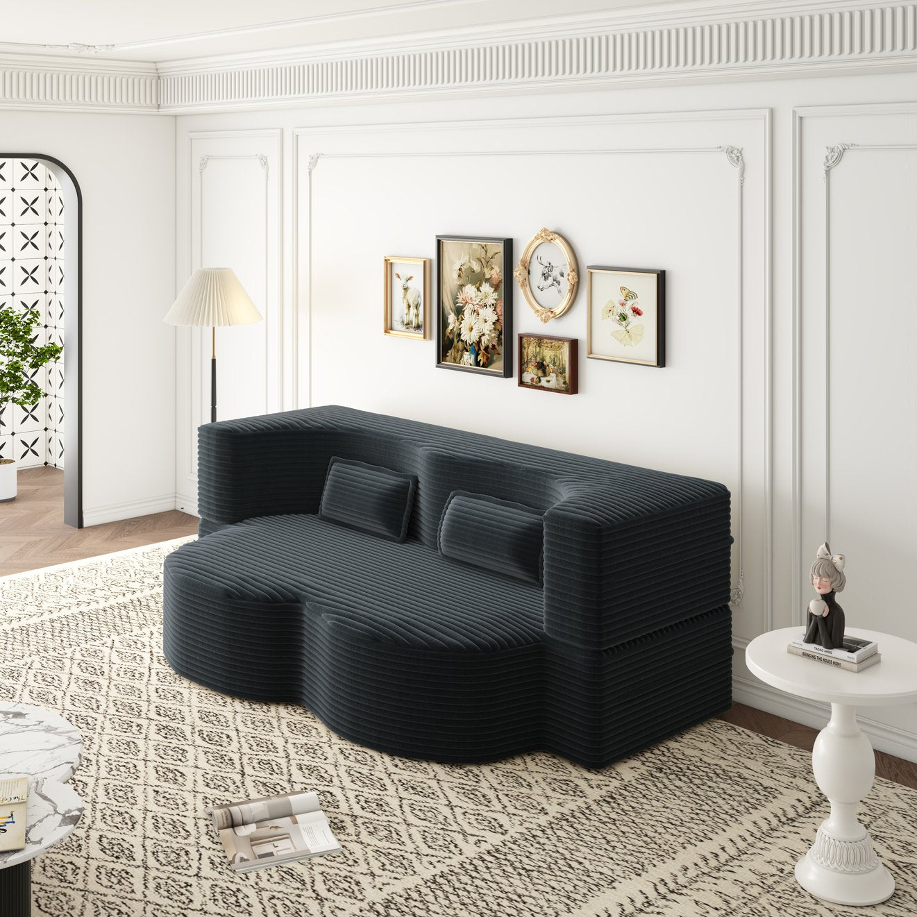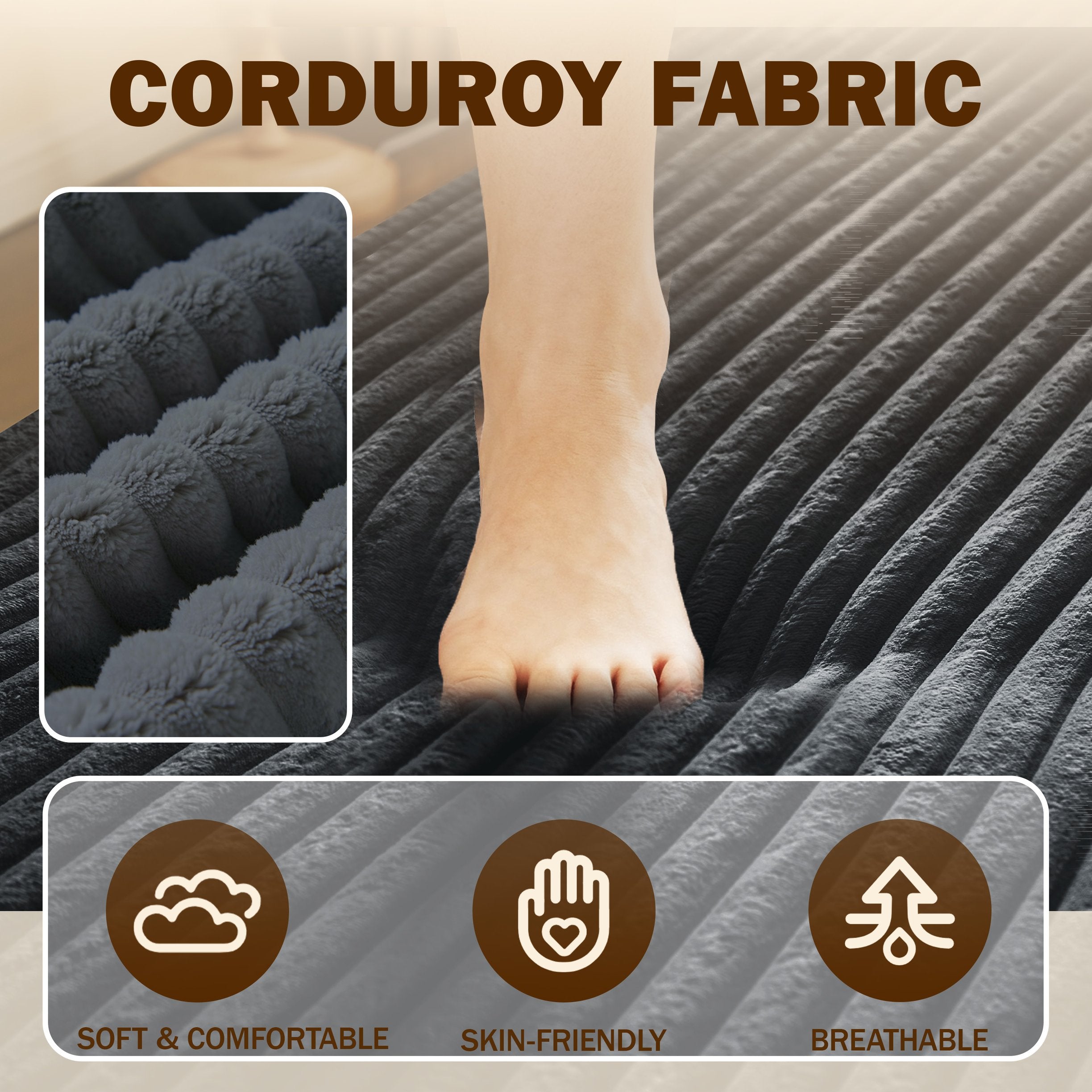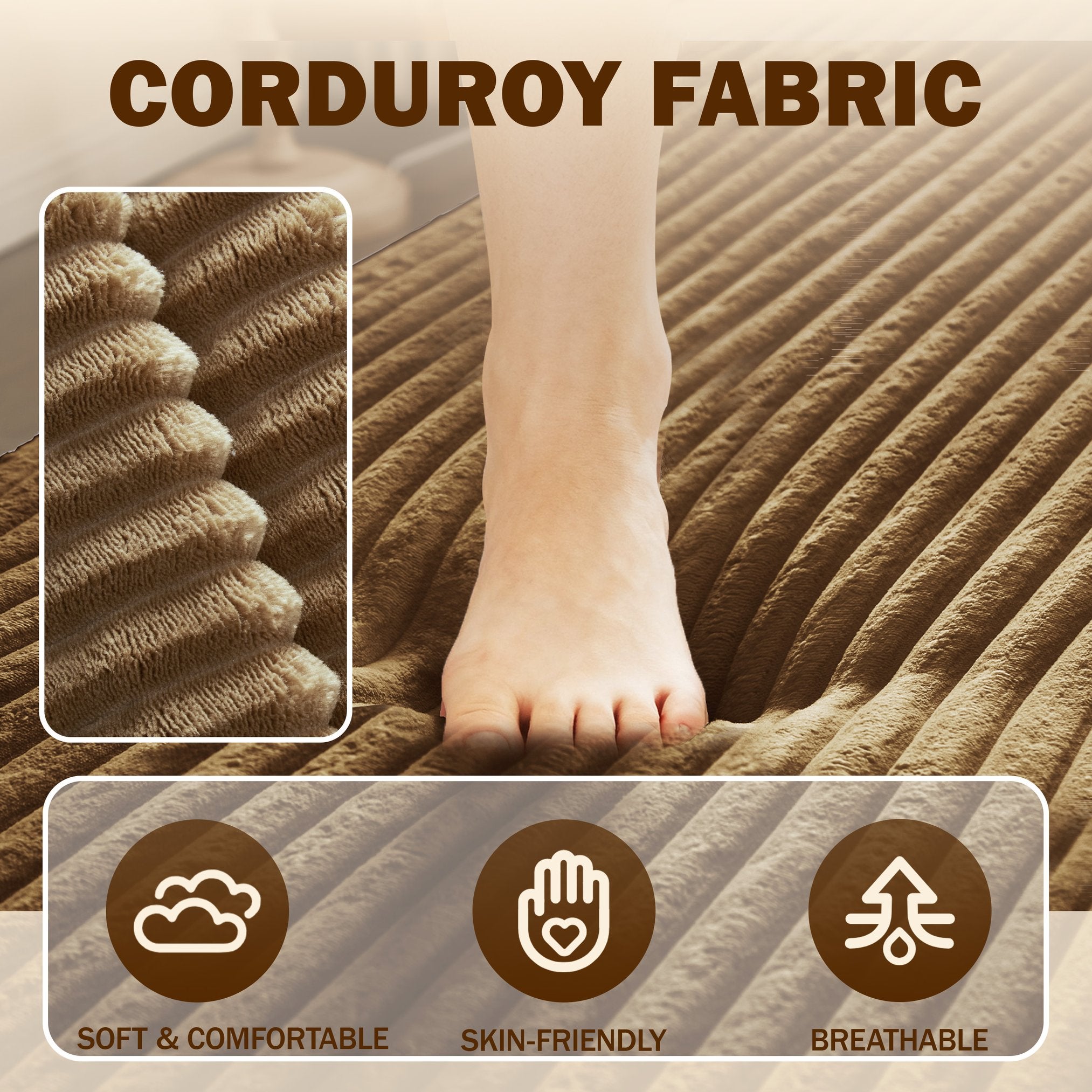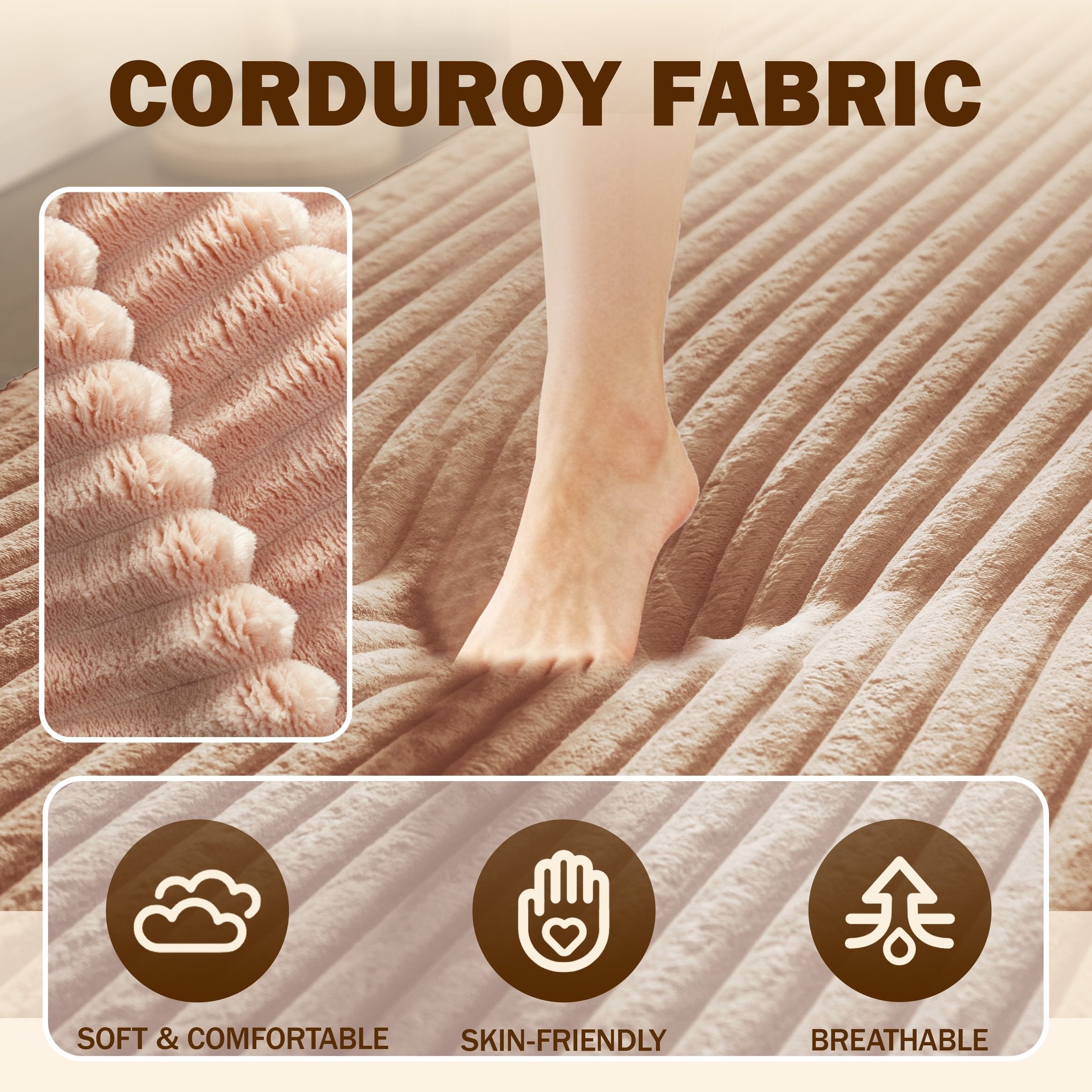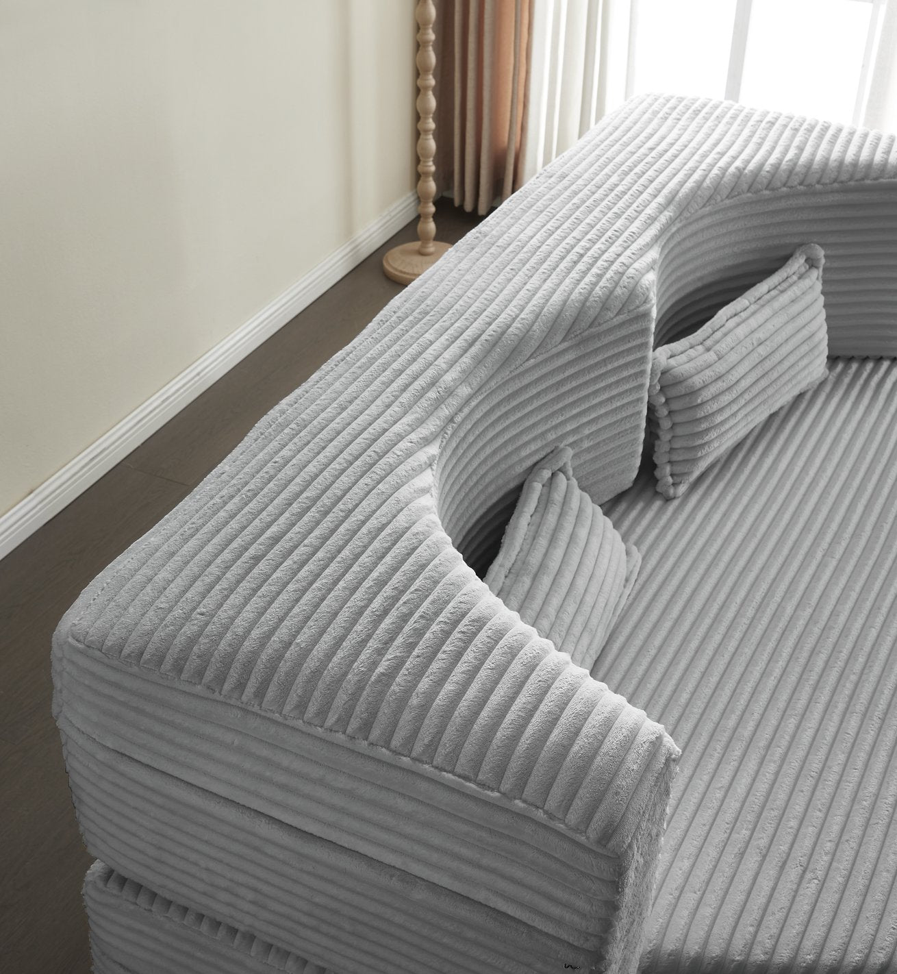 - Upholstery: Soft plush corduroy available in multiple colors (Beige/White, Pink, Grey, Green, Blue, Burgundy, Black, Camel, Coffee) for easy coordination with your decor.
