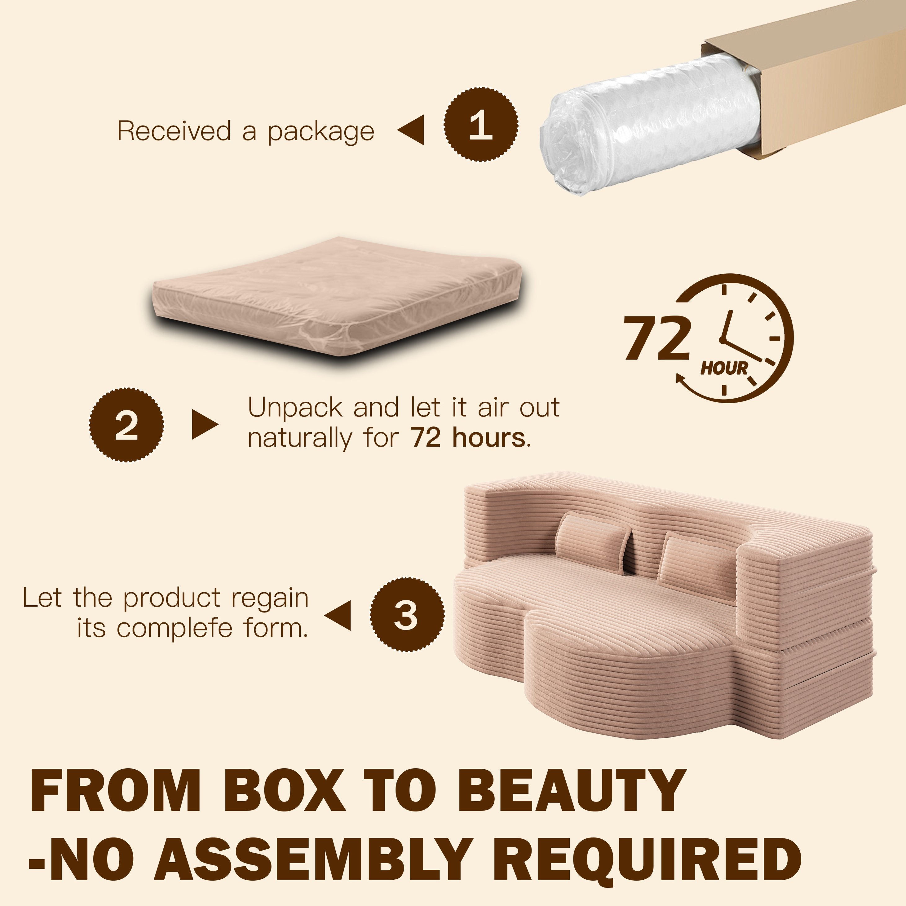 - No assembly required: This sofa can free of your stereotyped nightmare of furniture assembly. Please take package out and pat every part to make it rebound better and fluffy, so that it can restore to picture-like status.