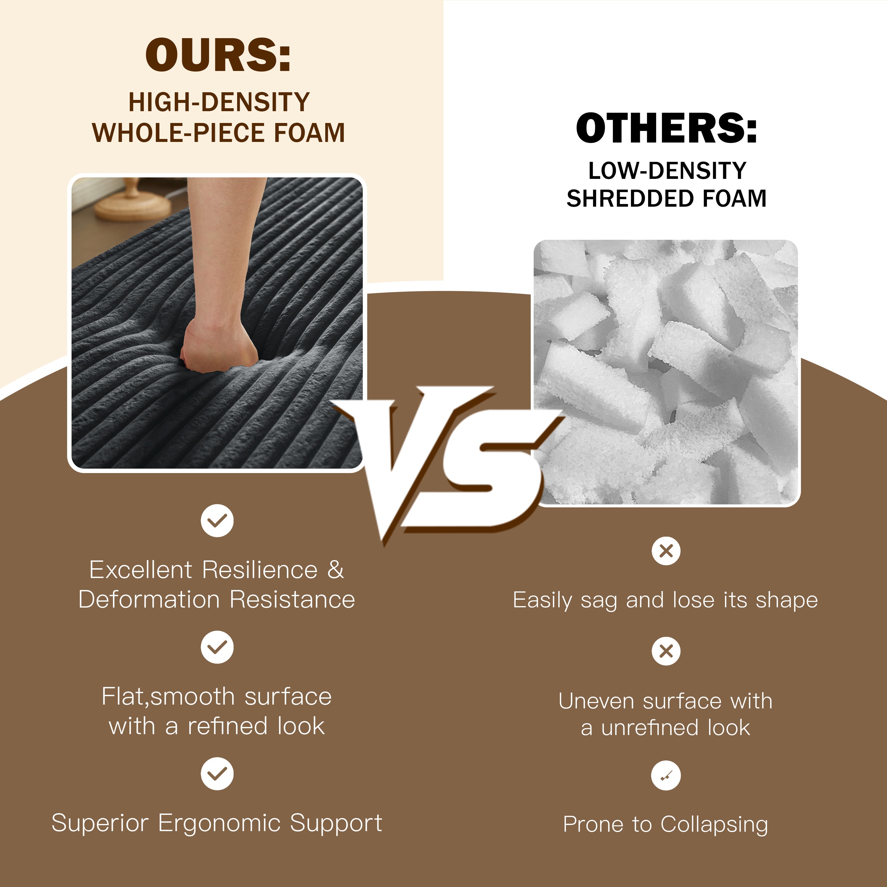- Convertible design: Folds down from a compact sofa to a full-size 15" mattress quickly and without tools — ideal for guests or lounging.