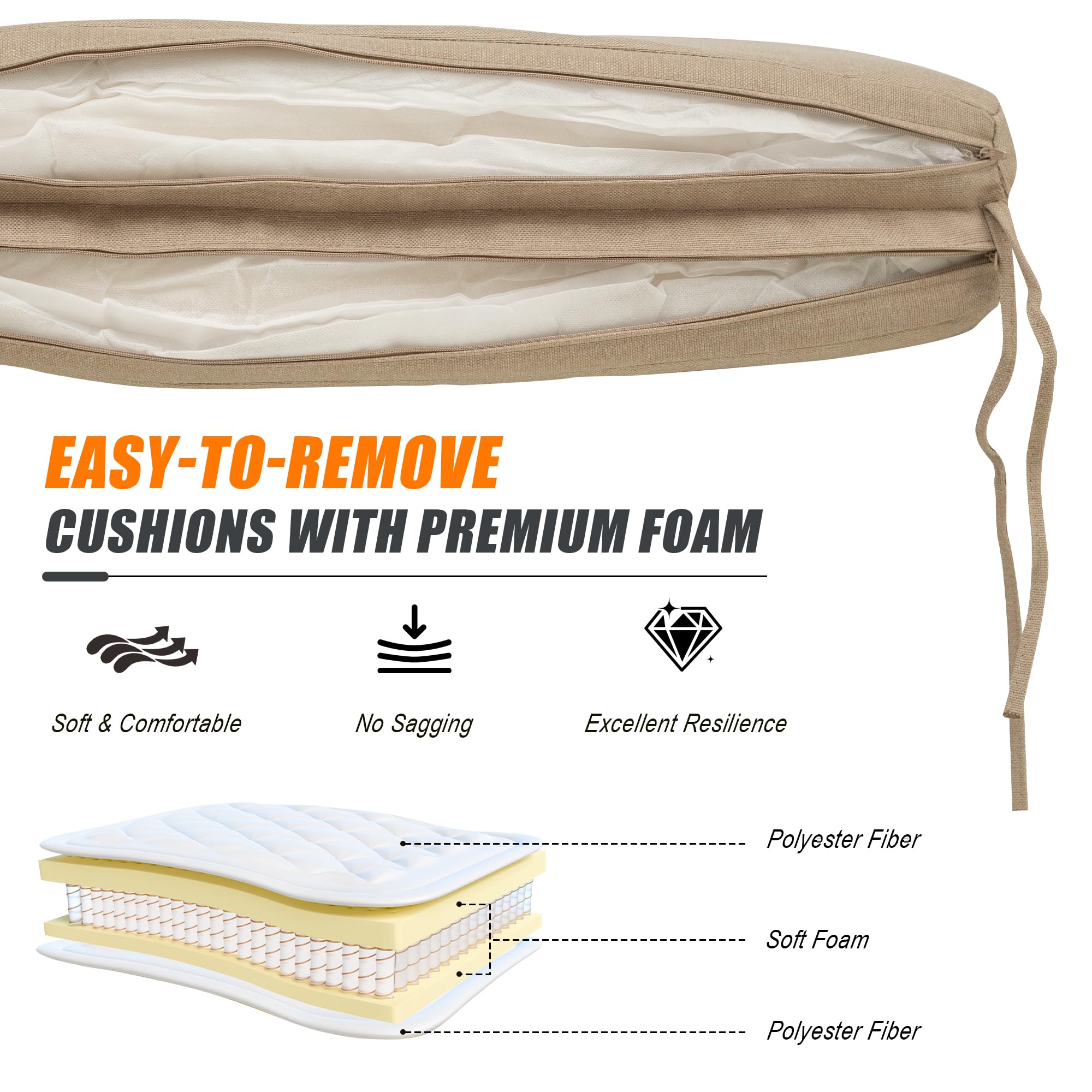 - Plush, Weather-Ready Comfort: Thickened, water-repellent cushions with a detachable pillow and soft padding mat for easy cleaning and lasting comfort.