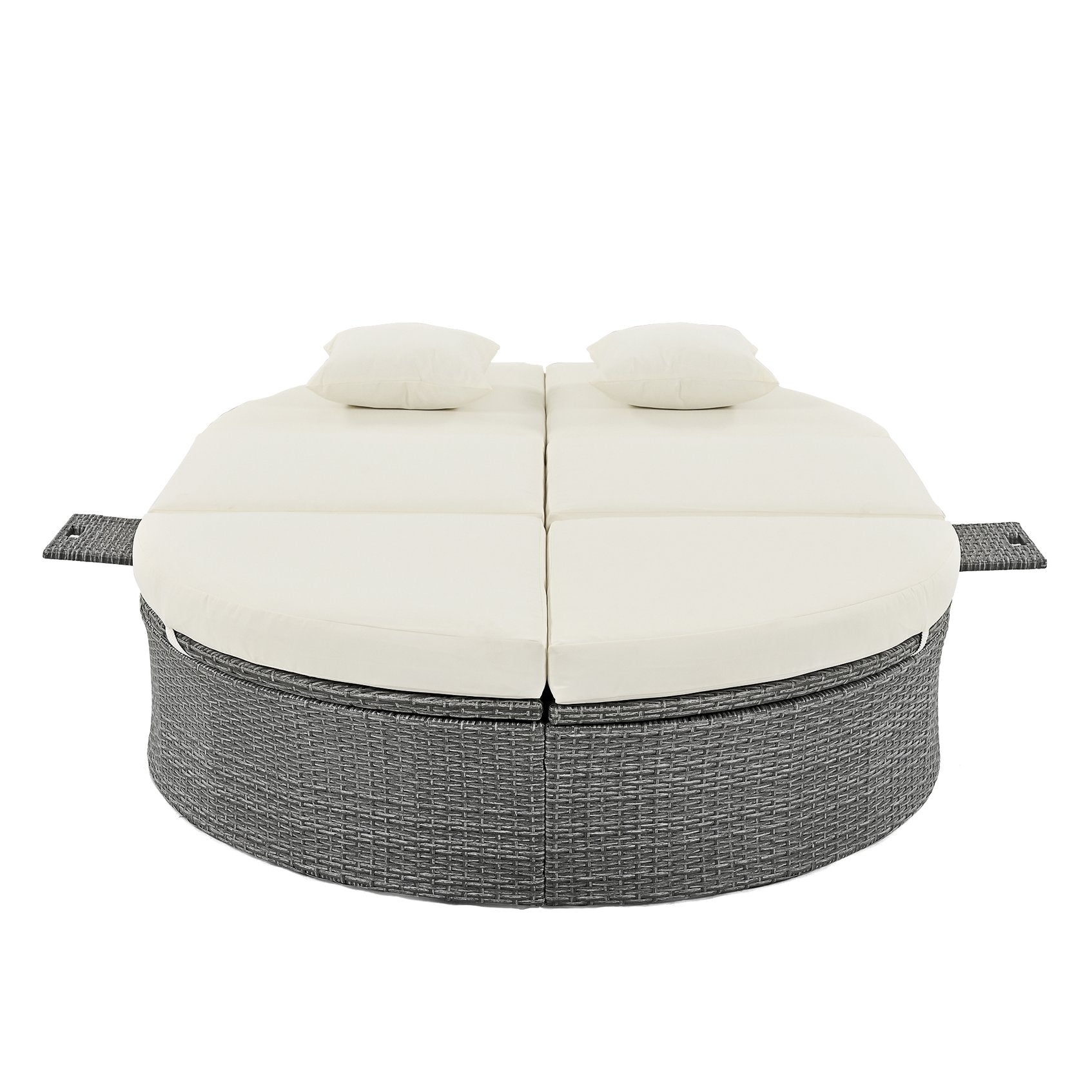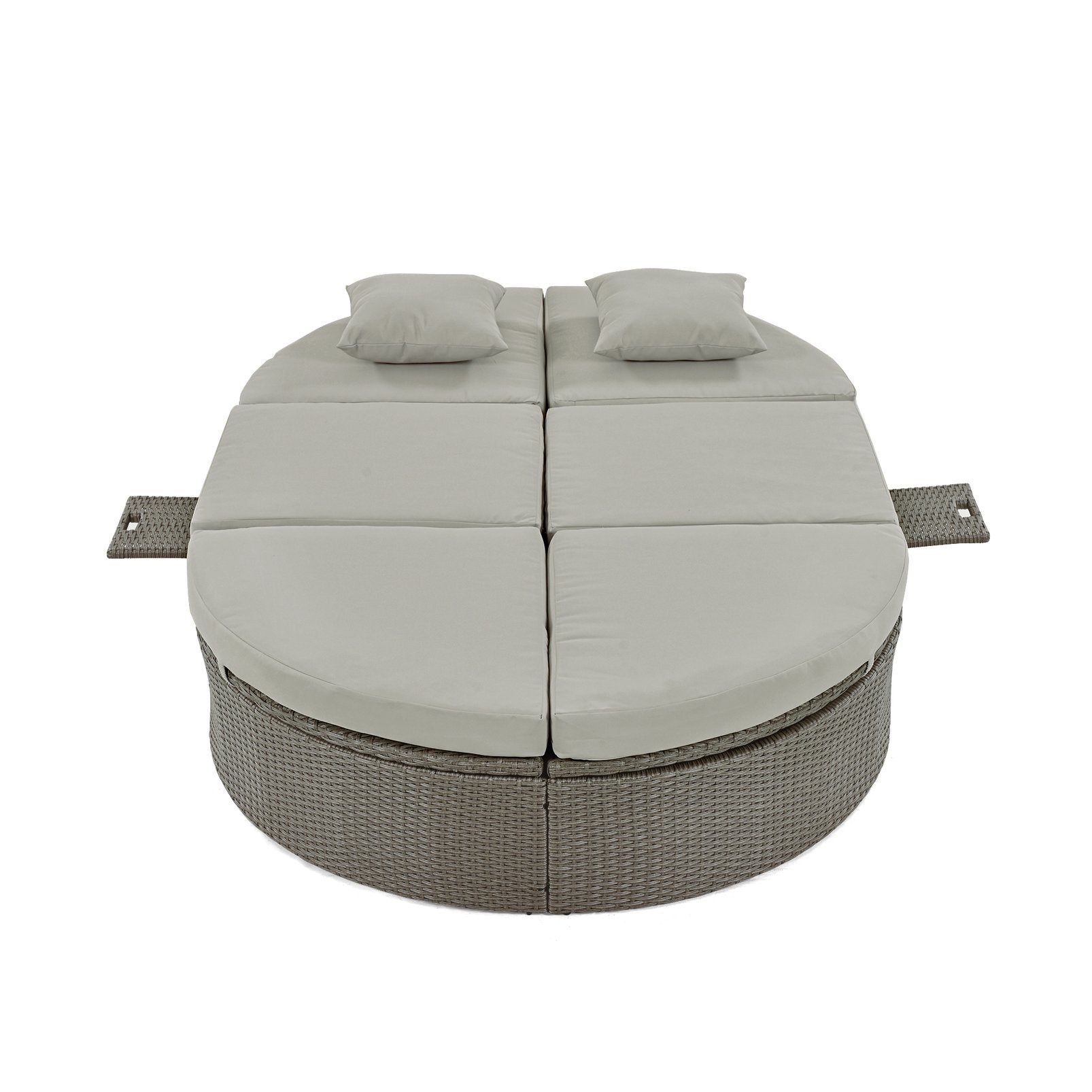 - Complete set & finish: Includes 1 two-person daybed, 6 cushions, and 2 pillows; gray rattan and gray fabric create a neutral, modern look.