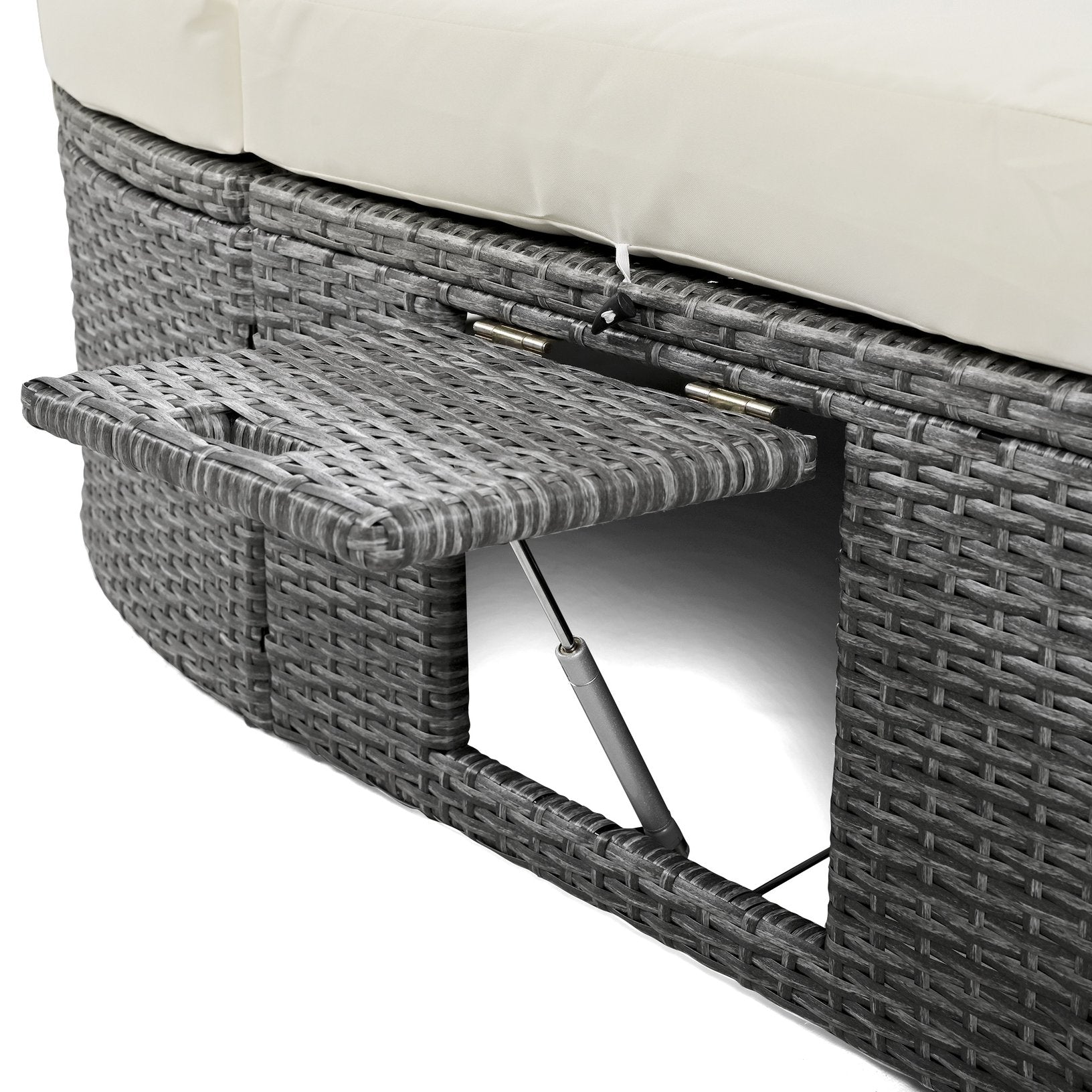 - [Trays on Both Sides & Arm’s Reach Solution] This outdoor patio daybed features a thoughtful design with foldable cup trays on both sides, each measuring 9.6x7.9 inches. These convenient trays serve as perfect holders for items such as chilled beverages or cell phones, making them easily accessible. With a weight capacity of 22 lbs, the trays add to the daybed's practicality, providing a convenient and stylish solution for keeping essentials within arm's reach while enjoying the outdoors.