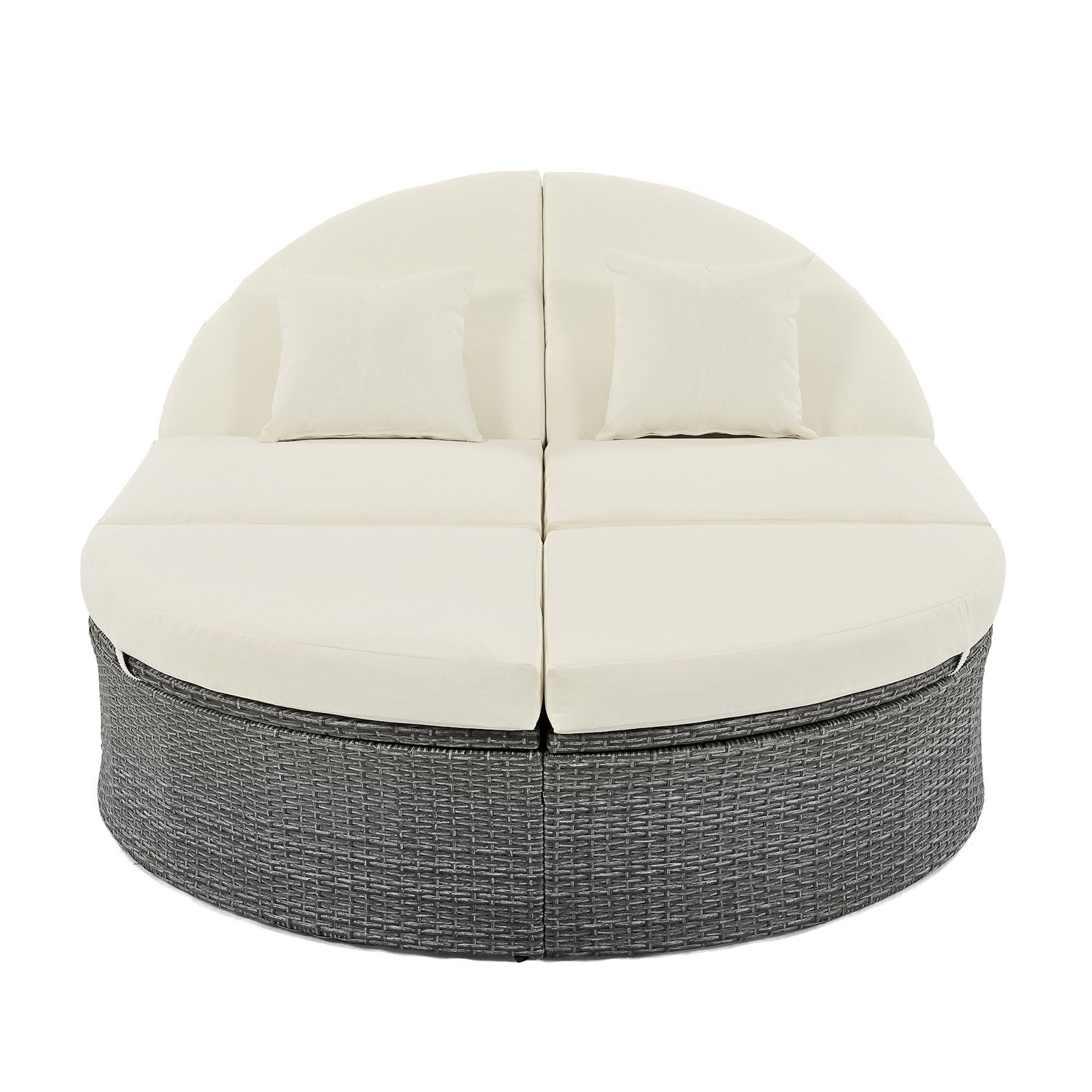 Escape into shared comfort with this sophisticated two-person outdoor daybed designed for poolside lounging, garden relaxation, or lazy afternoons on the lawn. Built from weather-resistant materials and thoughtful engineering, it combines durable PE wicker, a sturdy iron frame, plush removable cushions, adjustable reclining positions, and handy fold-away trays so you and a companion can relax in style and convenience.