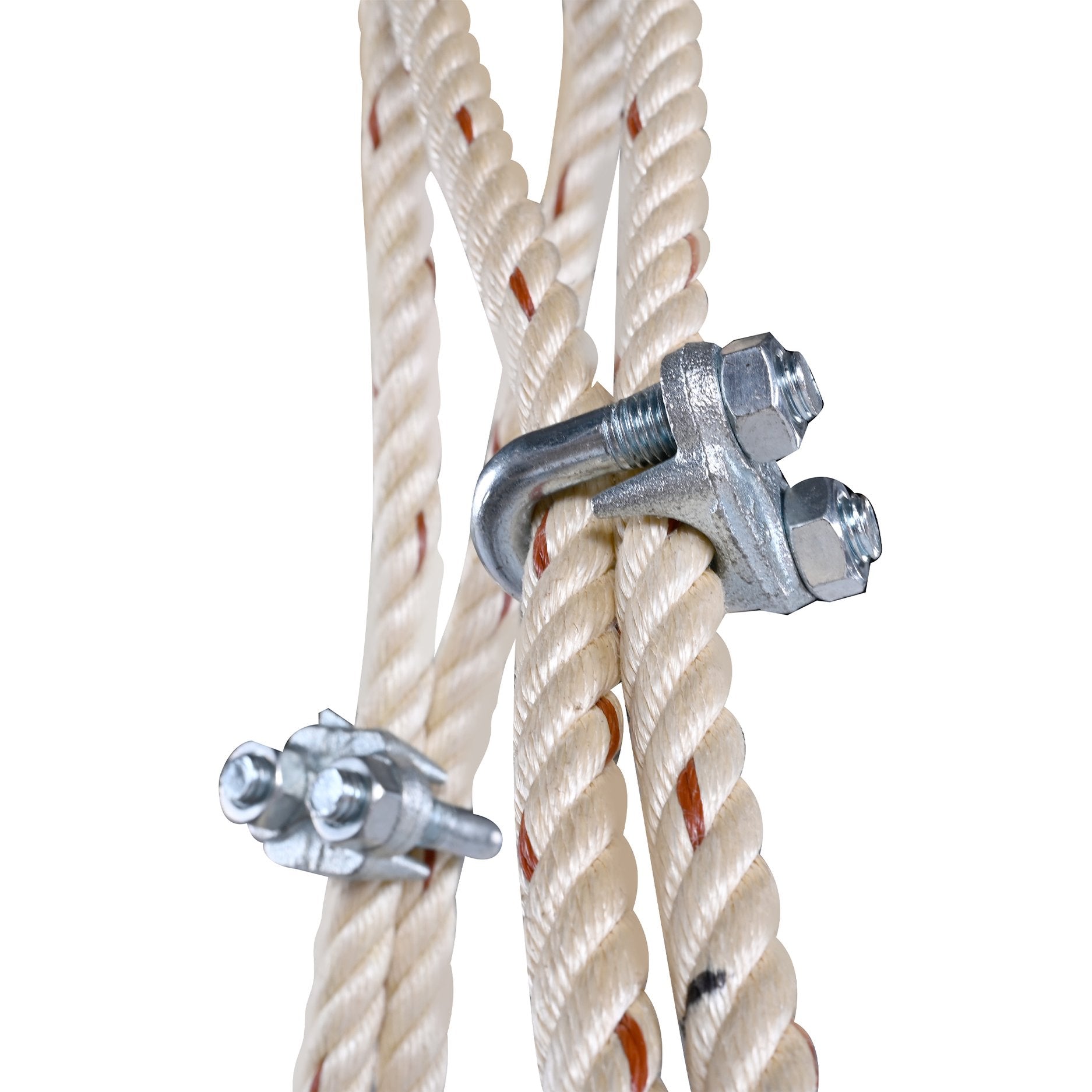 - Hanging System: Includes four 98-inch hemp ropes and two rope clips to fasten ropes securely; hardware and manual included for installation.