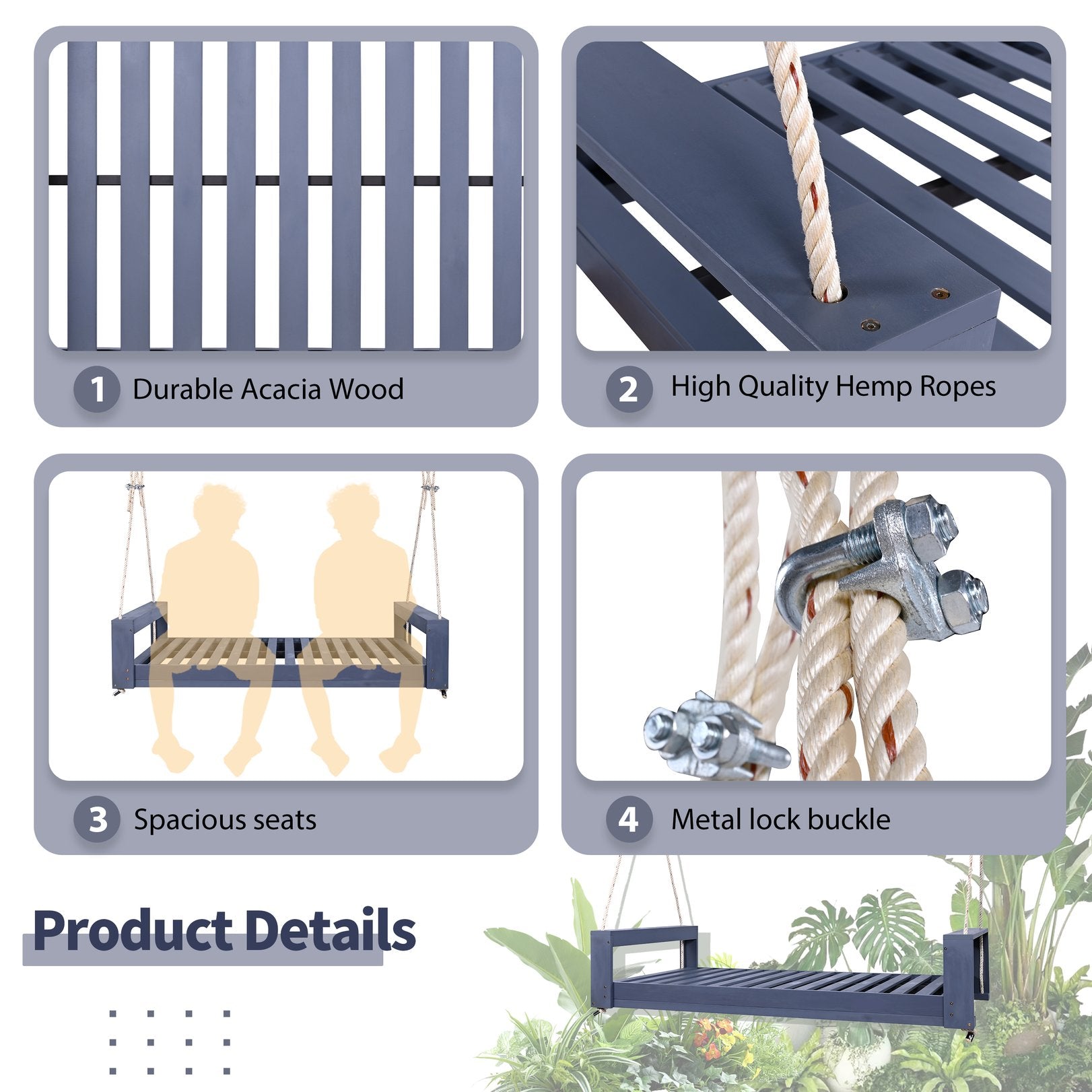 - [Premium Acacia Wood Construction] Crafted from durable acacia wood, this Porch Swing Bed offers lasting beauty and strength. Its natural wood grain adds rustic charm, while its weather-resistant design ensures long-term durability. Perfect for gardens, patios, or porches, this swing bed is built to withstand outdoor elements while providing a stylish and cozy retreat.