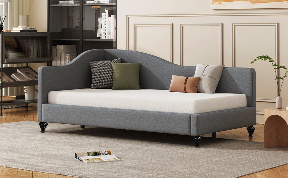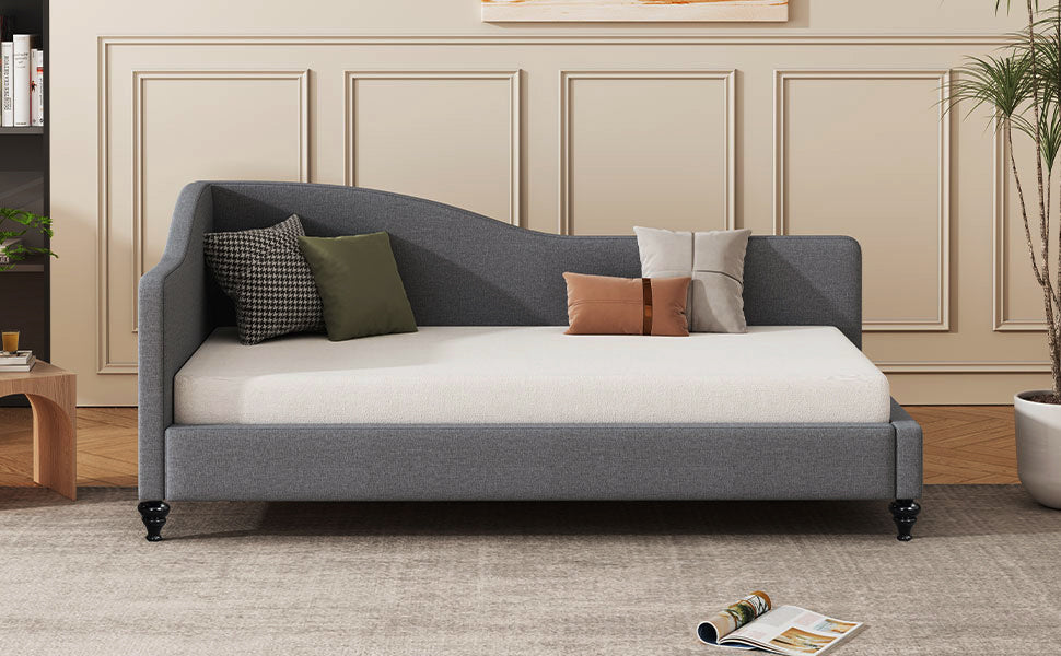Bring versatile, modern comfort to your bedroom or guest room with this semi-enclosed L-shaped daybed. Upholstered in durable linen and supported by solid wood legs, it blends contemporary style with sturdy construction to serve as a cozy sleeping spot, stylish seating area, or multi-use accent piece.