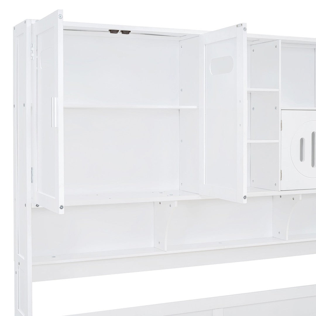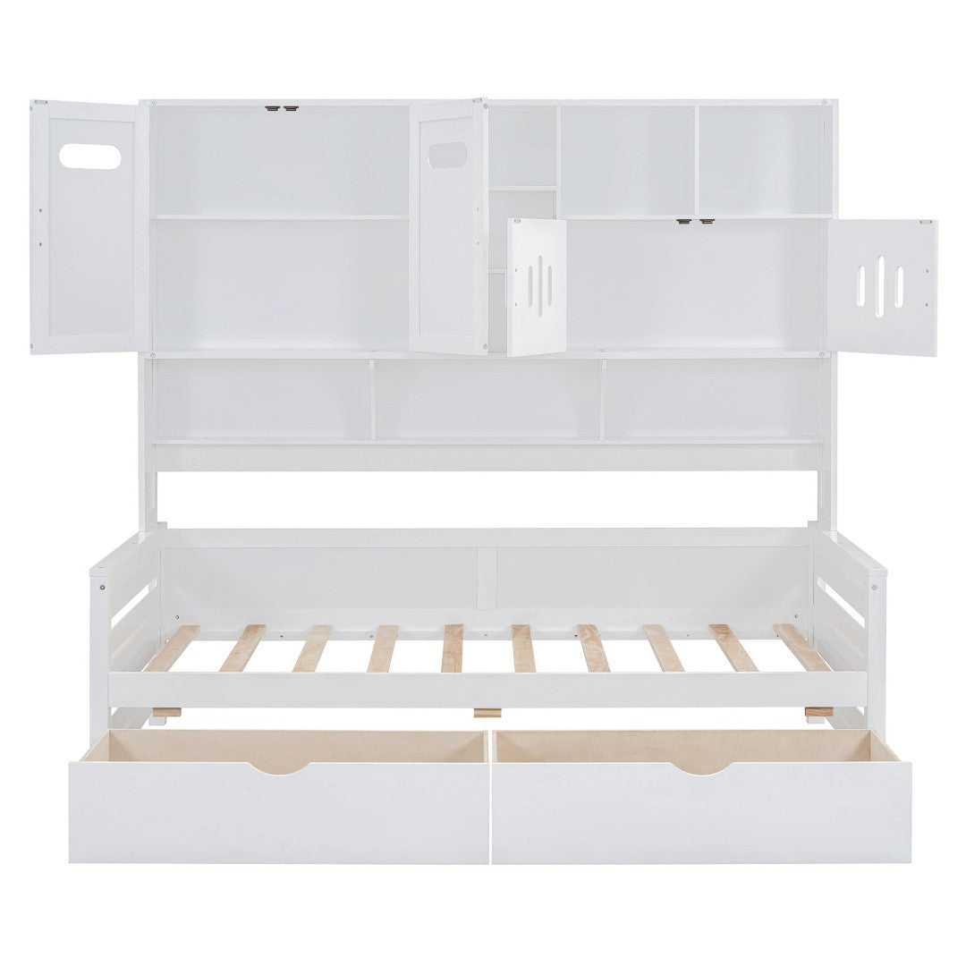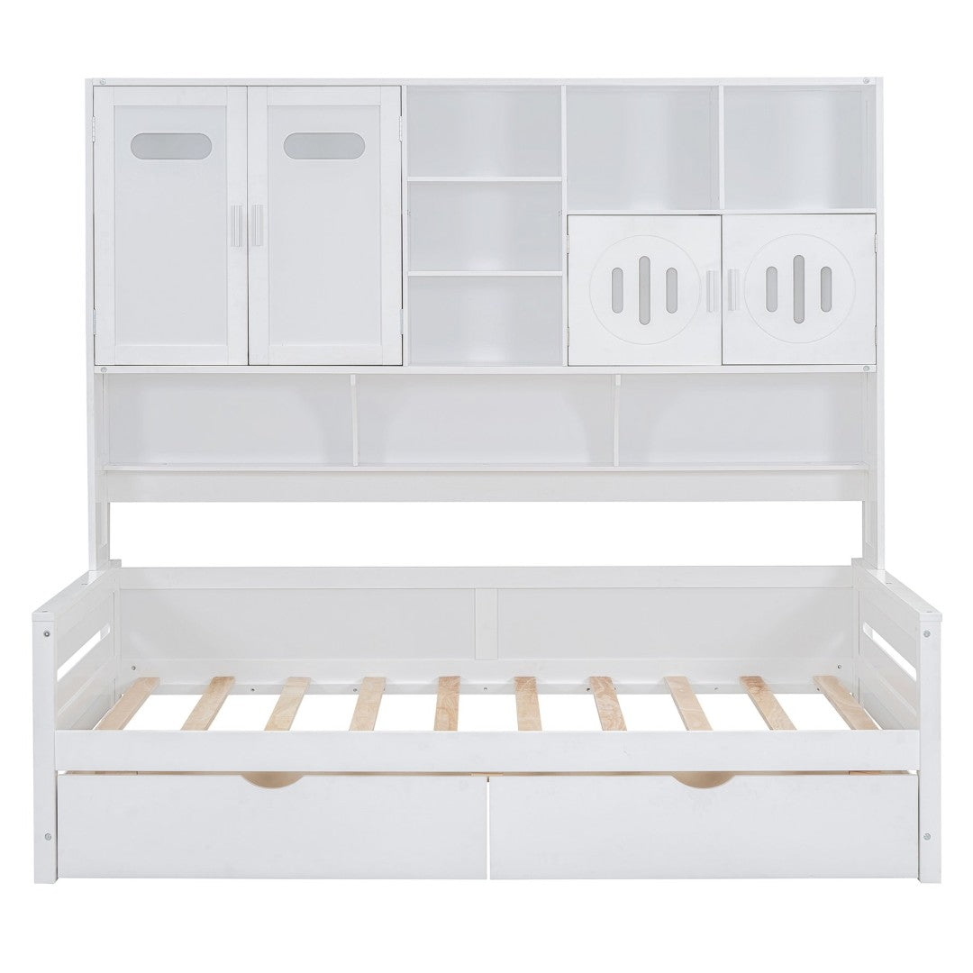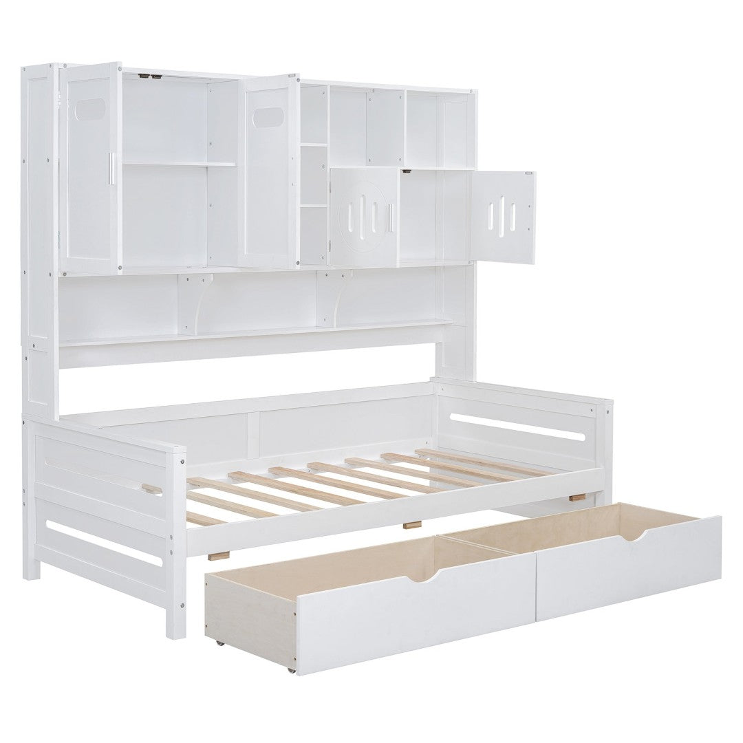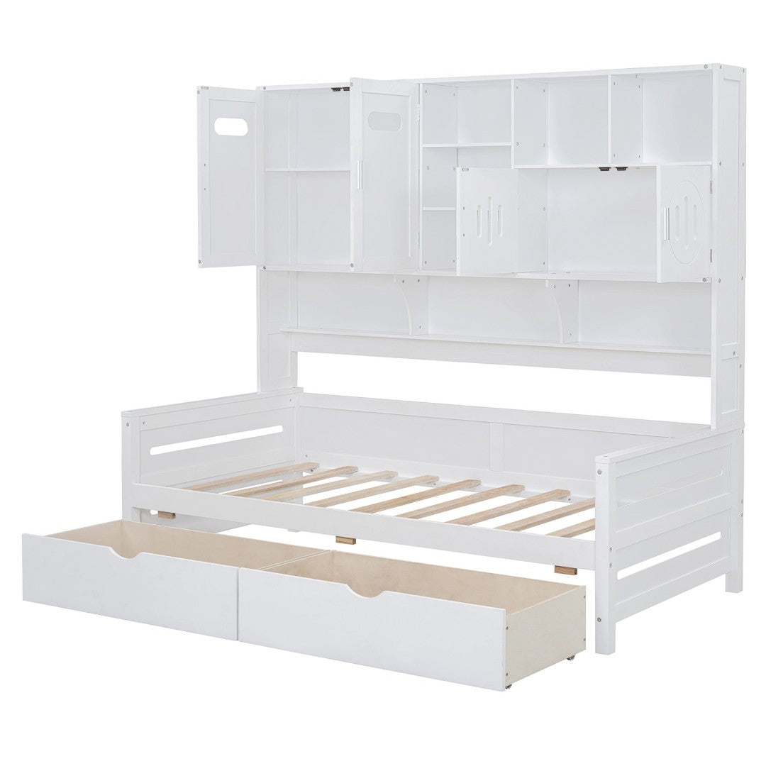 Add a clean, multifunctional focal point to your bedroom with this Twin wooden daybed featuring integrated storage and shelving. Designed for small spaces, it combines sleeping, display, and hidden storage in one sturdy piece — ideal for guest rooms, kids’ rooms, or studio apartments. Its crisp finish and classic lines blend with a range of decor while durable construction supports everyday use.