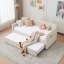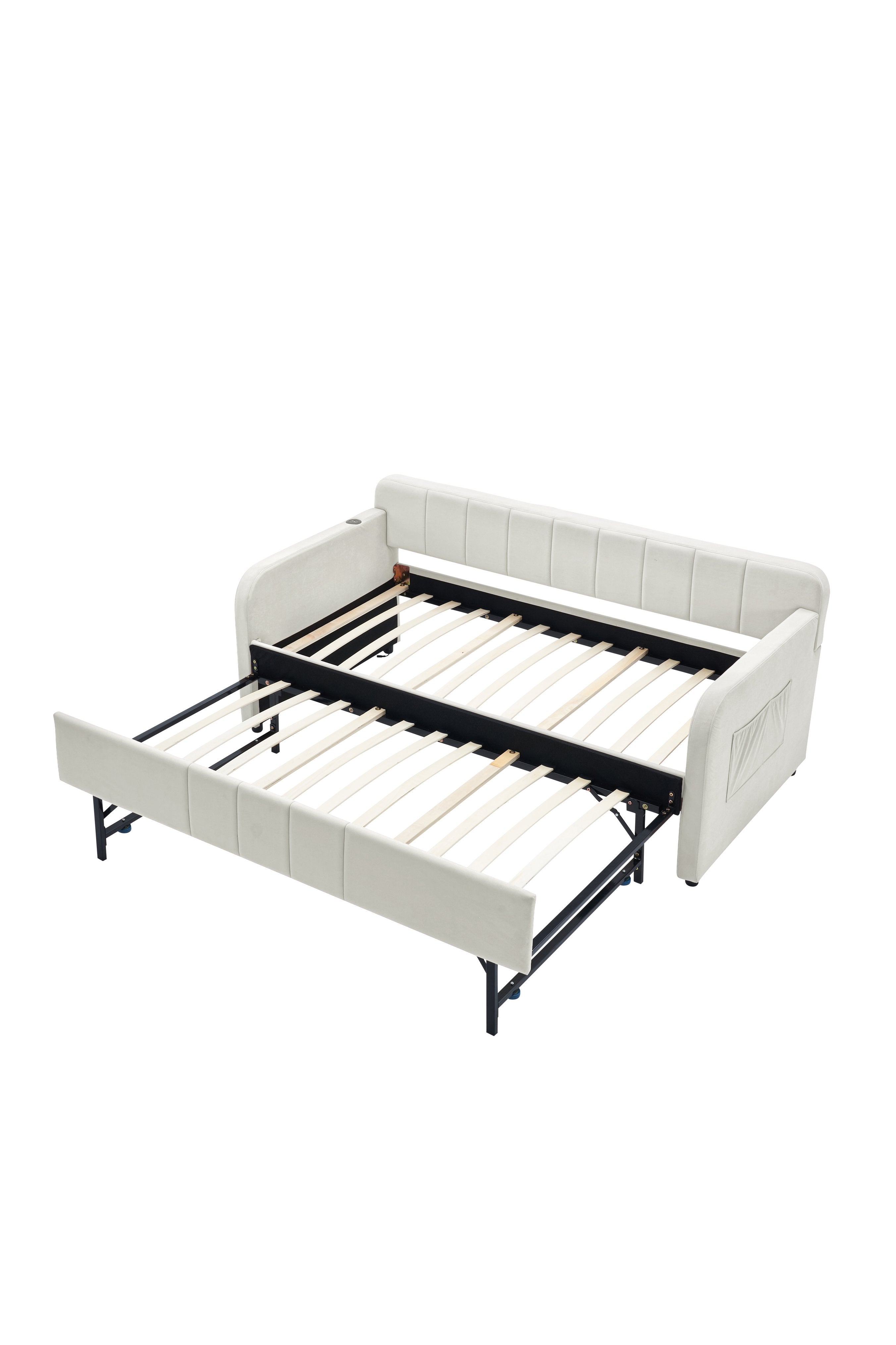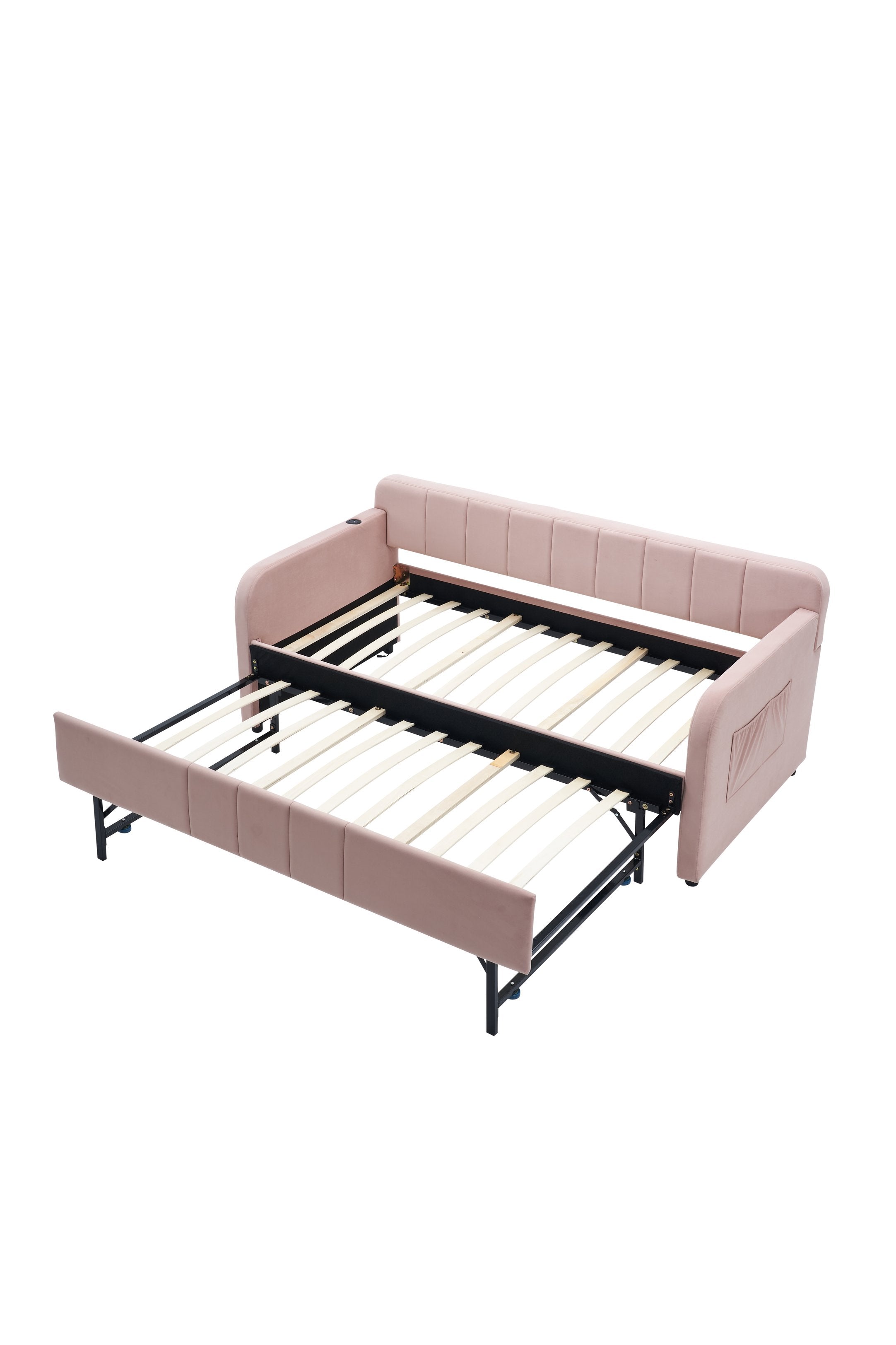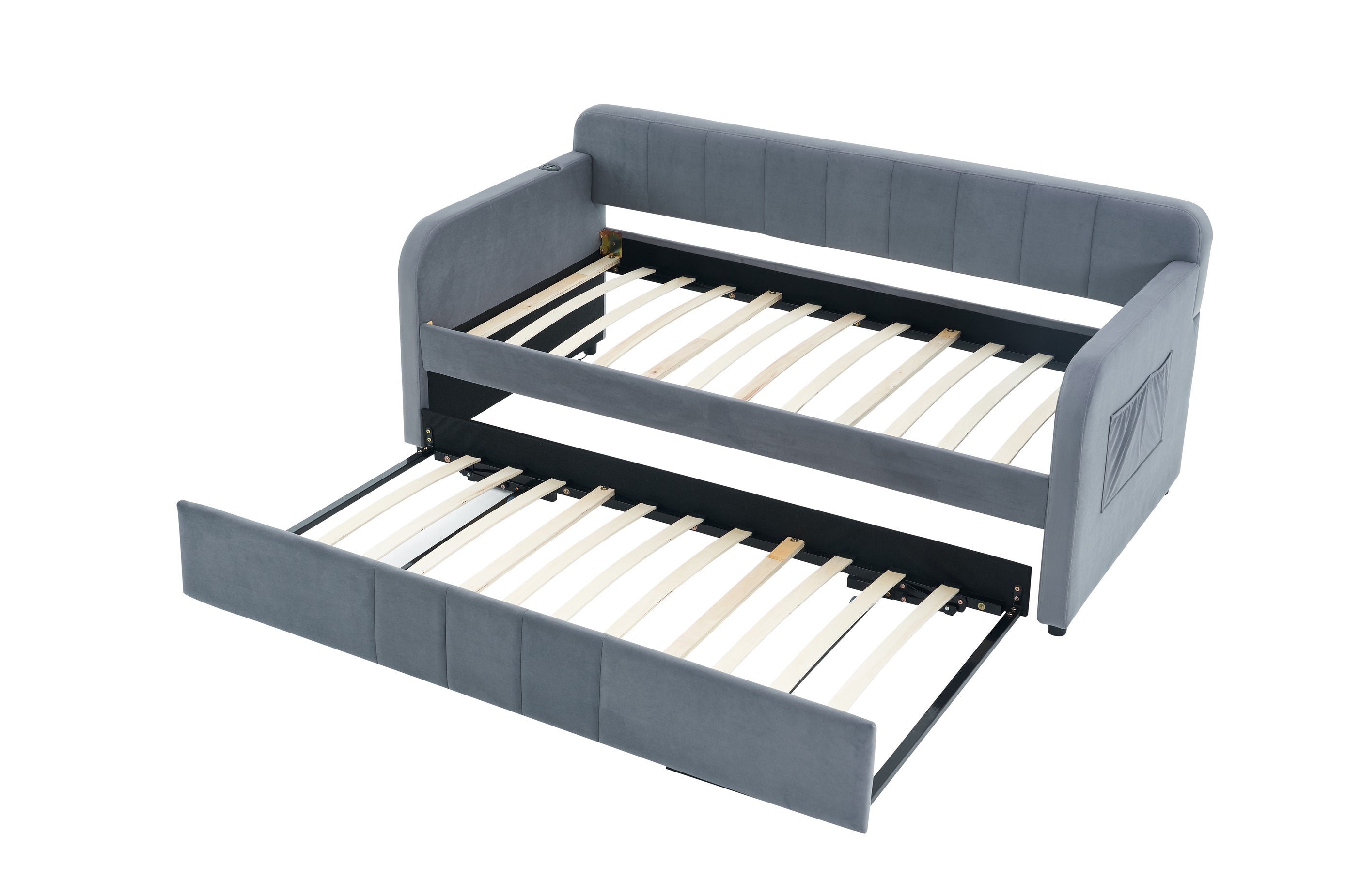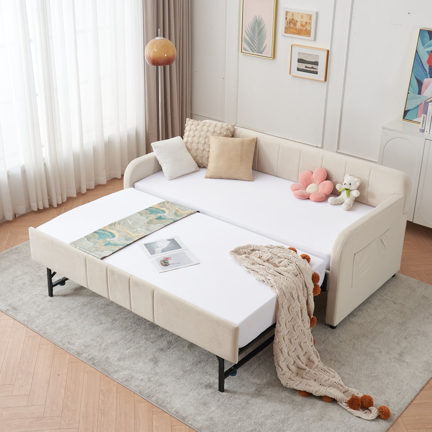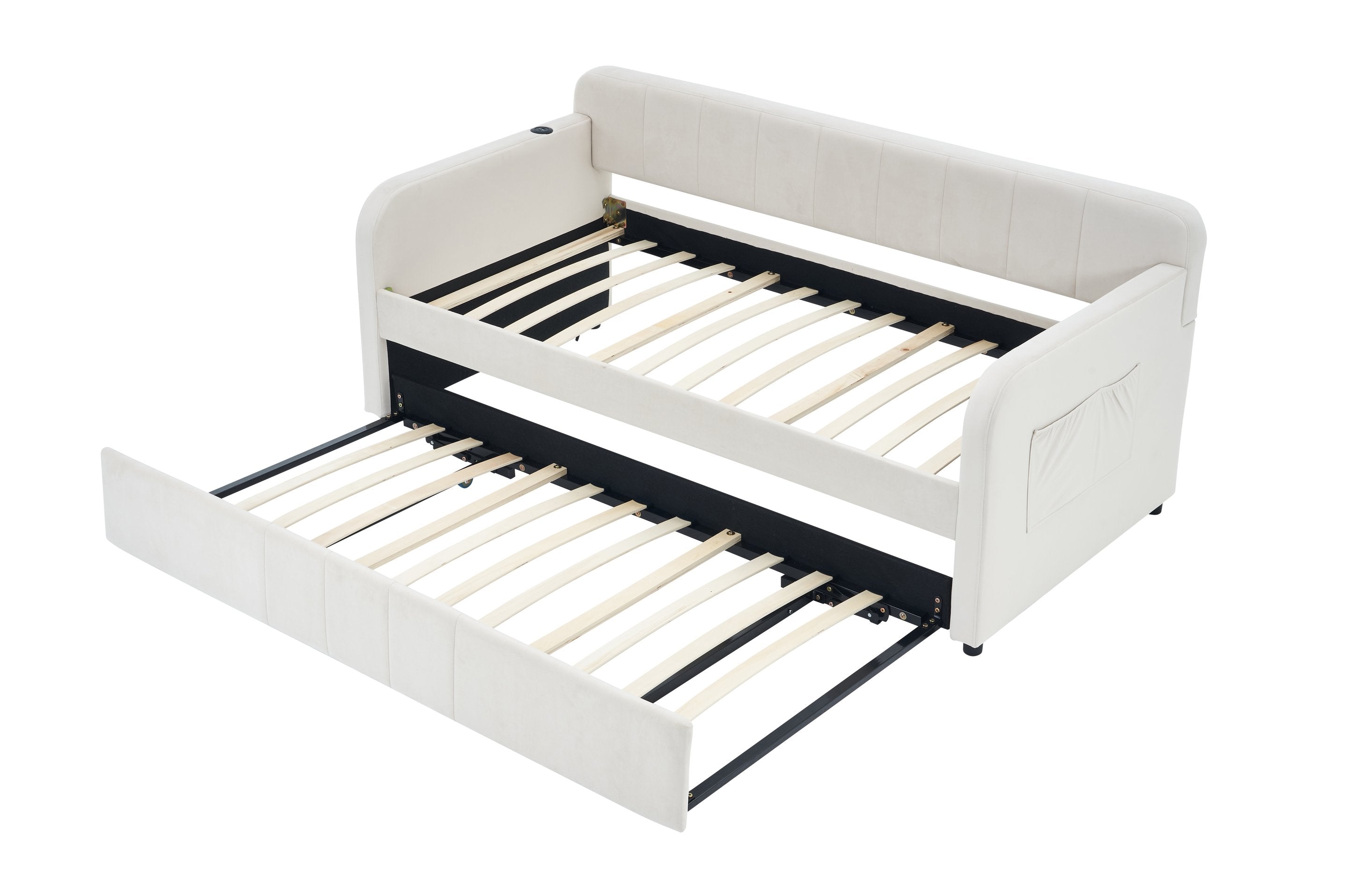 Transform any bedroom, guest room, or living space into a stylish, space-saving retreat with this upholstered twin daybed and pull-out trundle. Plush velvet upholstery, a supportive wood-slat system, and a sturdy pine/MDF/iron frame combine to deliver comfort, durability, and a polished look that suits modern and transitional interiors. Ideal for daily lounging or accommodating overnight visitors, this daybed offers a neat footprint with flexible sleeping options.
