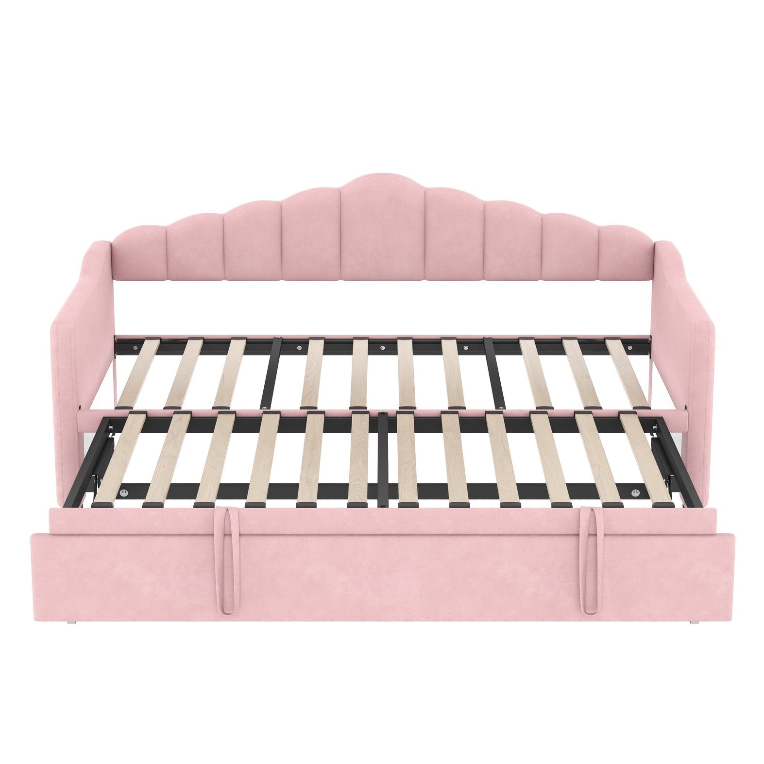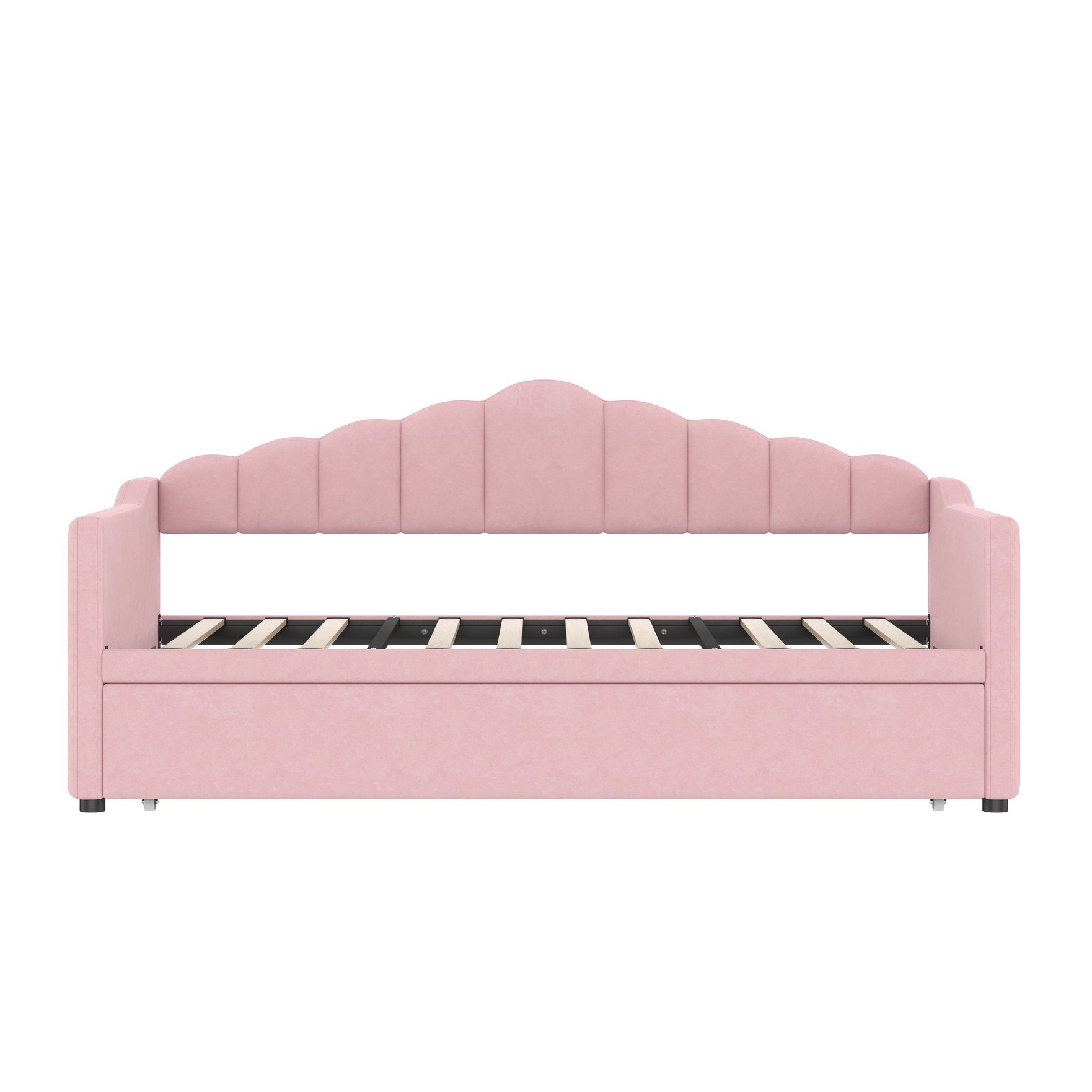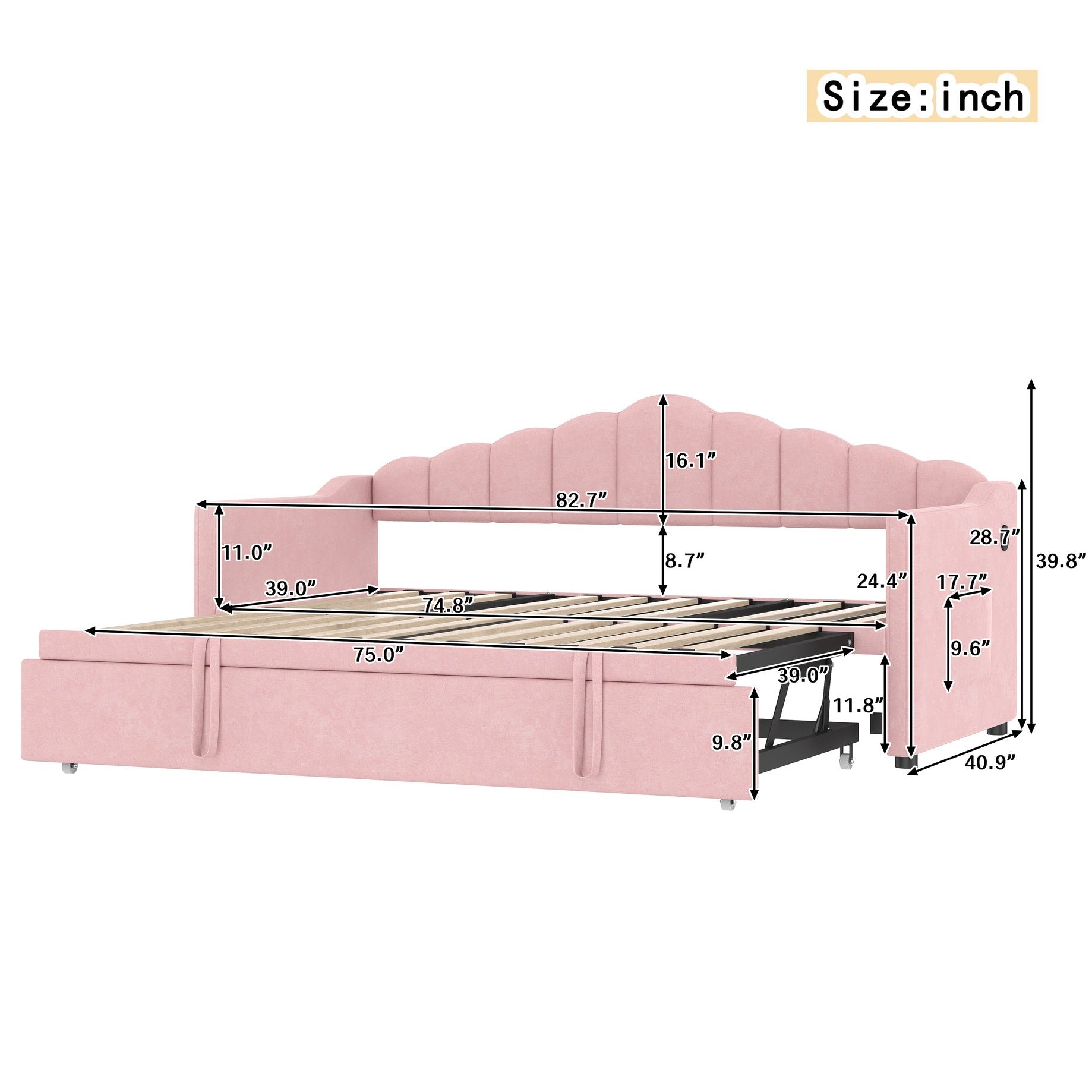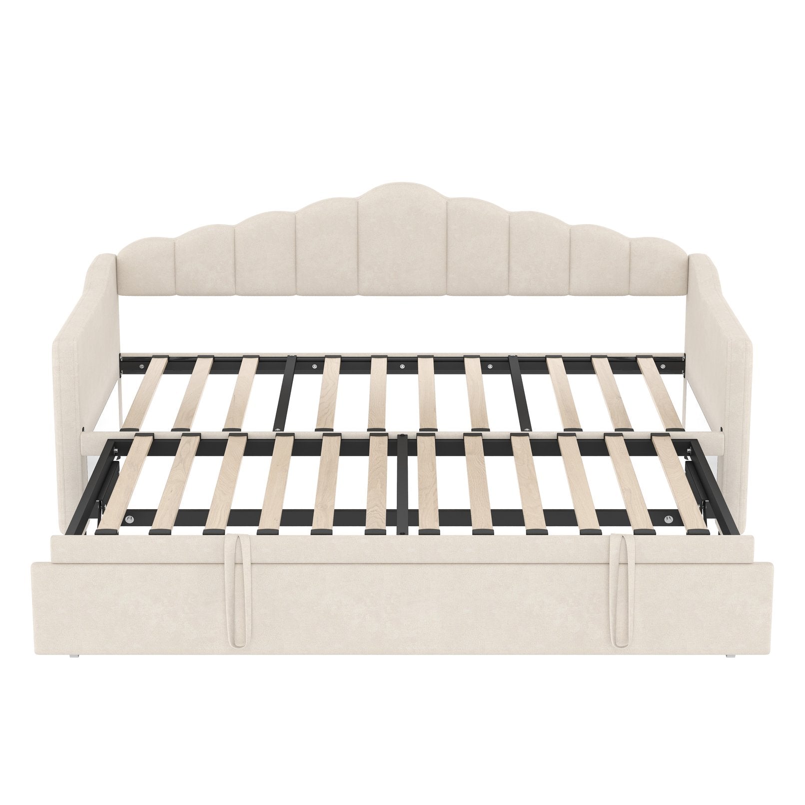 - 1.Daybed with Pop Up Trundle: This twin size daybed comes with a pull-out pop-up twin trundle that easily converts into an extra sleeping space for guests or siblings. The trundle is designed with an adjustable height feature, allowing it to align with the daybed to create a larger, seamless sleeping surface or function as a separate bed when needed. It's a practical and space-saving solution for any bedroom or guest room.