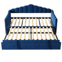- 5.Modern Velvet Daybed Frame: This upholstered daybed features a soft velvet surface paired with a uniquely curved backrest design, creating an elegant and eye-catching silhouette. Its refined appearance blends effortlessly with a variety of interior styles, making it a stylish addition to bedrooms, guest rooms, or living spaces.