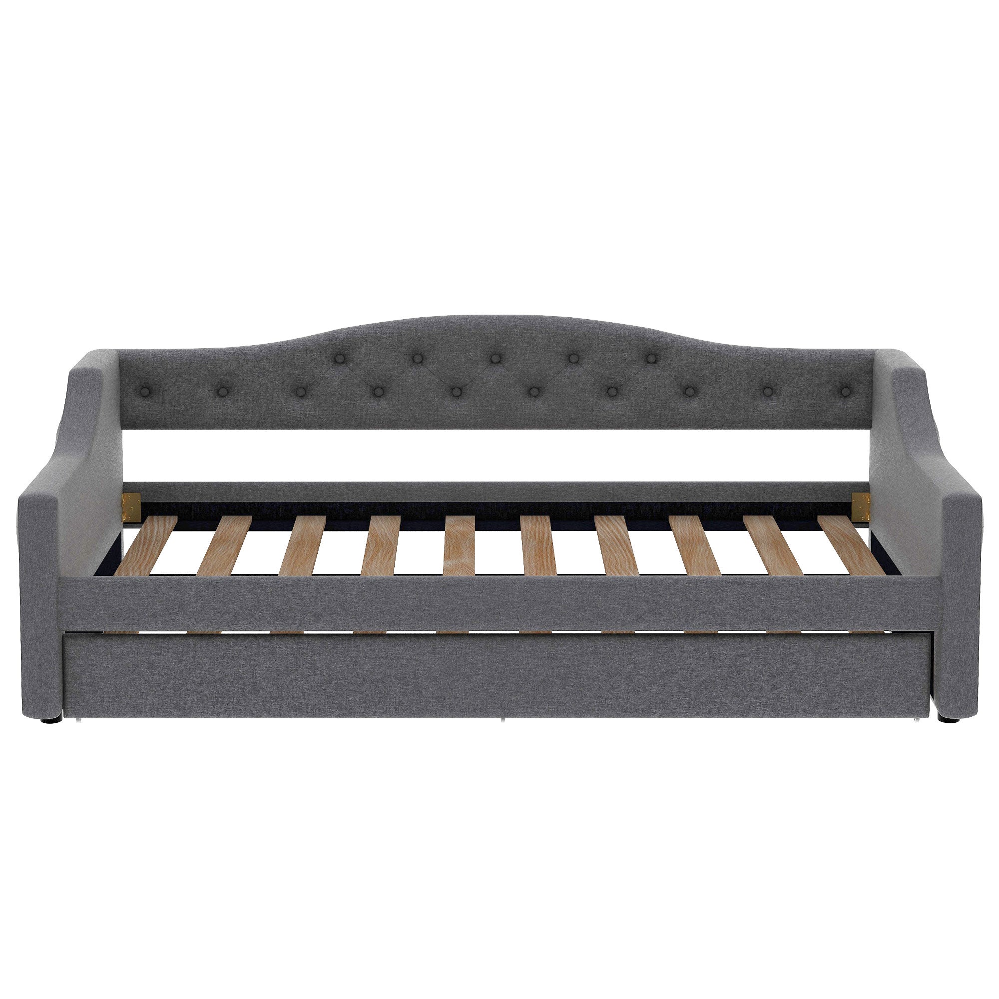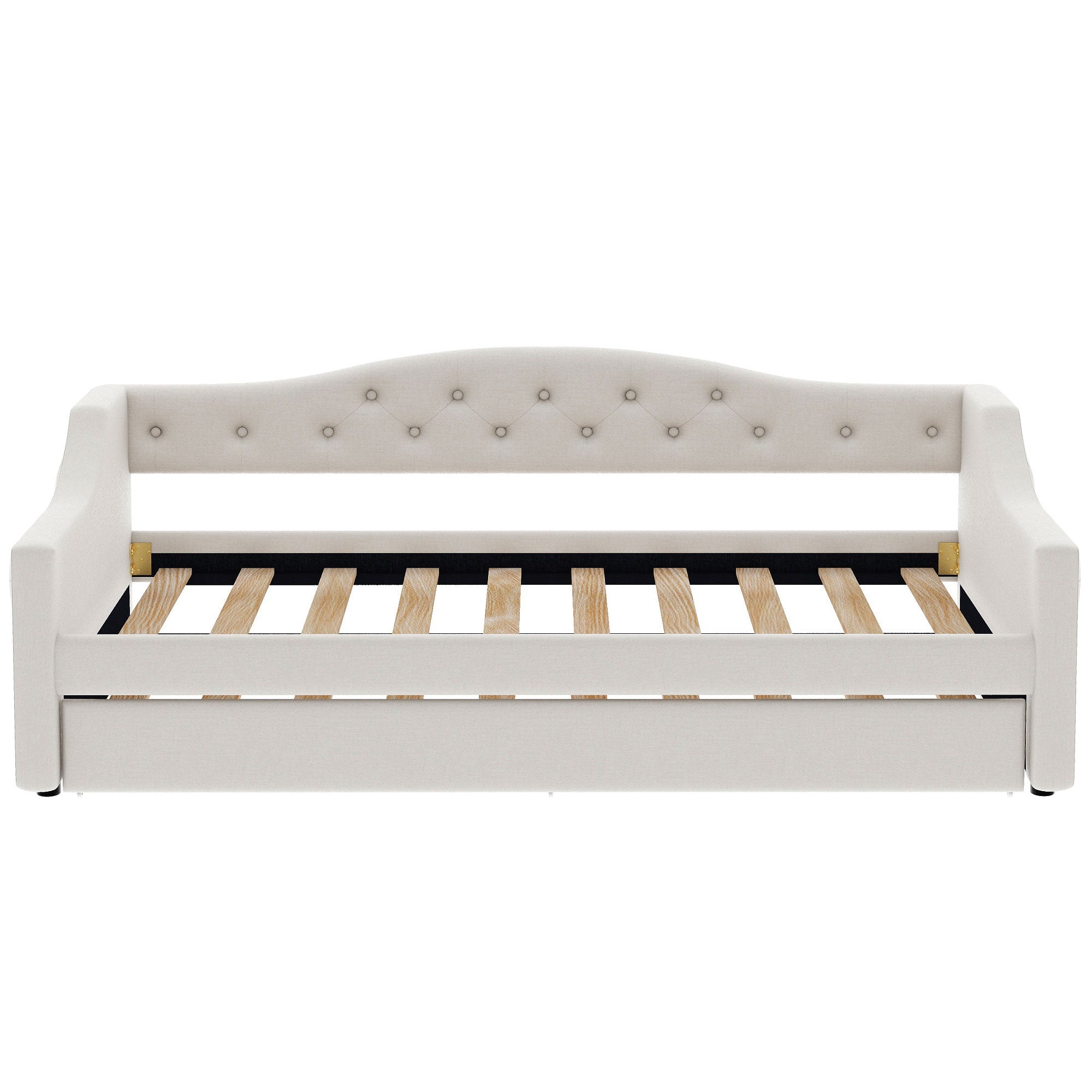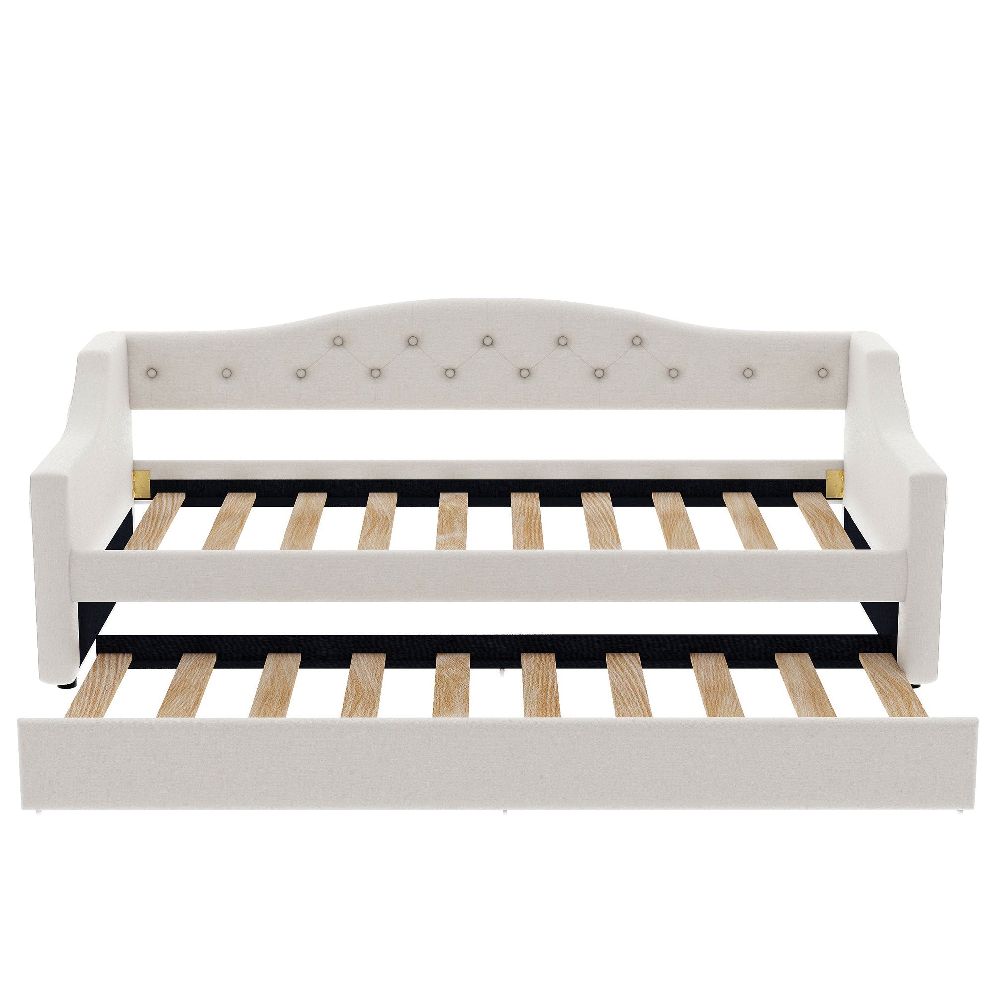 - [Linen Upholstered Daybed] The high-quality upholstery with thickly padded sponge at the back and all sides offers cozy comfort. This Upholstered Daybed with covered linen provides soft hand feeling and get superior experience for you!