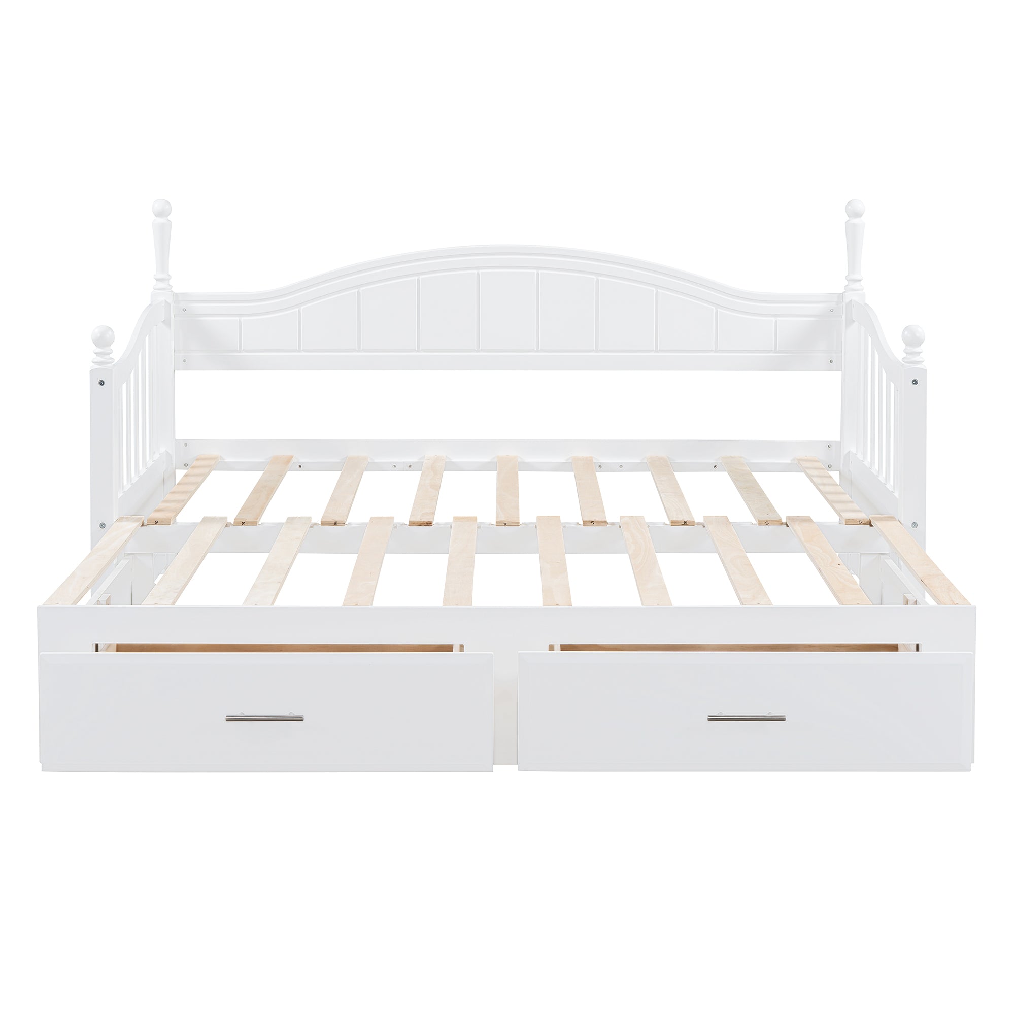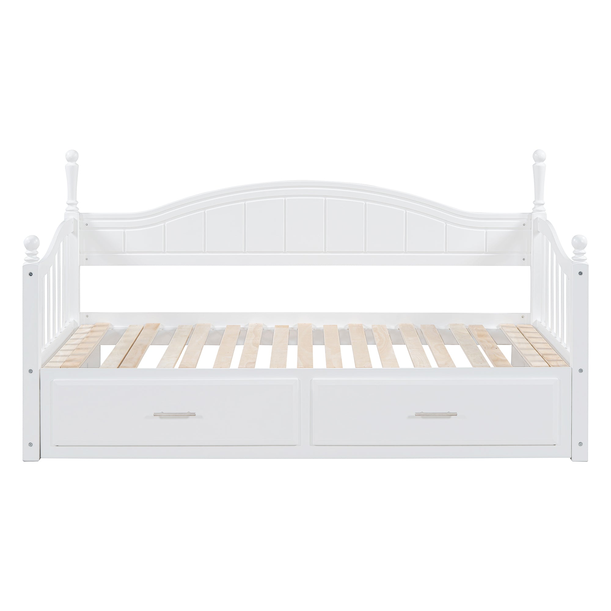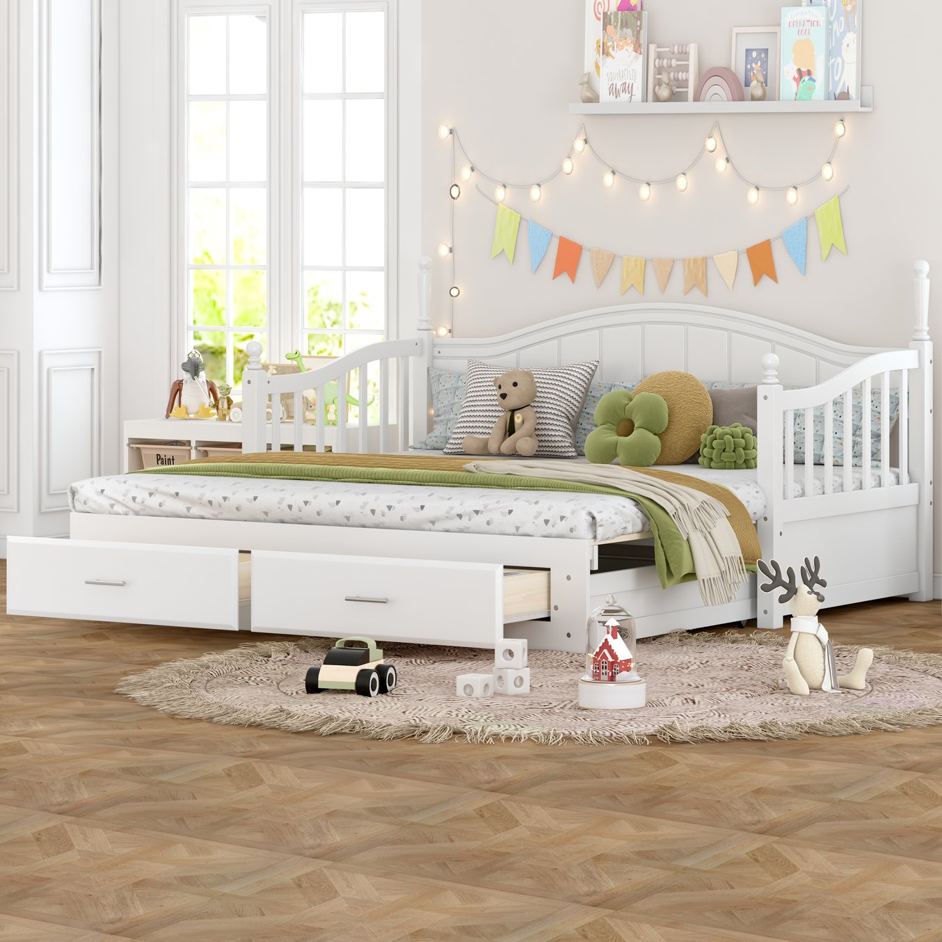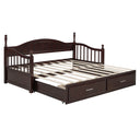 - Space-saving:The daybed includes one trundle, which can be rolled out to provide extra sleeping space to put another twin size mattresses. This design is ideal for families with children or users who need to host guests frequently. There are two storage drawers under the bed, where users can store bedding, toys and other items.