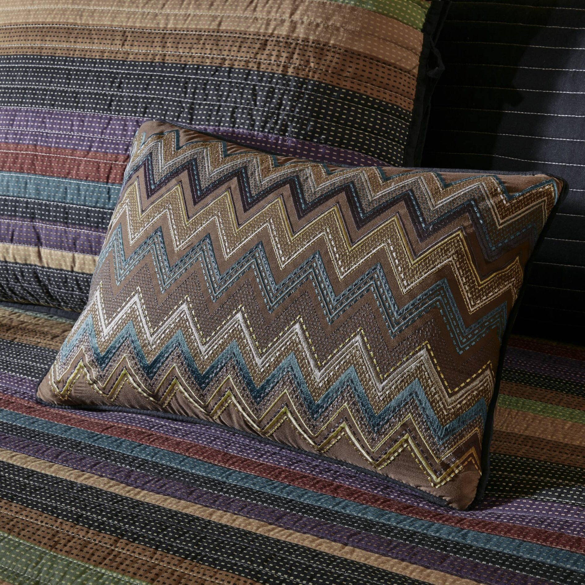 - Accent pillow: Oblong decorative pillow with multicolor chevron stripe to coordinate with the cover and shams