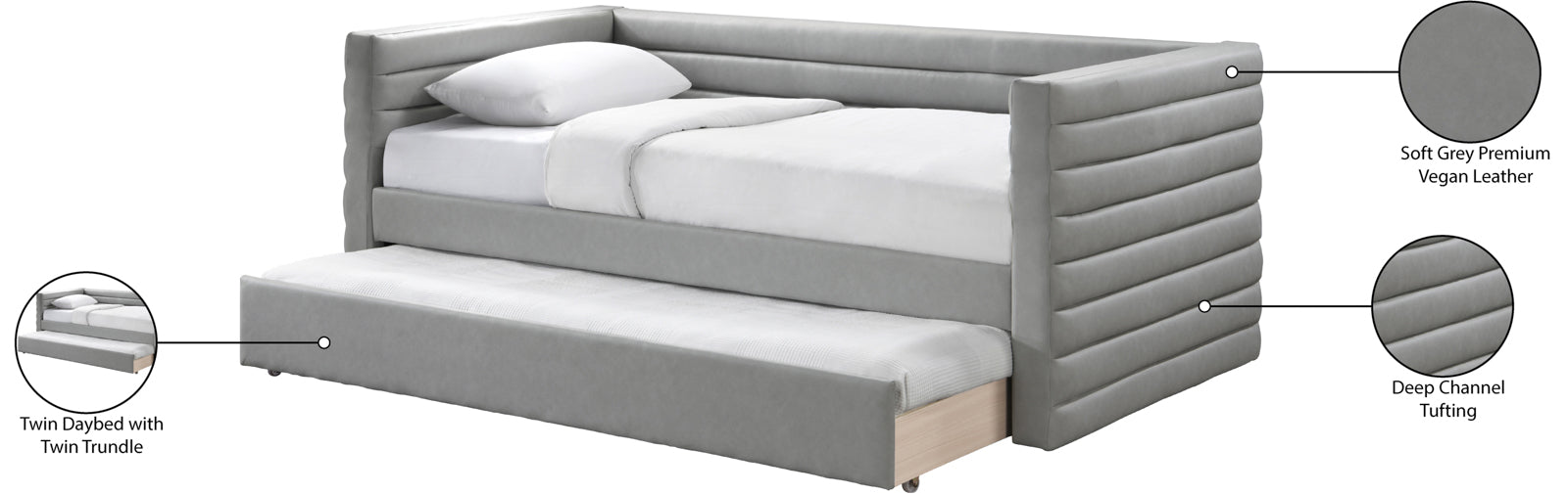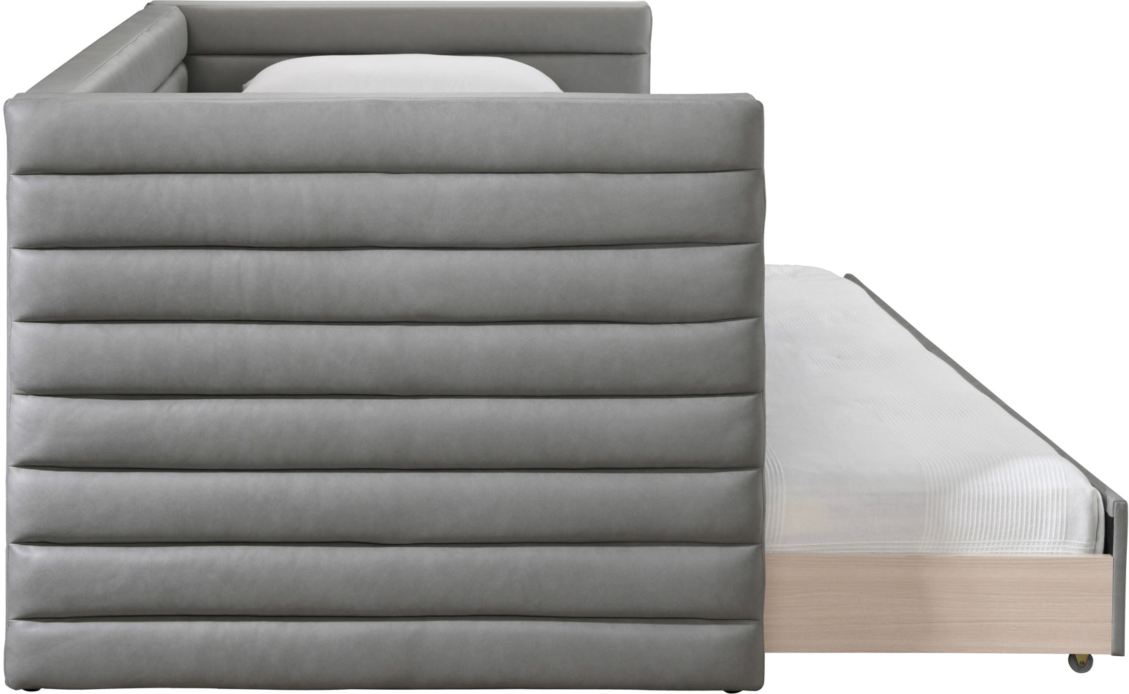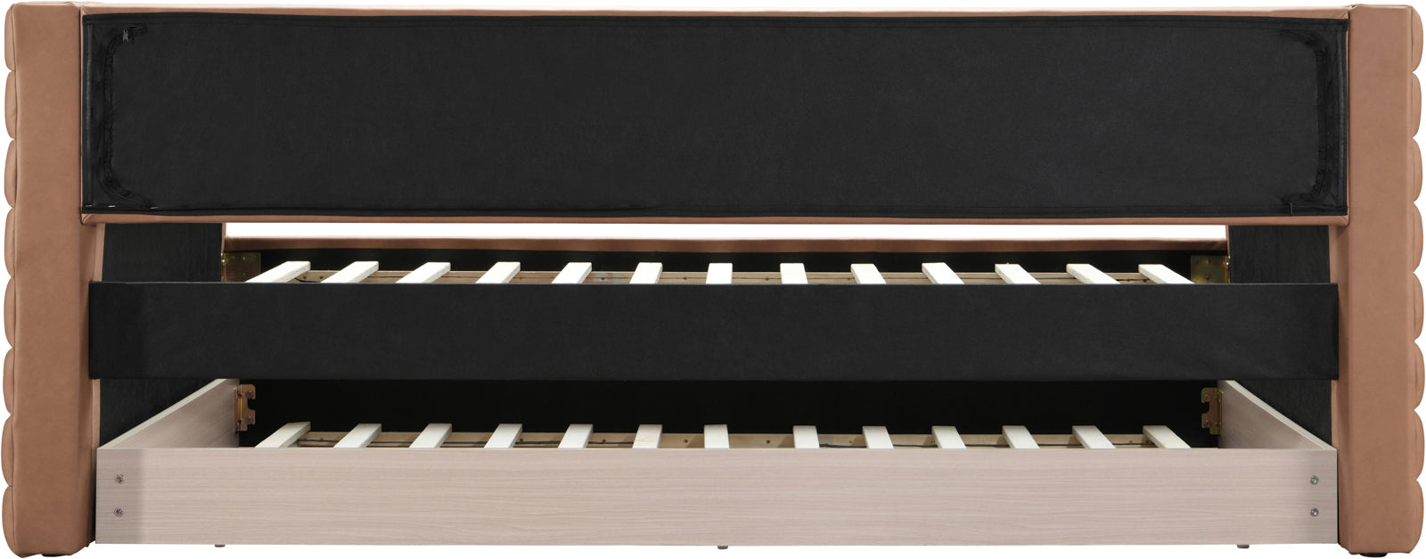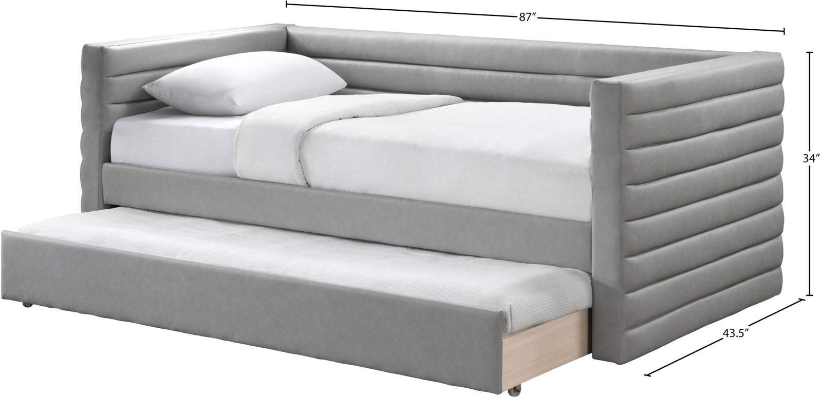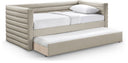 - Dimensions: BeverlyBeige-T Beverly Beige Vegan Leather Twin Daybed - 87" W x 43.5" D x 34" H