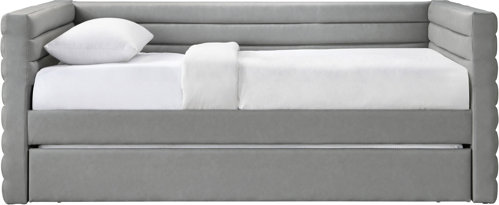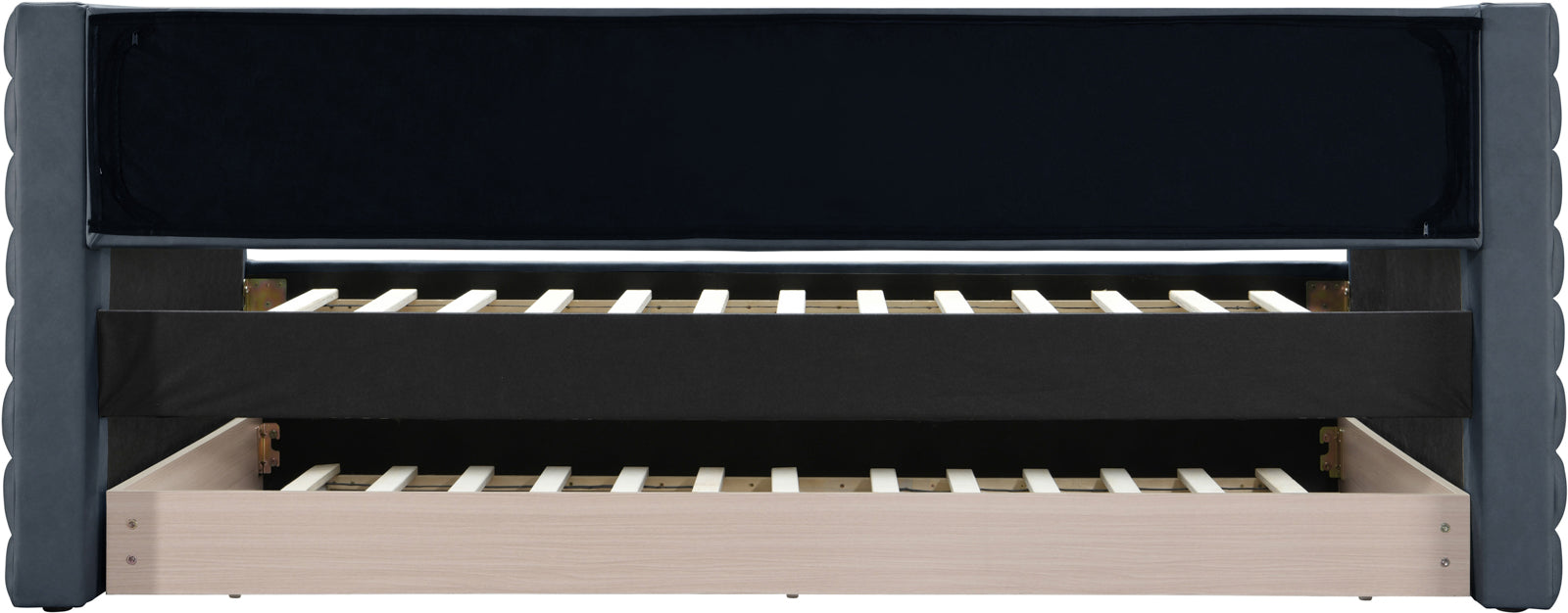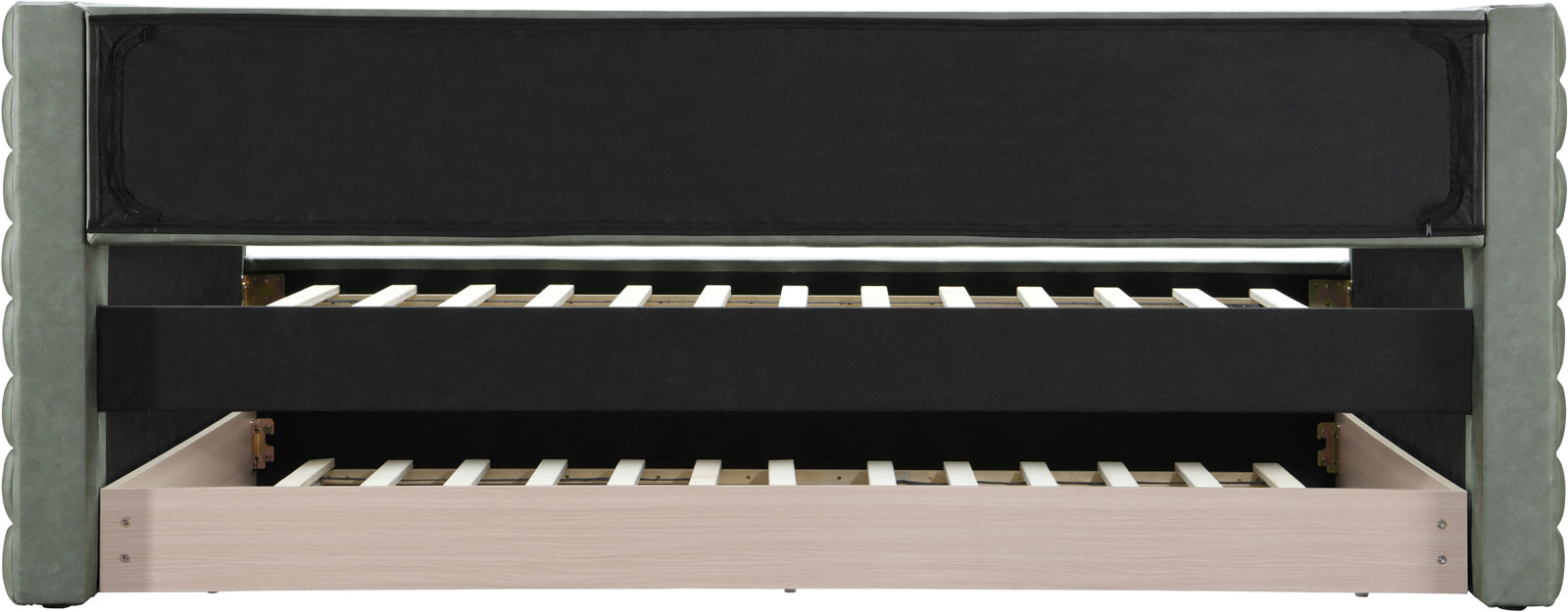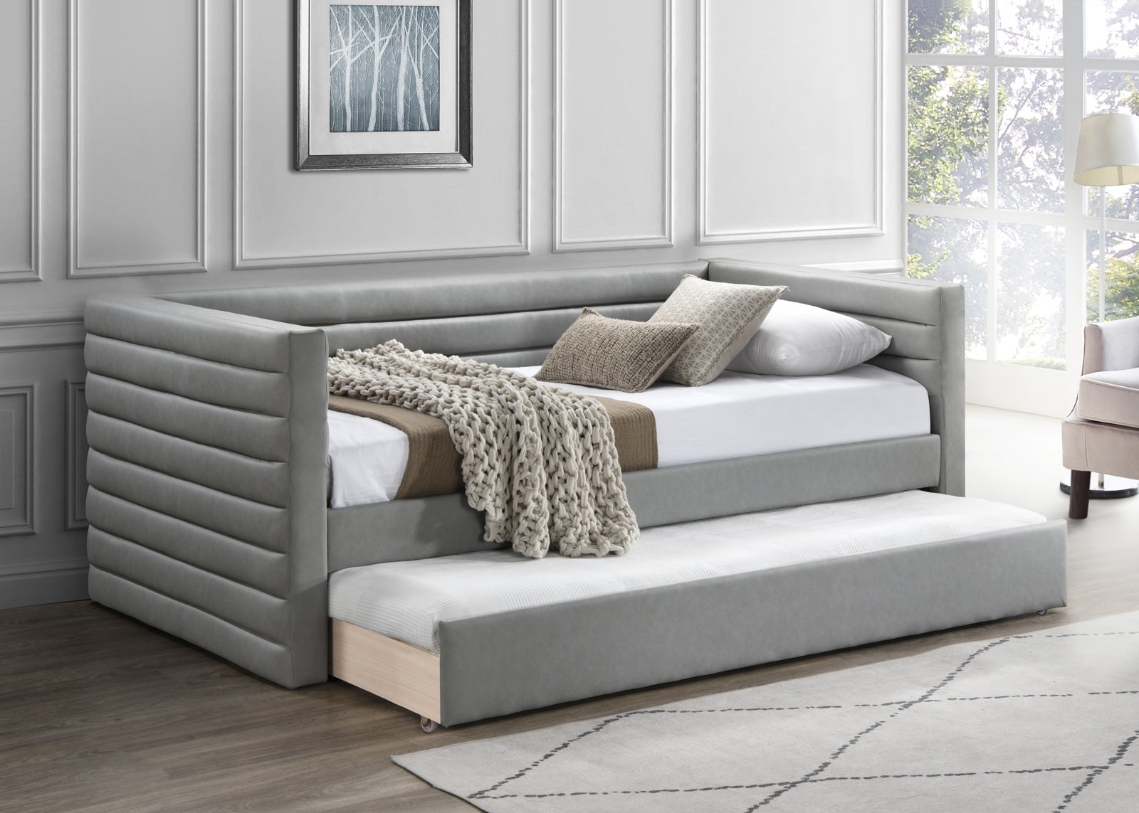 - Dimensions: BeverlyBeige-T Beverly Beige Vegan Leather Twin Daybed - 87" W x 43.5" D x 34" H