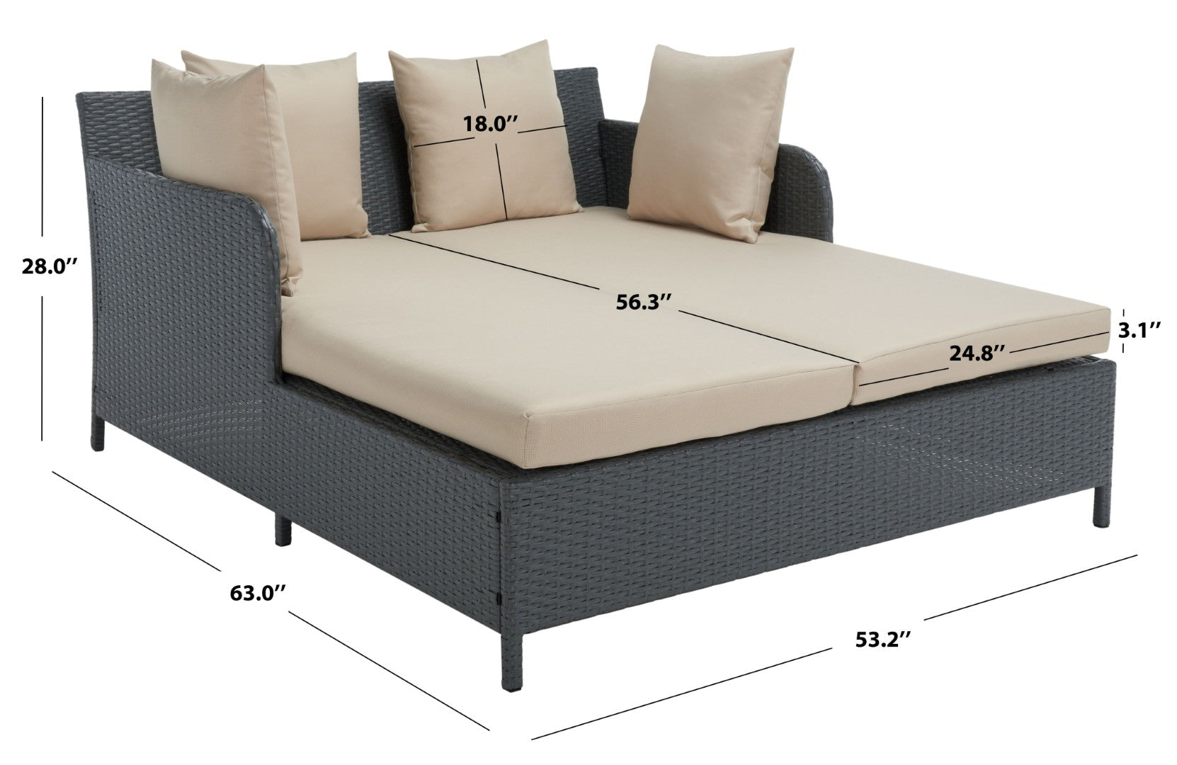 - Cushion Dimensions L X W X H (Inches): Dimensions of the cushion: 56.3 x 24.8 x 3.1