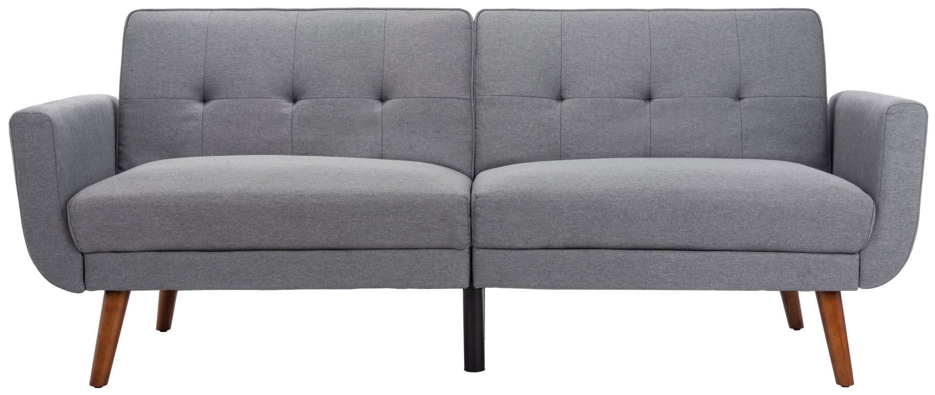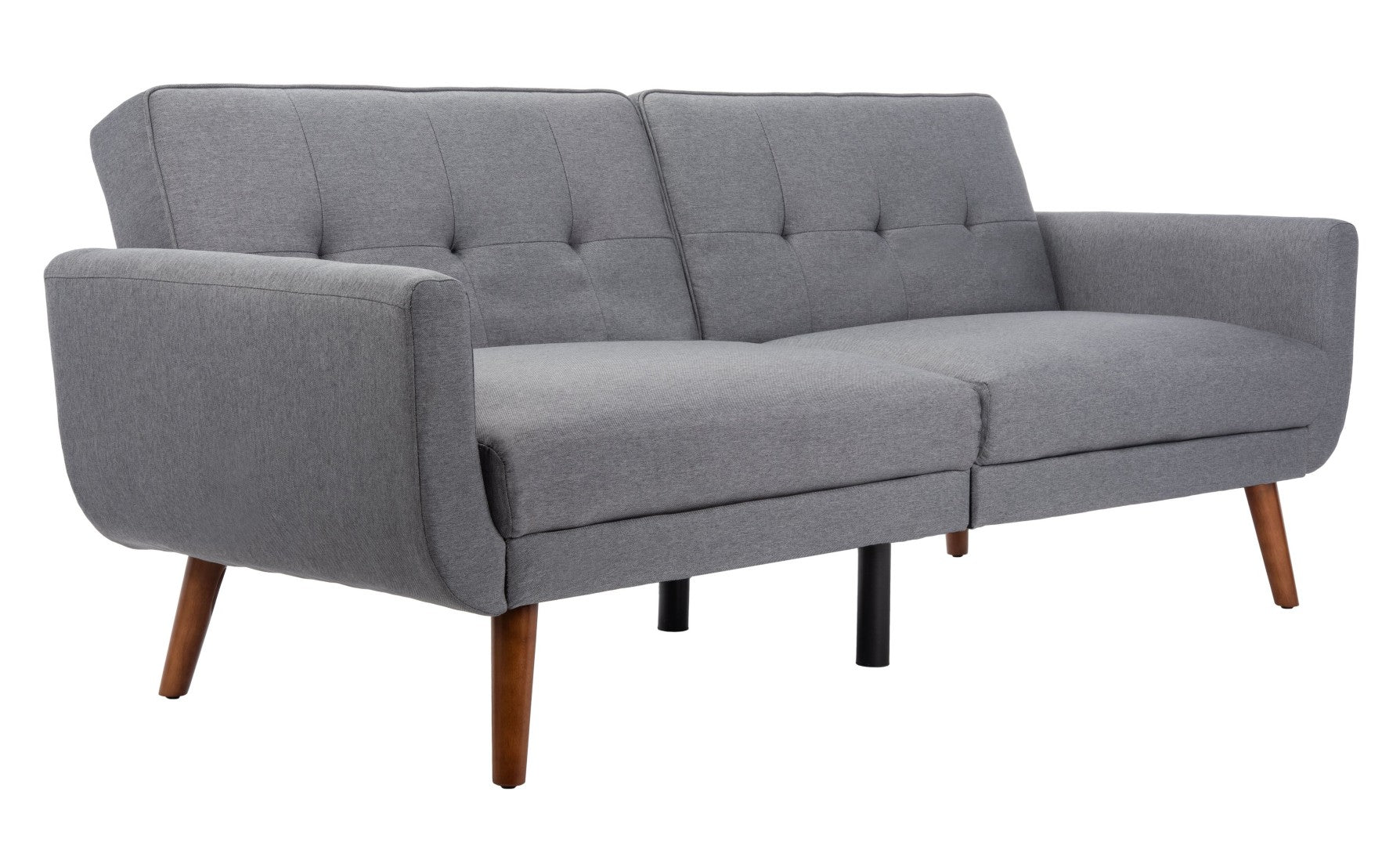 Bring Versatility And Mid-Century Charm To Your Living Space With This Contemporary Foldable Futon Bed. Thoughtfully Designed With Clean Lines, Gentle Curves, And Tufted Grey Linen Upholstery, It Transitions Effortlessly From A Stylish Sofa To A Comfortable Bed—Perfect For Small Apartments, Guest Rooms, Or Multipurpose Spaces. Natural Eucalyptus Wood Legs Add Warm Contrast And Sturdy Support, While The Neutral Stone Color Complements A Wide Range Of Decor.