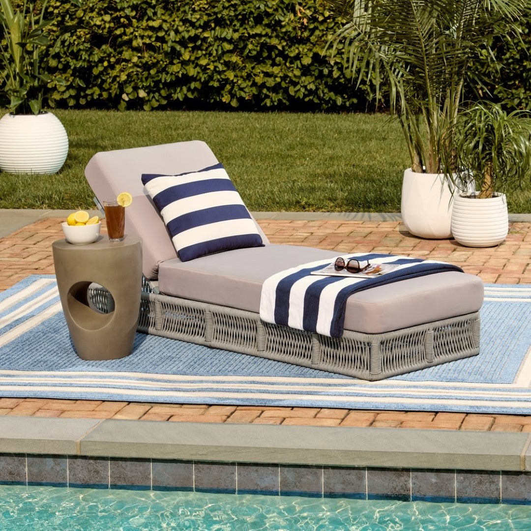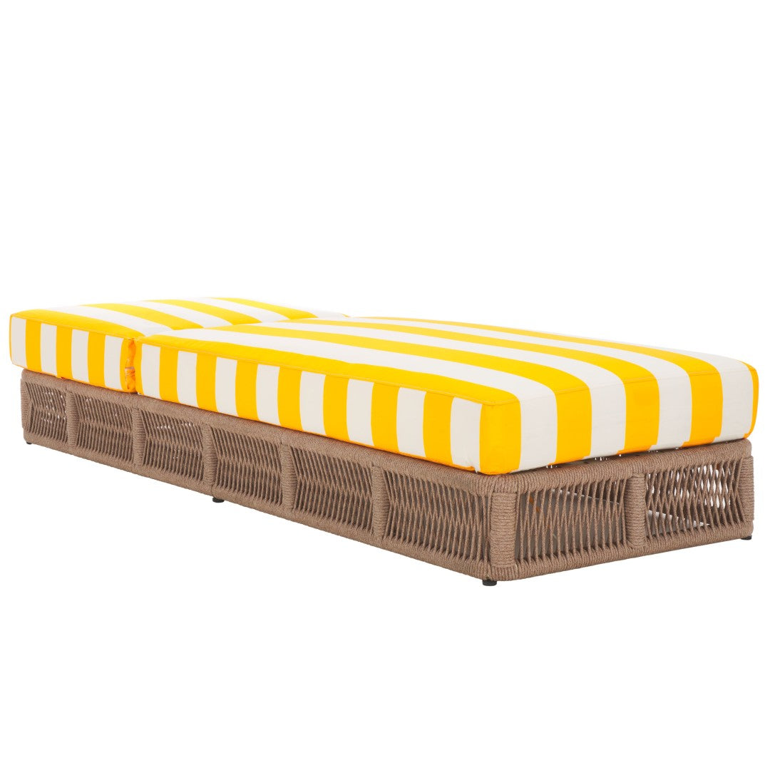 Create a serene outdoor retreat with the Gillian daybed, a coastal‑inspired sunlounger that blends relaxed style with durable construction. Woven natural rope details and a soft baby‑blue striped cushion invite lounging and long afternoons by the pool or on the patio, while a sturdy steel frame ensures lasting support and weather resistance.