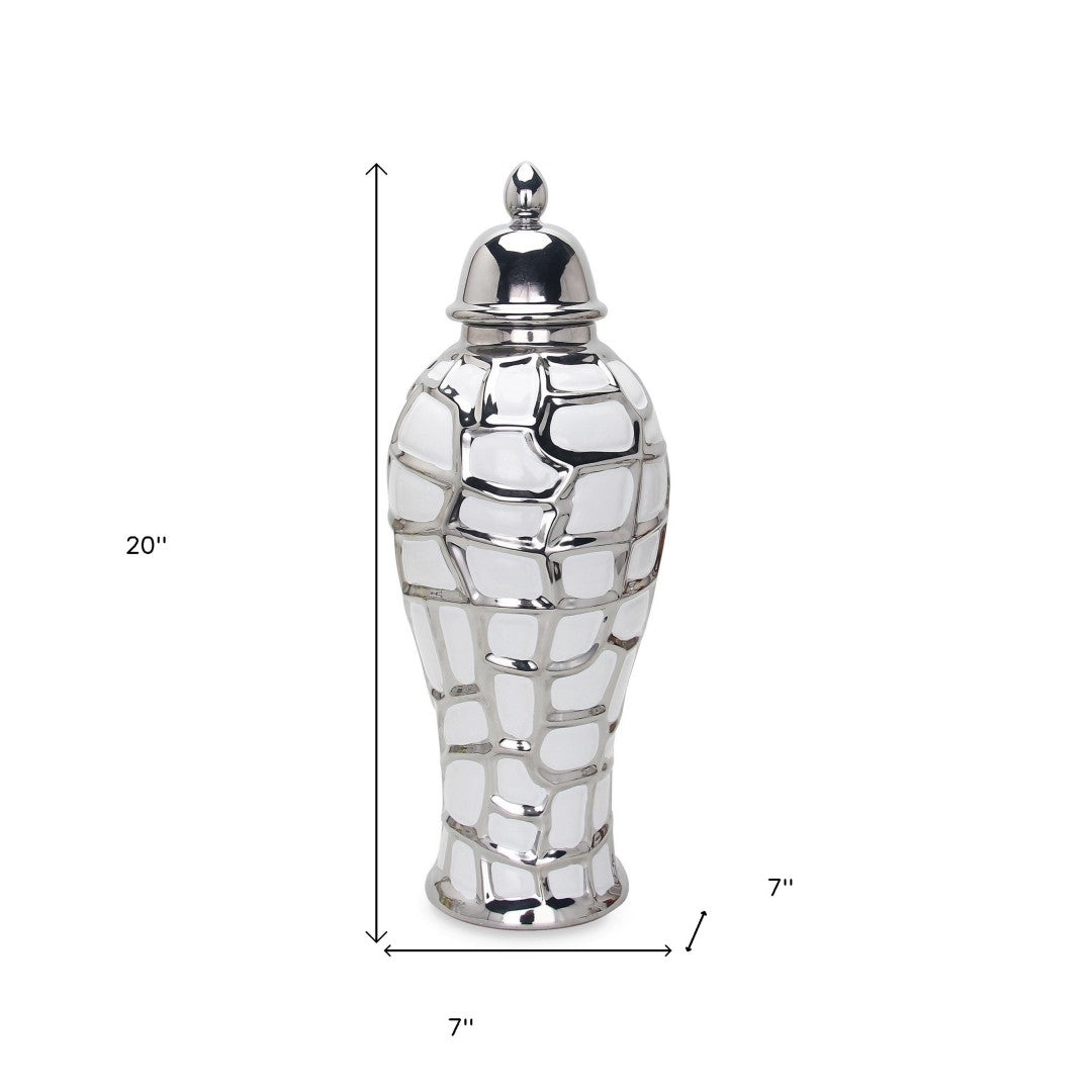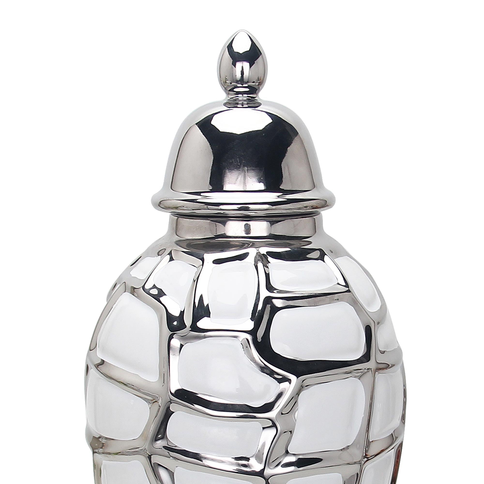 - This classically shaped ginger jar includes a removable domed lid and features a silver modern abstract geometric design.