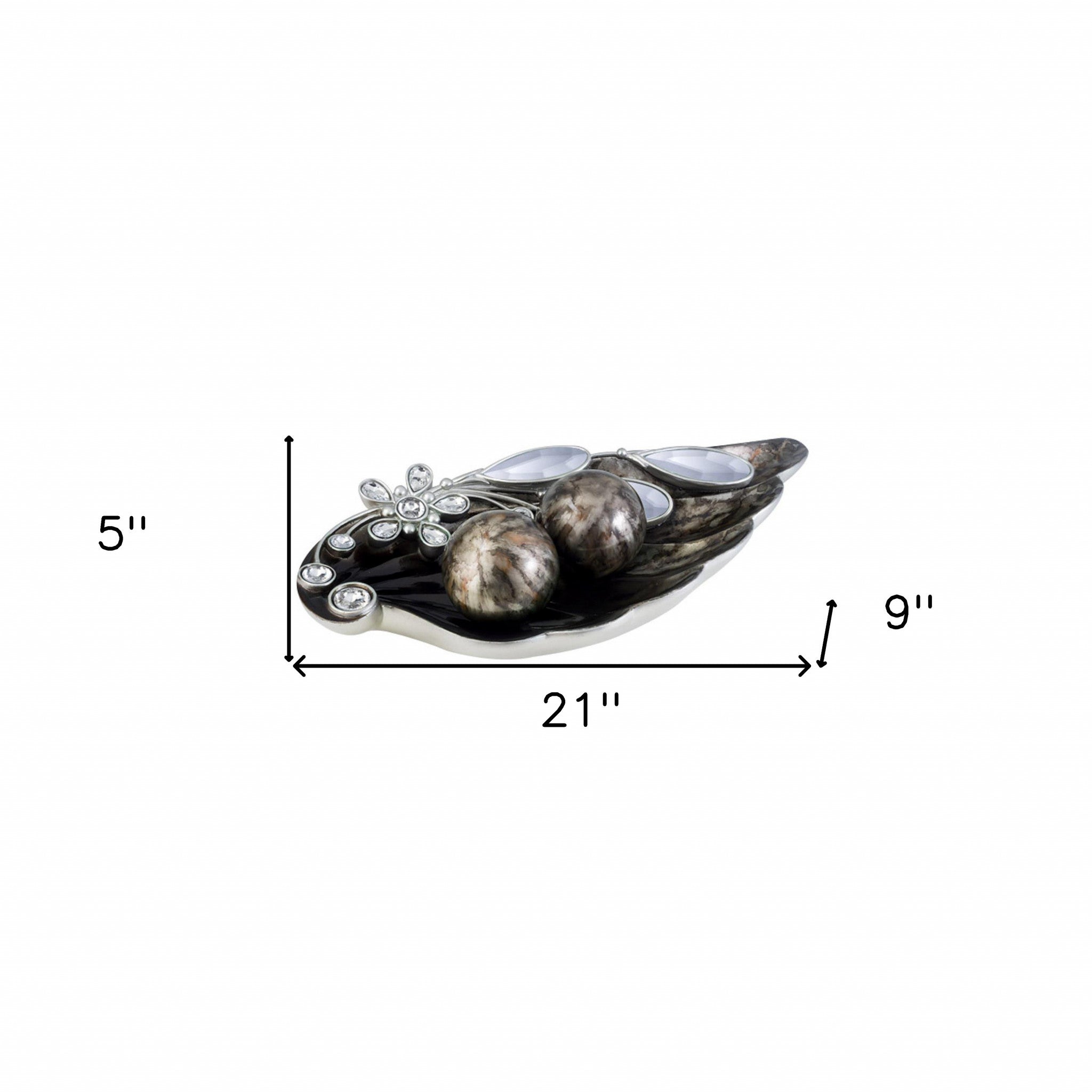 - This decorative centerpiece bowl has beautiful dark coloration and glass accents.