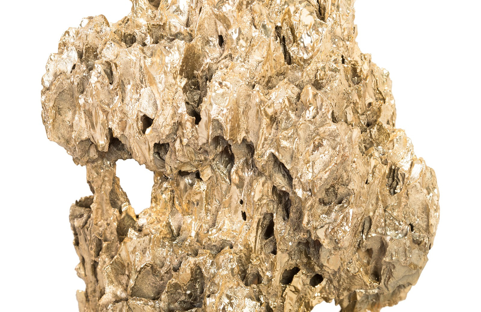 Creating organically shaped forms from molten metal is a feat that requires great patience. Fortunately Phillips Collection's artisans are quite adept at working with the hot material and building it to a wonderful crescendo over time. Our Stalagmite Medium Polished Brass Lamp, which is made of metal in a polished brass finish, is such a creation. When the light shines through the fissures in the brightly finished metal composition that is placed atop a clear glass base, it creates a pattern-play on surrounding surfaces, reflecting the Phillips Collection ethos of modern organic.