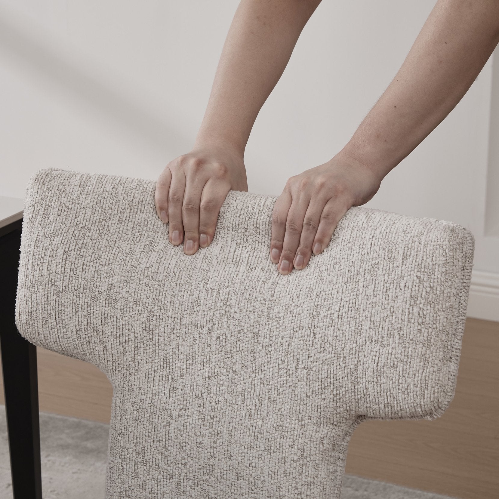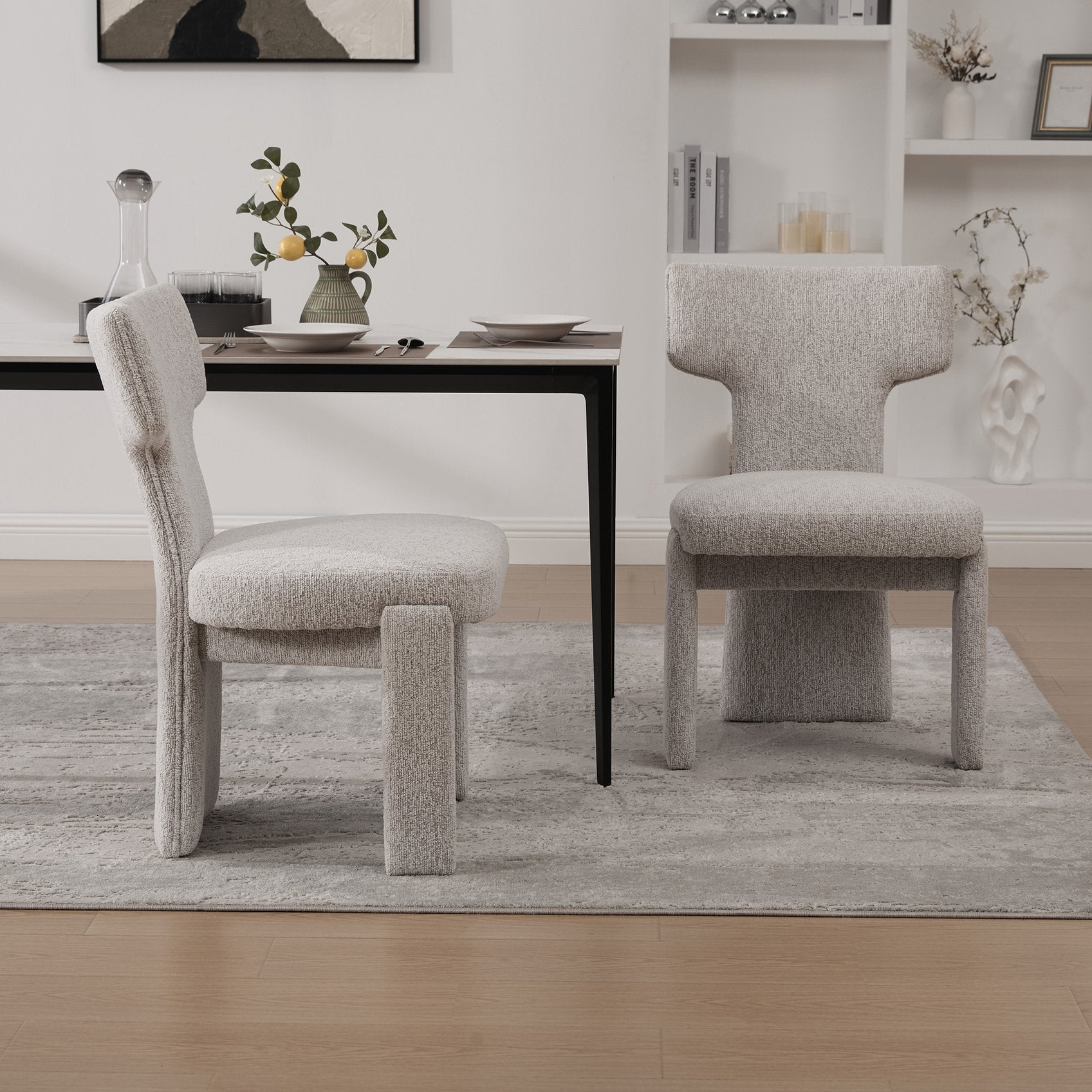Transform any dining or seating area with a sleek, modern chenille-upholstered dining chair that blends comfort, durability, and contemporary style. These armless chairs feature a gently curved back and plush foam seat for supportive, comfortable seating—ideal for dining rooms, cafes, reception areas, bedrooms, or living rooms. The neutral beige chenille pairs effortlessly with a variety of décors while solid rubberwood legs provide stability and a warm, natural look.