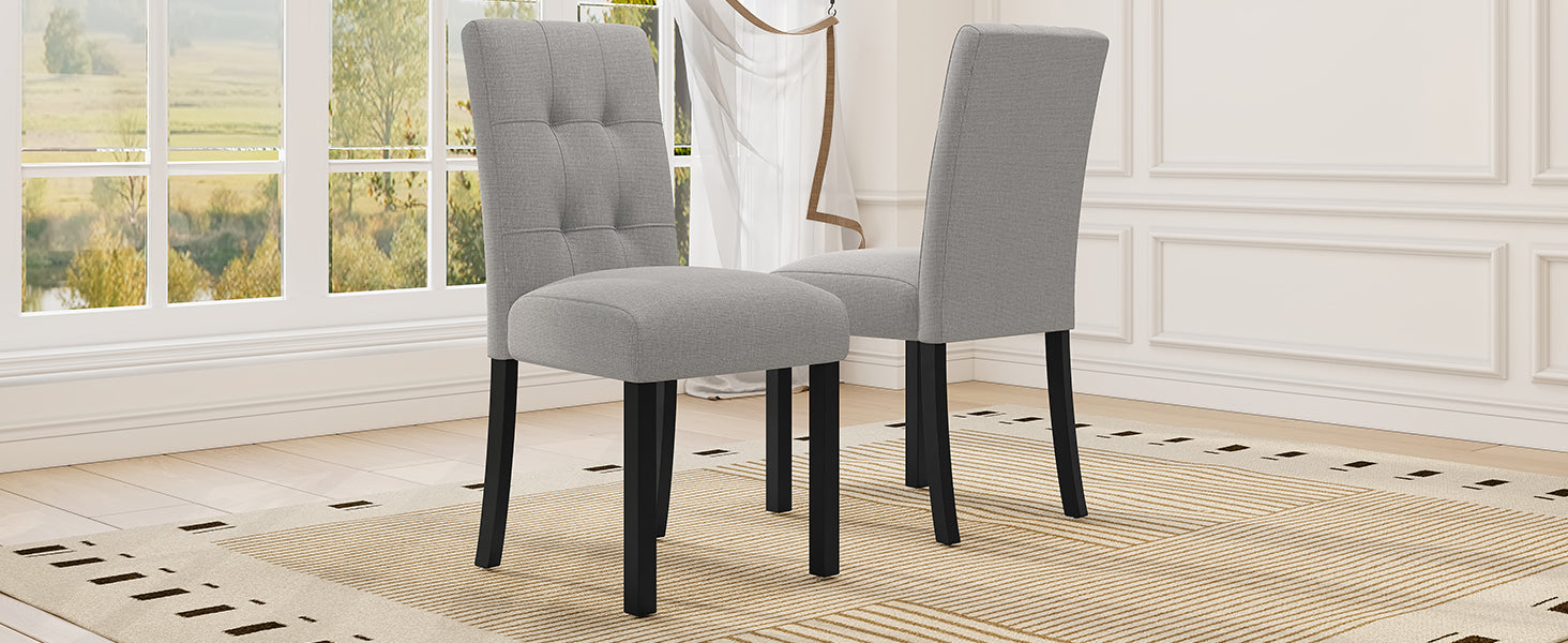 - Stylish Design: The chairs feature a modern design with curved rubber wood legs that not only add a touch of aesthetic appeal but also ensure stability. The tufted back design is a standout feature, bringing a sophisticated and chic look to your dining area. Whether your home decor is modern, contemporary, or even a mix of styles, these chairs will complement the space, enhancing its overall elegance.