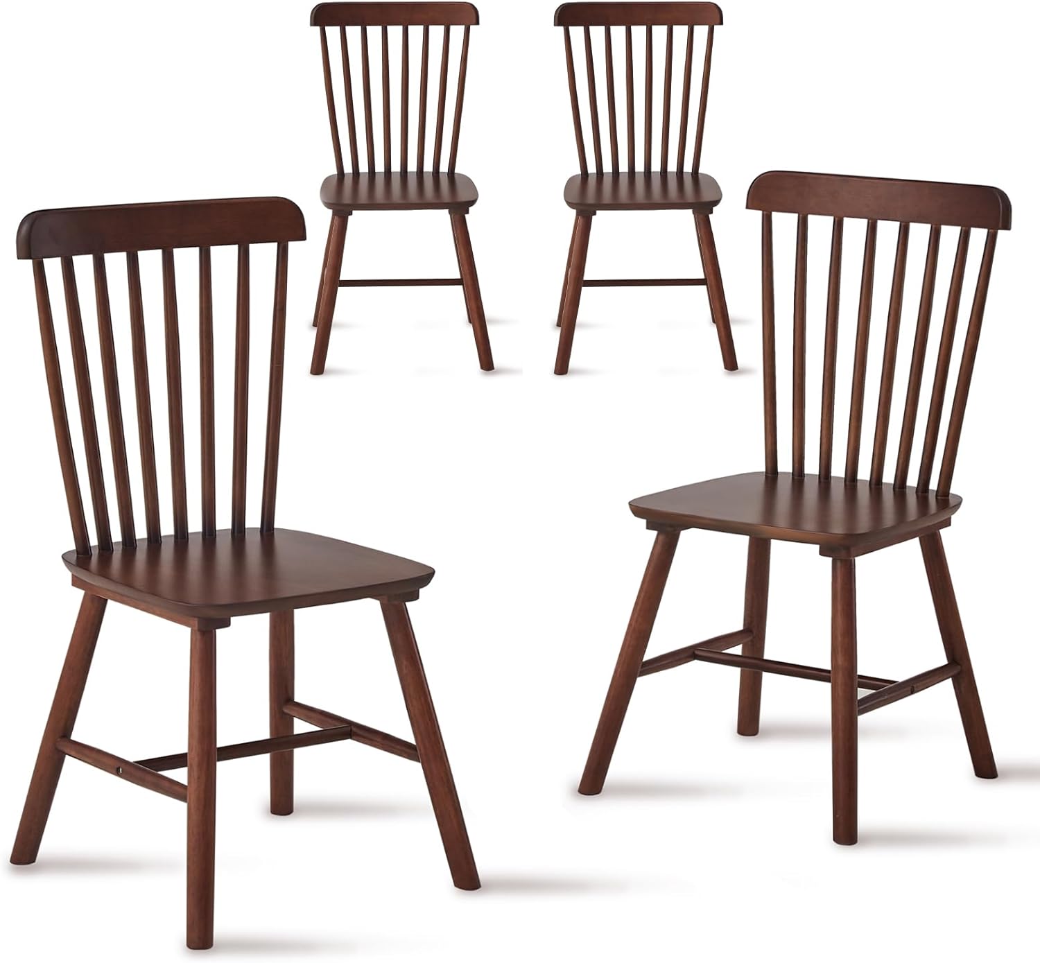 Bring timeless warmth and everyday comfort to your dining space with this set of four walnut-finish solid wood chairs. Crafted from durable rubberwood with a thoughtfully contoured design, these chairs blend classic styling with practical features—wide seating, supportive curved backs, anti-skid feet, and an easy-to-clean textured finish—making them ideal for kitchens, dining rooms, farmhouses, lounges, or reception areas.