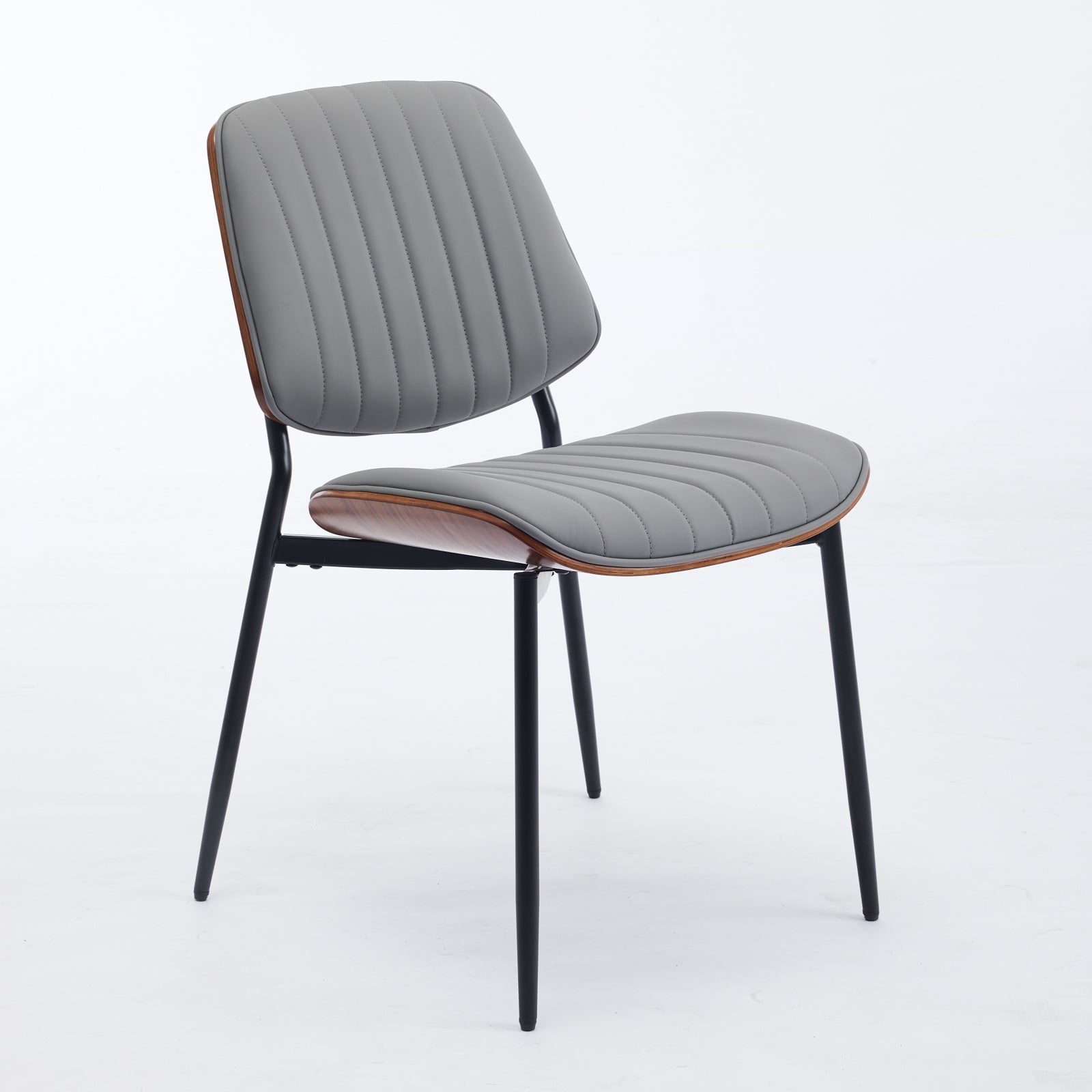 Bring mid-century modern flair and everyday comfort to your dining space with this stylish set of two chairs. Each chair combines a gracefully curved walnut bentwood back, plush gray faux leather seat, and sturdy metal legs to deliver an elegant, durable seating solution for kitchen, dining room, or home office use. Thoughtfully designed for ergonomics and stability, these chairs balance aesthetic appeal with practical comfort.