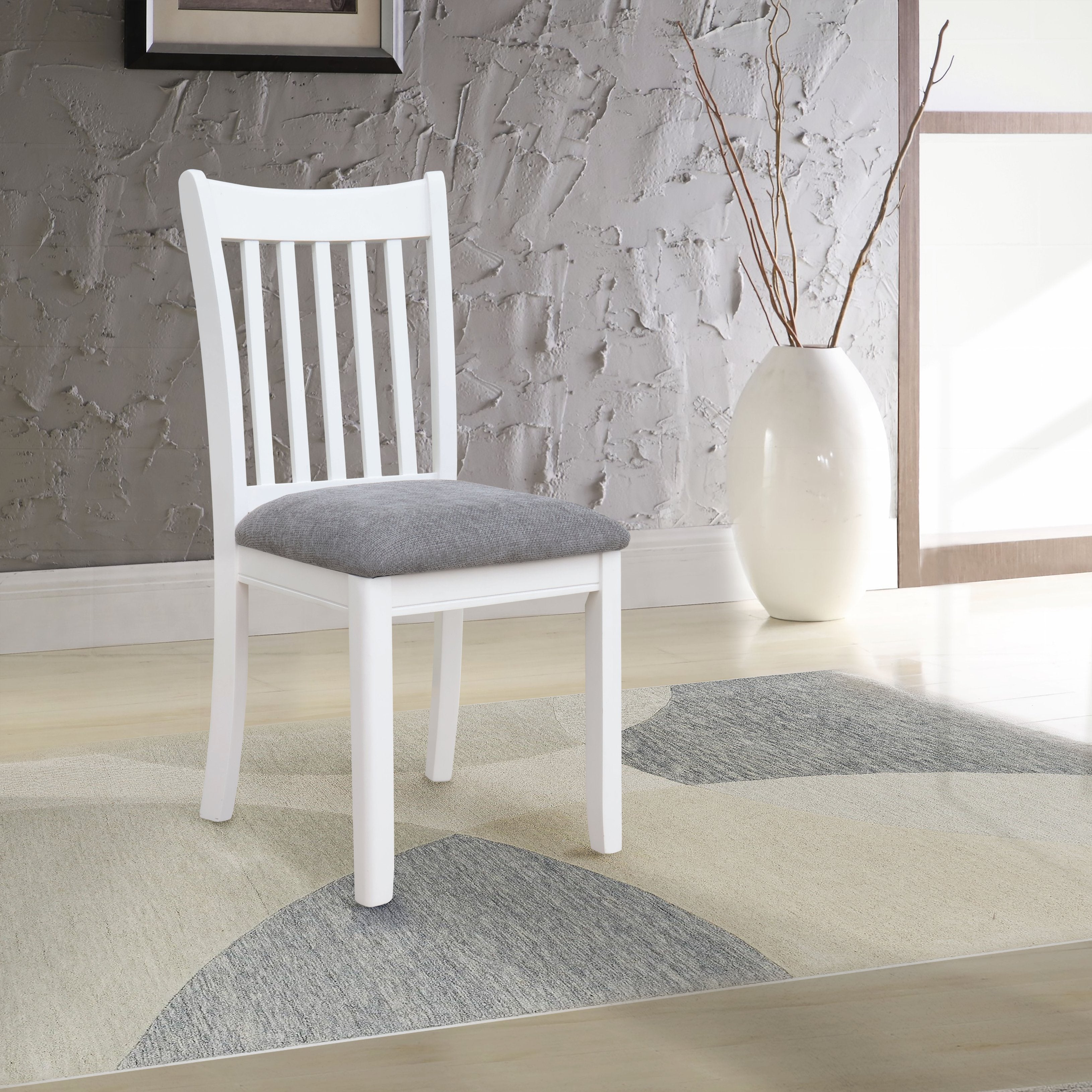 Bring classic comfort and clean, modern style to your dining space with this set of two white wooden chairs featuring grey upholstered cushions. Designed for everyday use, these chairs combine a solid rubberwood frame, a supportive high wooden backrest, and a plush high‑rebound seat cushion to deliver durability, comfort, and a warm aesthetic that complements dining rooms, kitchens, and apartments.