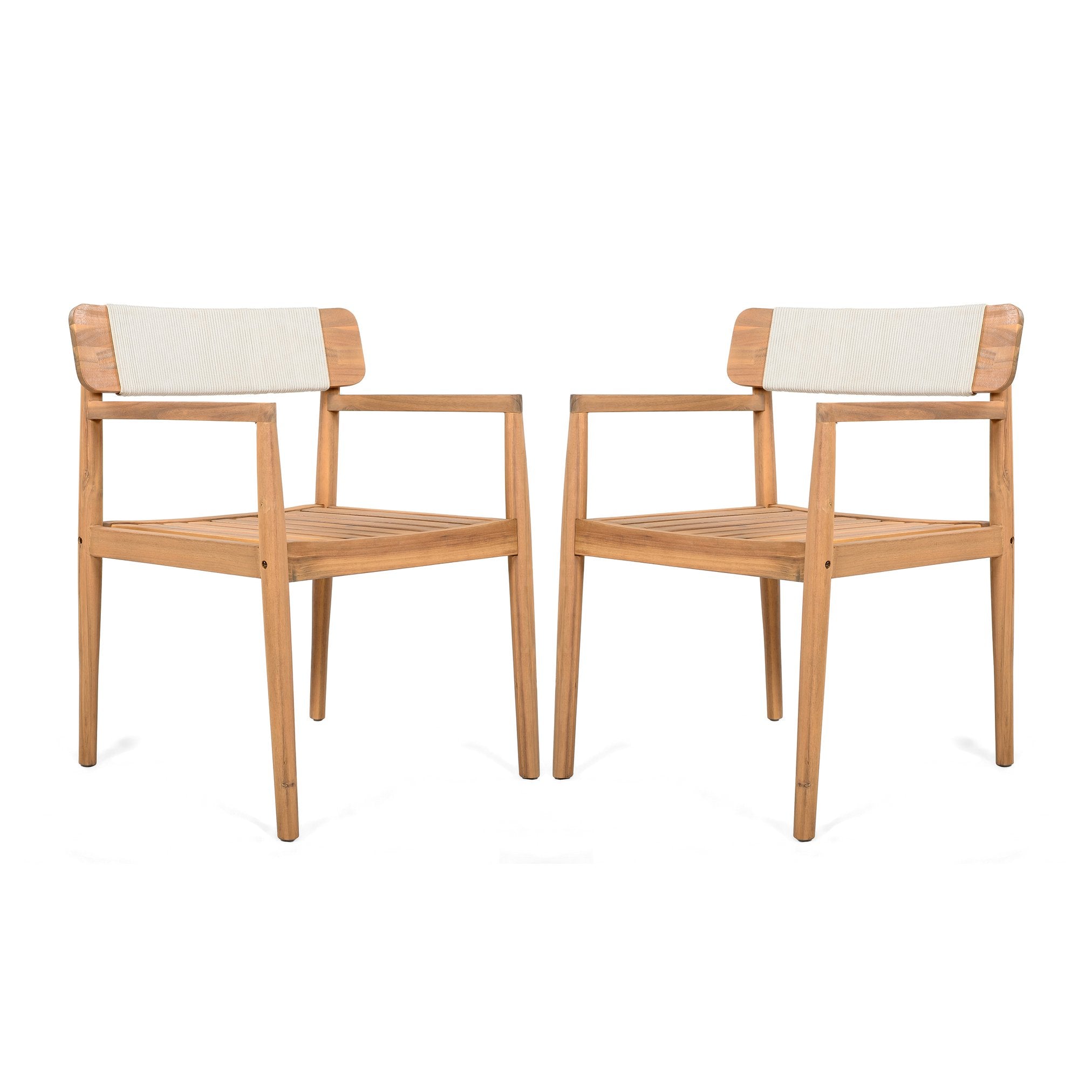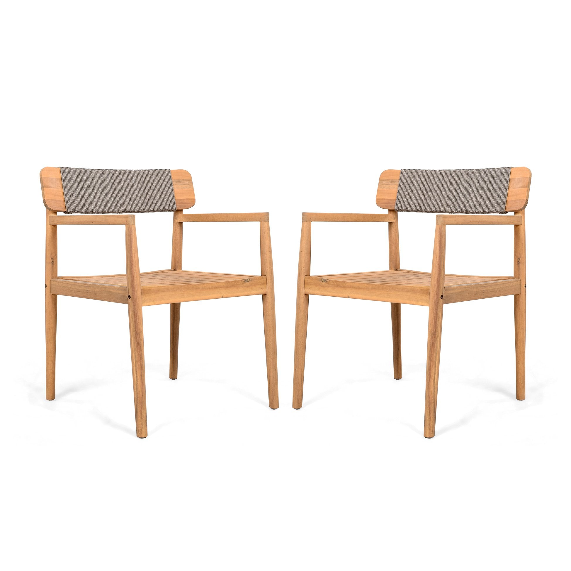 Bring comfort, durability, and coastal-inspired style to your outdoor dining or lounge area with this 4-piece patio chair set. Crafted from rich teak-look acacia wood and finished with grey, UV-resistant rope weave, these armchairs combine breathable, supportive seating with weather-ready construction—ideal for al fresco dining, poolside relaxation, balconies, or garden gatherings.