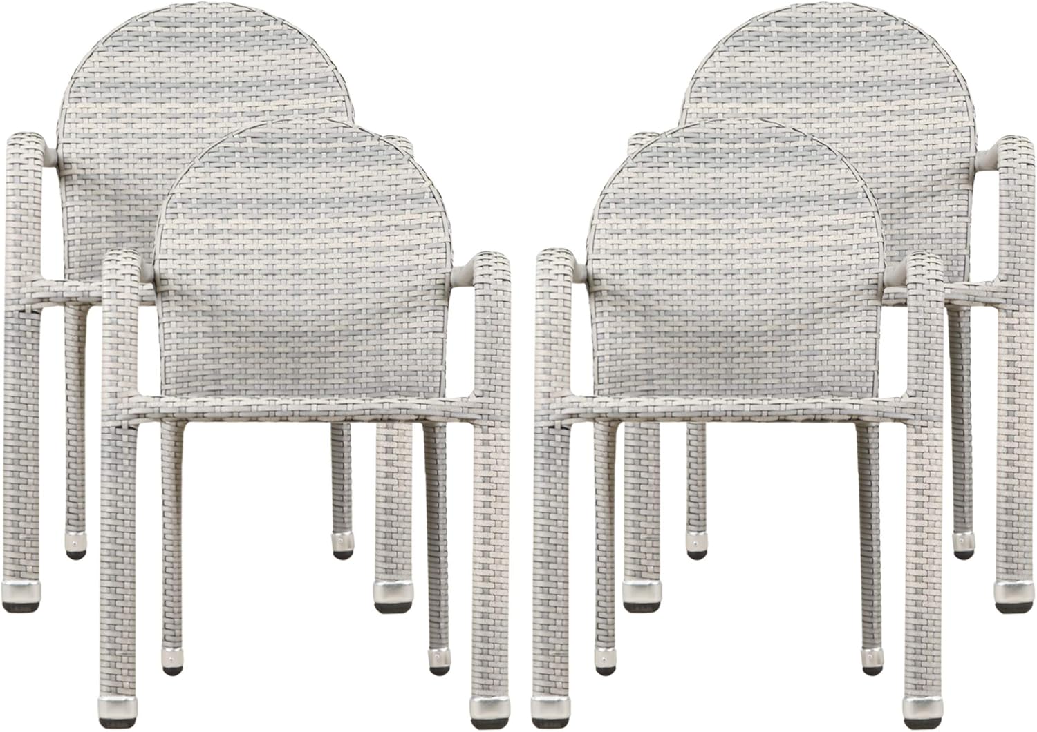 Bring comfortable, stylish seating to your outdoor dining area with this set of four armchairs, designed for durability, easy maintenance, and compact storage. The antique grey polyethylene rattan finish adds a timeless look while the powder-coated aluminum frame keeps each chair lightweight and weather-resistant—perfect for patios, decks, or poolside entertaining.