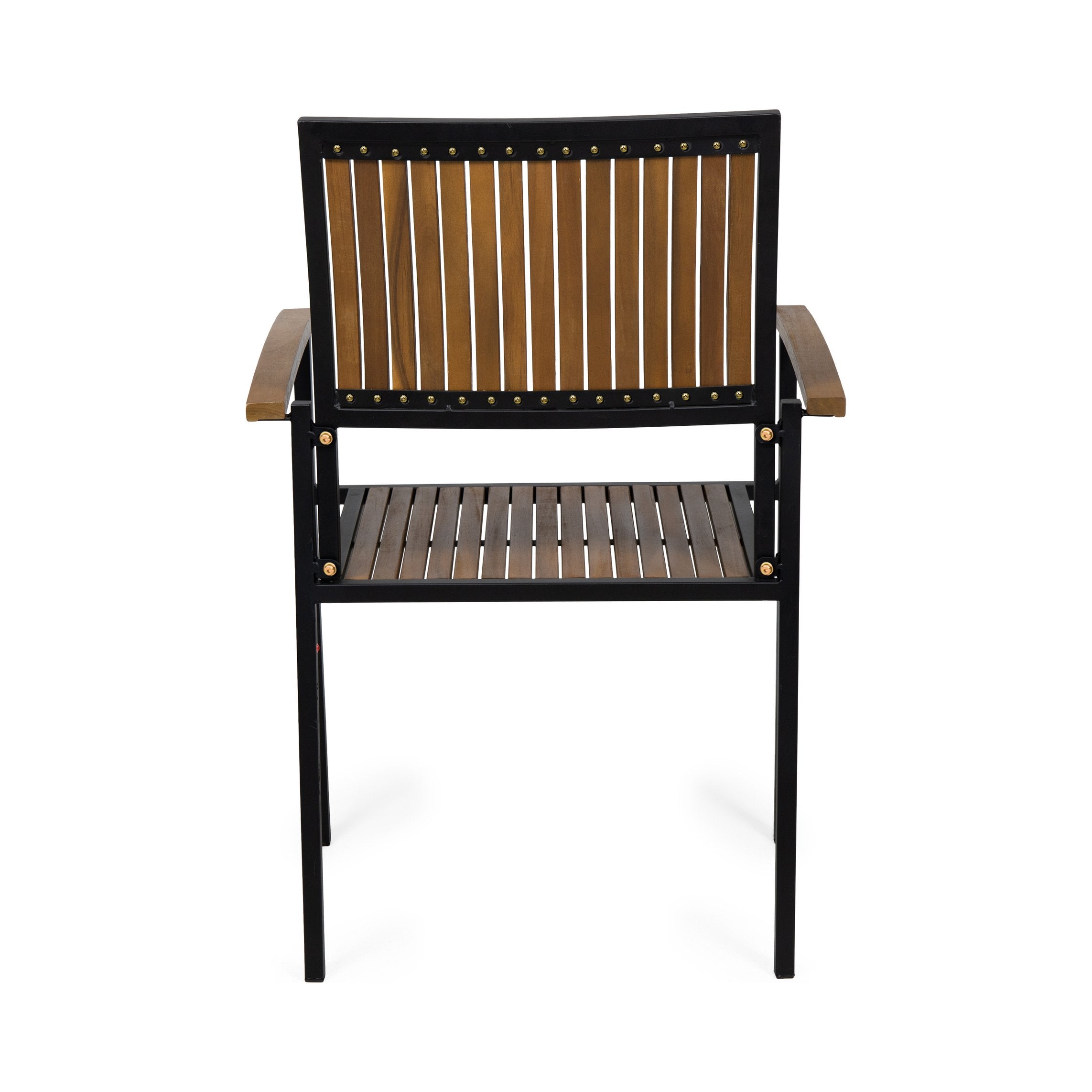 Bring industrial charm and durable craftsmanship to your dining or outdoor space with this set of two wood-and-metal chairs. Thoughtfully designed with solid acacia wood and a striking slatted silhouette, these chairs balance comfort, longevity, and low-maintenance care—ideal for everyday use or seasonal outdoor entertaining.