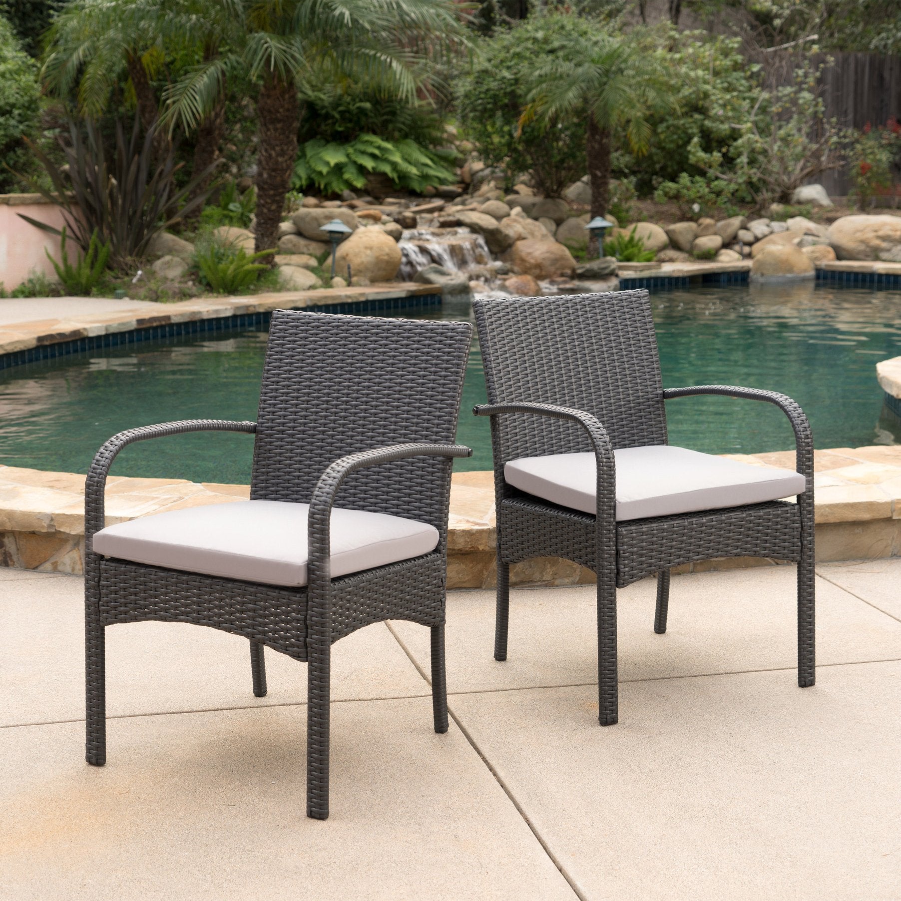 Refresh your outdoor dining space with this stylish and comfortable set of two resin wicker chairs. Designed for both casual meals and relaxed lounging, these chairs combine durable materials, weather-ready finishes, and removable cushions for easy maintenance and personalized comfort—perfect for patios, decks, poolside areas, or garden dining.