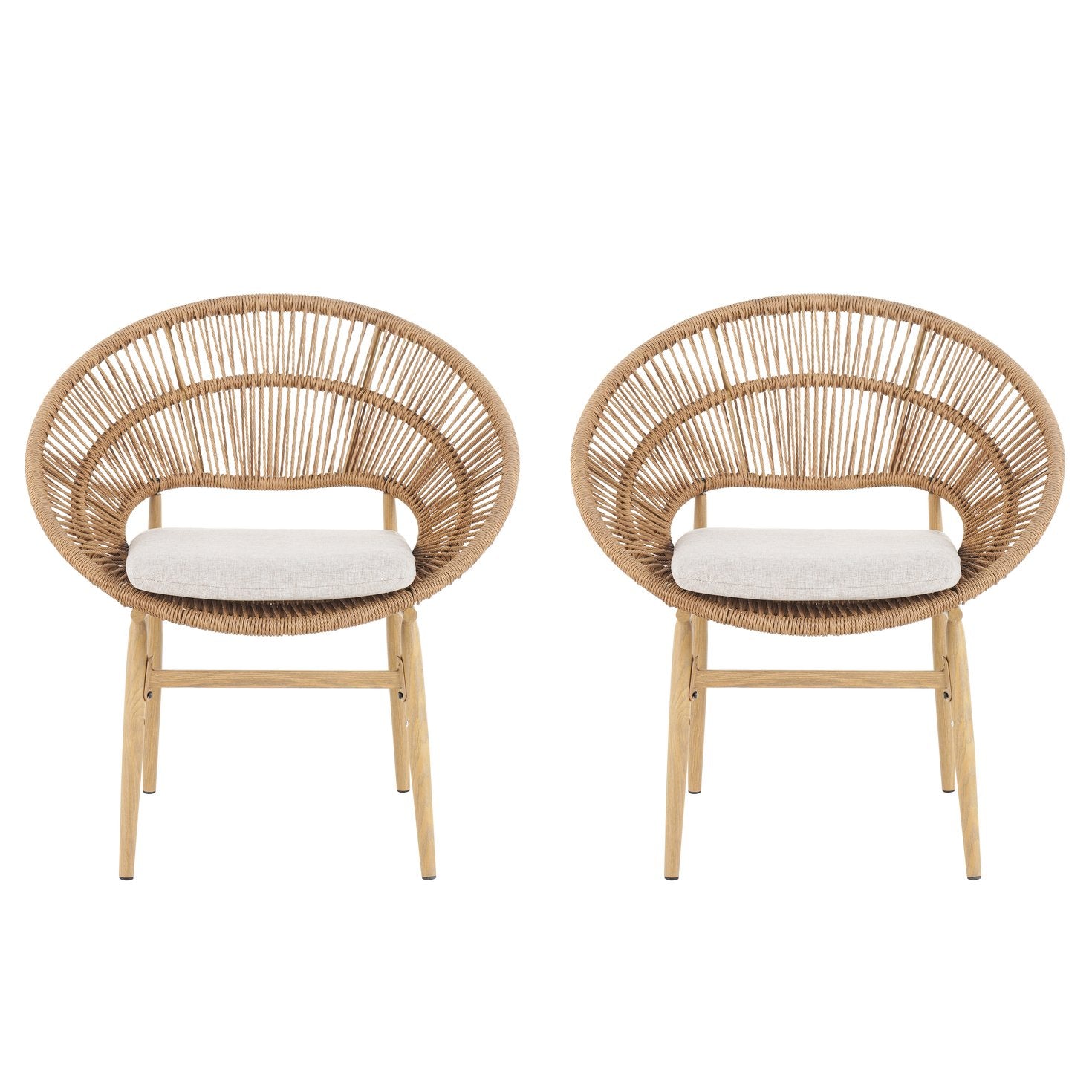 - TEXTURED ARTISANAL CHARM: Handwoven with light-brown PE (polyethylene) wicker in a twisted-rope pattern, the chair’s surfaces add tactile depth and subtle movement to outdoor spaces. The weather-resistant synthetic wicker retains its flexibility and color vibrancy even under harsh UV exposure.